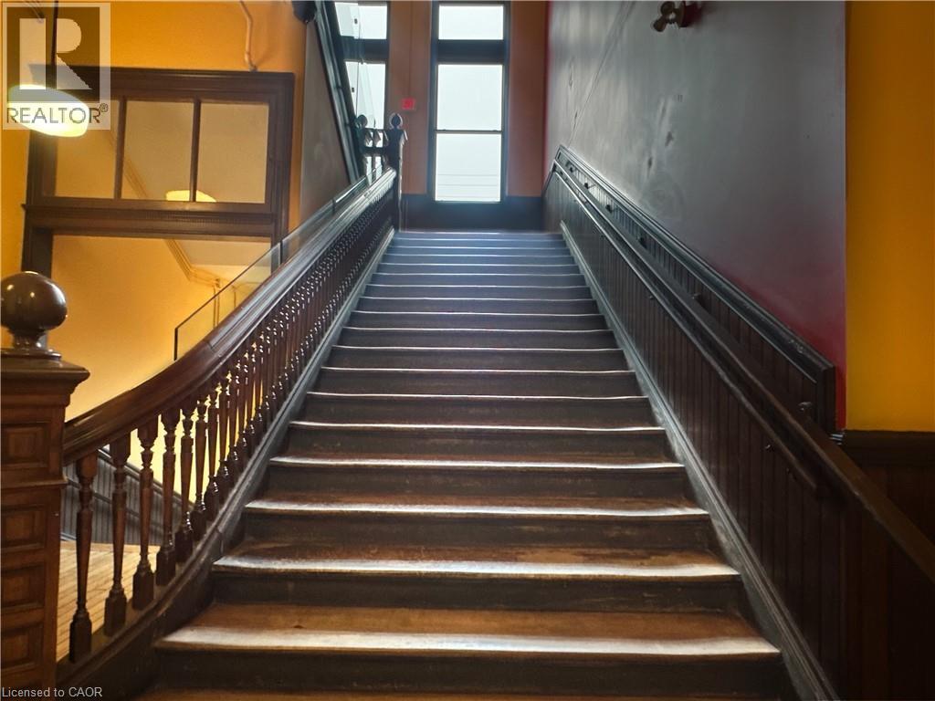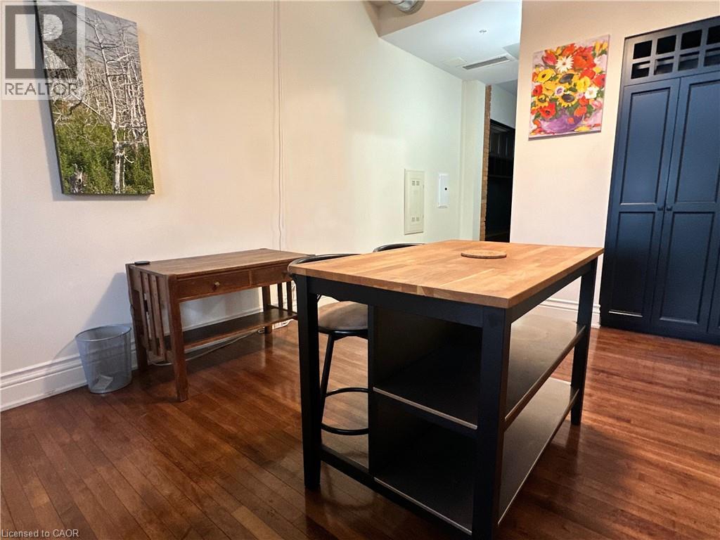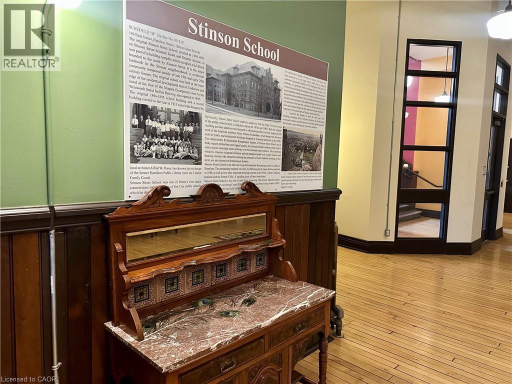Welcome to this stunning, spacious open-concept suite in the Stinson School Lofts, offering escarpment vistas from the oversized windows! Enjoy seamless flow between the living, dining, and kitchen areas—perfect for entertaining or relaxing at home. Stainless steel kitchen appliances add a luxury touch. The large foyer features built-in shelves and a bench, offering both style and practicality. The primary bedroom boasts a huge walk-in closet, while the modern three-piece bath is equipped with a walk-in shower, and a bonus in-suite laundry for your convenience. Soaring 14’ ceilings, exposed brick and original maple hardwood floors add character and warmth throughout. Just steps from scenic trails, a dog park, golf courses, and local restaurants, this unique property offers the best of urban living. Stinson School Lofts won City of Hamilton urban design and architecture awards 2015 award of outstanding achievement and excellence in adaptive reuse. (id:64974)