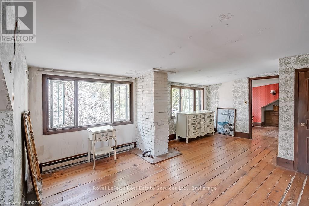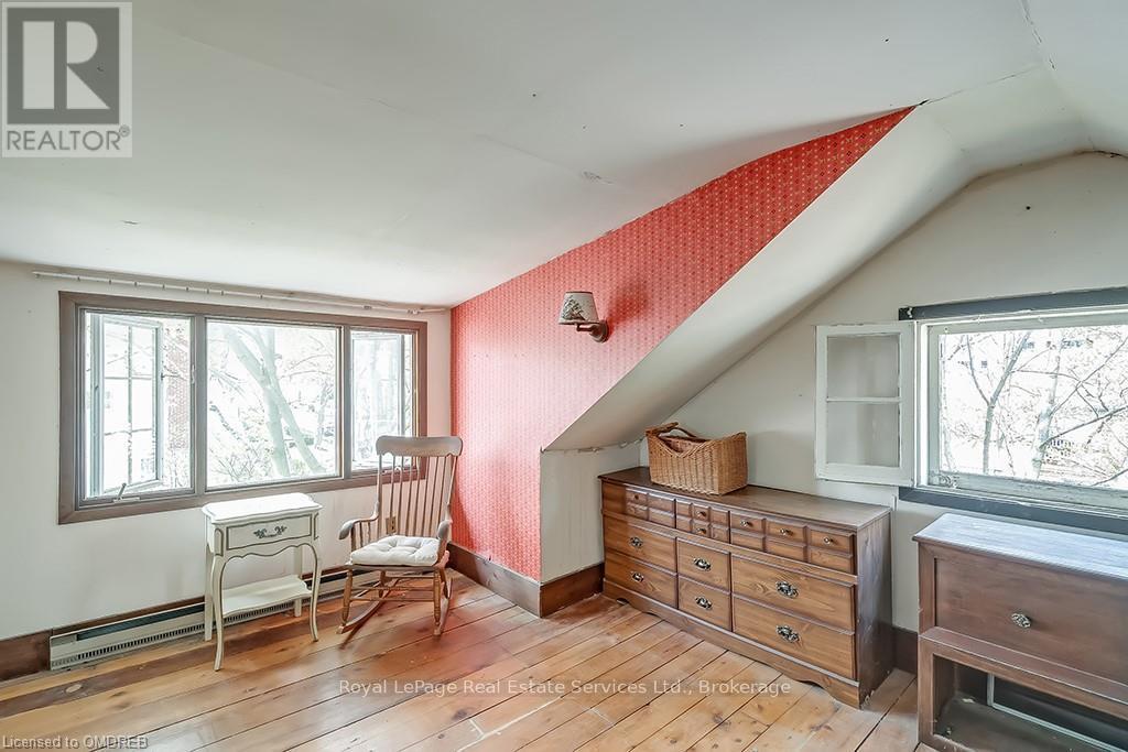 Well positioned property in historic Old Oakville, south of Lakeshore, just steps to the beach, Oakville harbour\r\nand Town Square. Sitting proudly up on a rise, this 2 1/2 storey home features wonderful views, light and\r\nplenty of space to create your dream home. With lot dimensions of 105' x 105' this full-sized 11,044 SF lot is\r\nexactly twice the size of adjacent properties. Savvy buyers may investigate opportunities to sever the lot or\r\nexplore the creation of an accessory dwelling unit on the property. Zoning RL3, Special Provision 11. The\r\nexisting home sits entirely on one half of the property in the northeast corner leaving the south and the west\r\nportions of the lot open to potential. The existing residence features high ceilings, a grand staircase, formal\r\nliving room with wood burning fireplace and adjacent sunroom. Lovely southeast dining room takes in all the\r\nsunlight. The kitchen and back entrance are in the southwest corner of the main floor. The second floor\r\nfeatures 4 bedrooms and one main bathroom. The third floor with two large rooms used as the Primary suite\r\nfeatures wonderful views over the garden, the lake, church tower and the beautiful trees of Old Oakville. (id:64974)