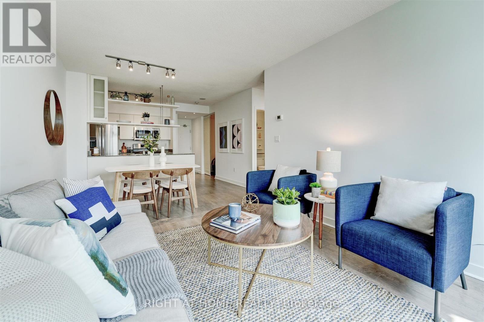 Welcome to Harbour View Estates. This bright and modern 1+Den suite offers a smart, functional layout in one of Toronto's most vibrant waterfront communities. Steps to the Harbourfront, Gardiner Expressway, CN Tower, Scotiabank Arena, Rogers Centre, transit, dining, and shopping. The open-concept living space features floor-to-ceiling windows, filling the unit with natural light. The kitchen is equipped with stainless steel appliances, granite countertops, and a gas stove. Sleek laminate flooring runs throughout, and the den with sliding doors provides versatility as a second bedroom, home office, or nursery. Enjoy city and lake views from the southwest-facing balcony. Parking and locker included, with the parking space featuring an installed two-bike stand. Maintenance fees are all-inclusive, covering heat, hydro, and water. Residents have access to over 30,000 SqFt of amenities at the CityPlace SuperClub, including an indoor pool, gym, basketball court, running track, bowling alley, tennis courts, spa, and 24/7 concierge. Live steps from the water while enjoying world-class amenities and everything downtown Toronto has to offer! (id:64974)