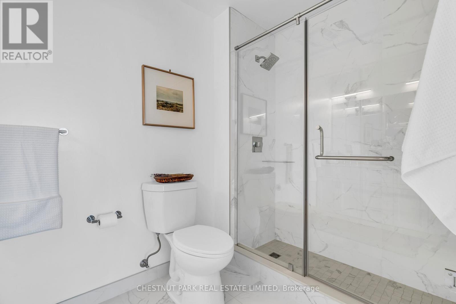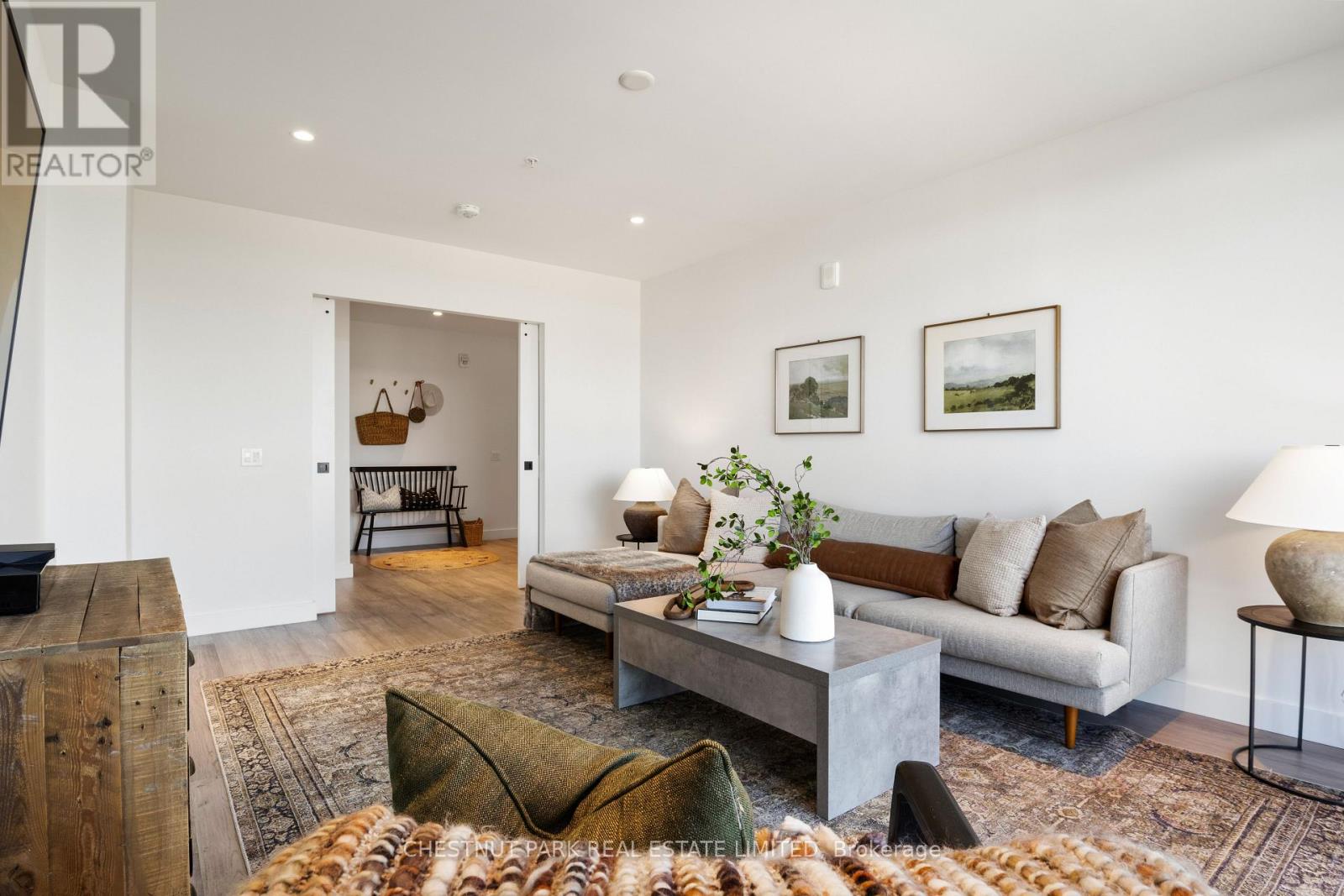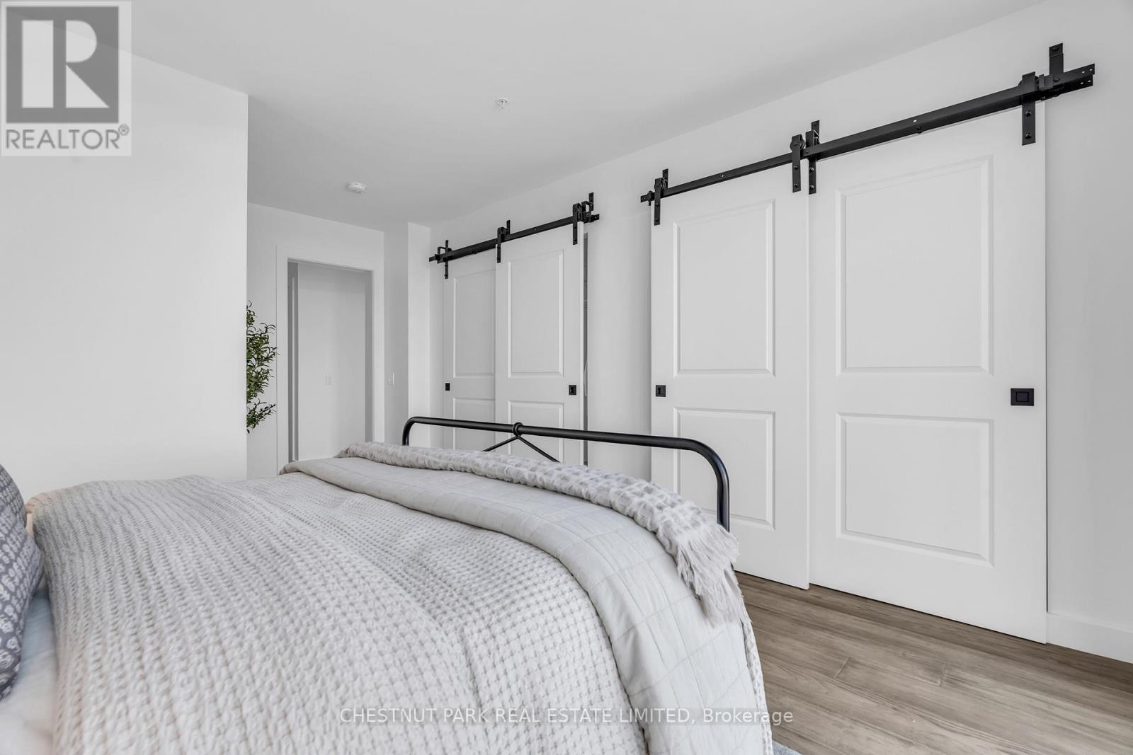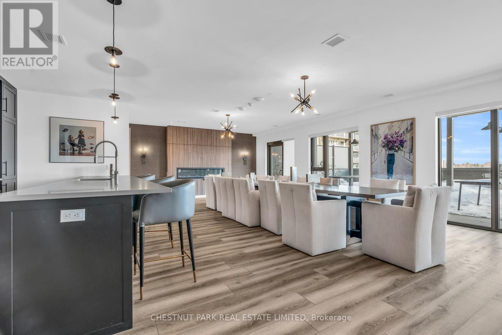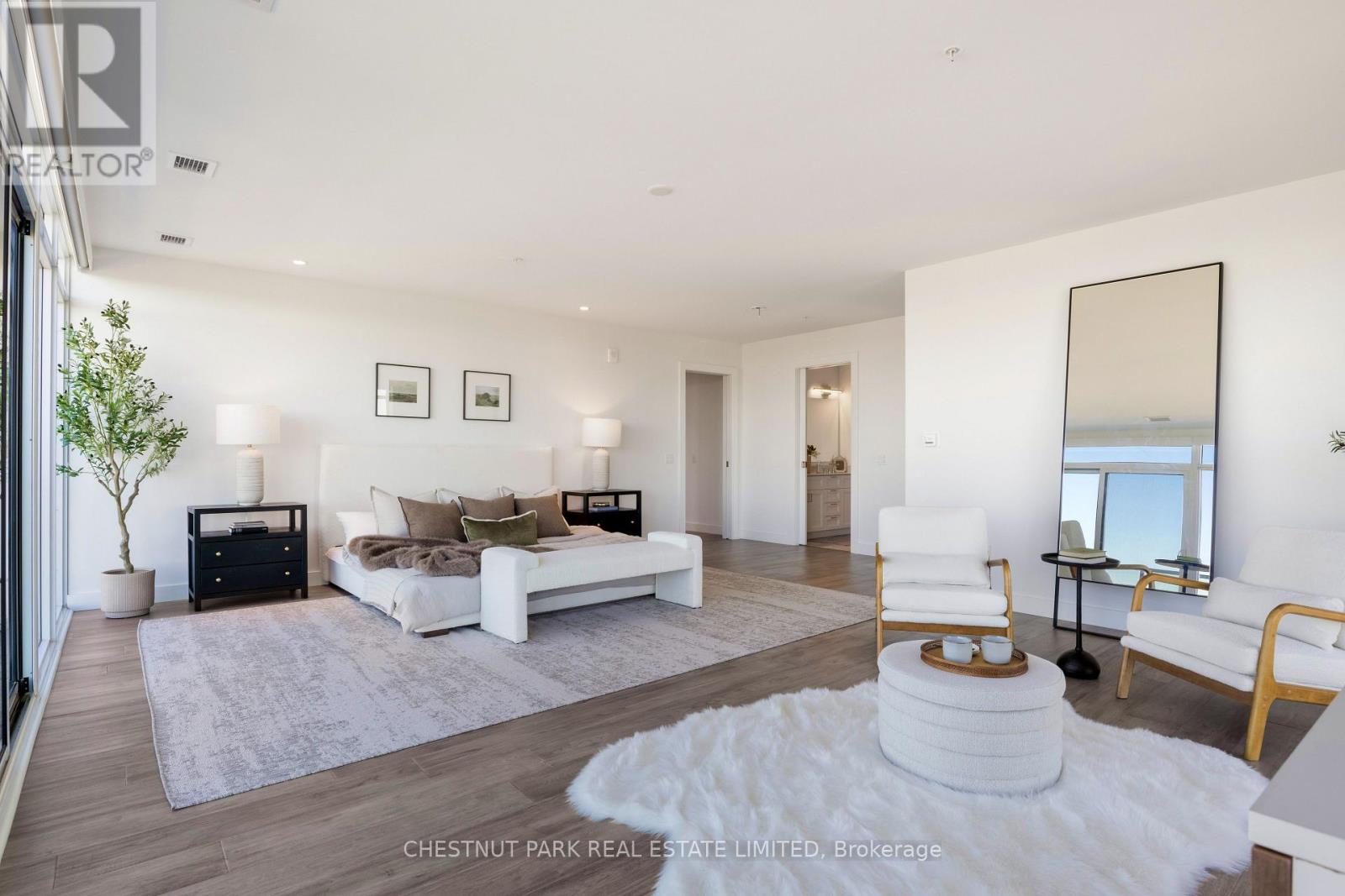 Luxury Penthouse Living in the Heart of the Gaslight District! An extraordinary 2,300 sq. ft. residence created by seamlessly combining two expansive units. Spanning the entire side of the building, this one-of-a-kind three-bedroom, three-bathroom home offers breathtaking panoramic views of historic downtown Cambridge and the Grand River. Step into a grand foyer that opens into a sun-drenched, open-concept living space. Floor-to-ceiling windows bathe the home in natural light, while engineered hardwood floors add warmth and sophistication. The thoughtful layout includes pocket doors in every bedroom, maximizing both space and functionality. At the heart of the home is a chefs dream kitchen, fully upgraded with quartz countertops and backsplash, an oversized island, and premium finishes. Designed for both style and efficiency, this space is perfect for intimate dinners or lavish gatherings. The primary suite is a private retreat, complete with a spacious walk-in closet/dressing area with custom organizers and a large window. The spa-like ensuite boasts a walk-in glass shower and dual sinks, while sliding glass doors provide direct access to the penthouses expansive 100-ft. terrace. The second bedroom features floor-to-ceiling windows, a wall-to-wall closet, and its own private three-piece ensuite. A third generous bedroom currently configured as an office/den offers additional flexibility. This extraordinary residence also features a wraparound balcony accessible from every room, offering spectacular sunrise and sunset views over the city skyline and Grand River. Additional features include two underground parking spaces (one with an EV charging station), two private storage lockers, and access to state-of-the-art amenities: a rooftop terrace, private dining room, fitness center, yoga & Pilates studio, and an elegant lobby. (id:64974)