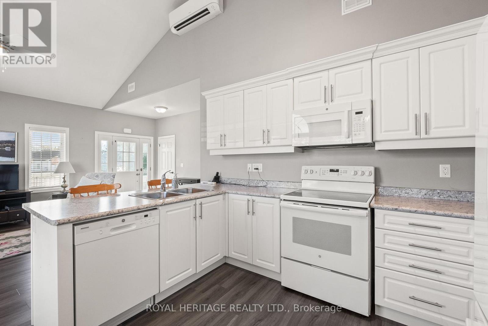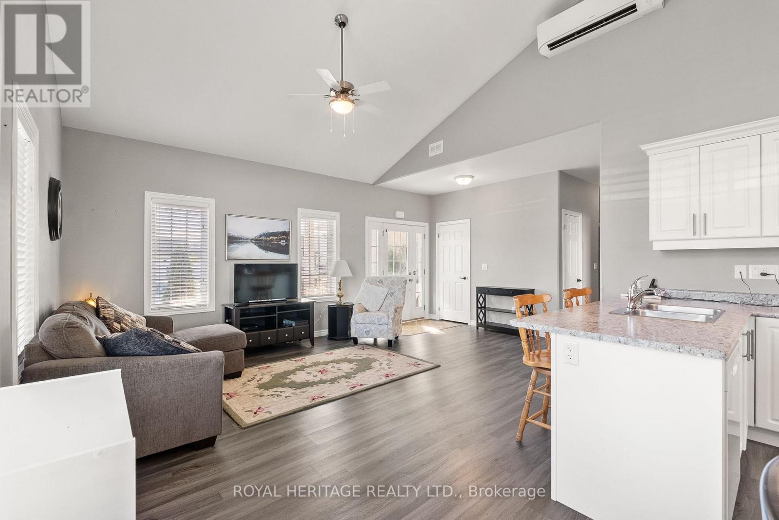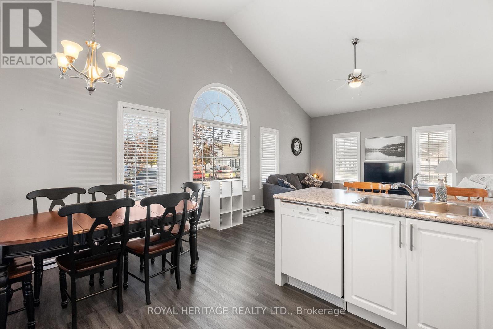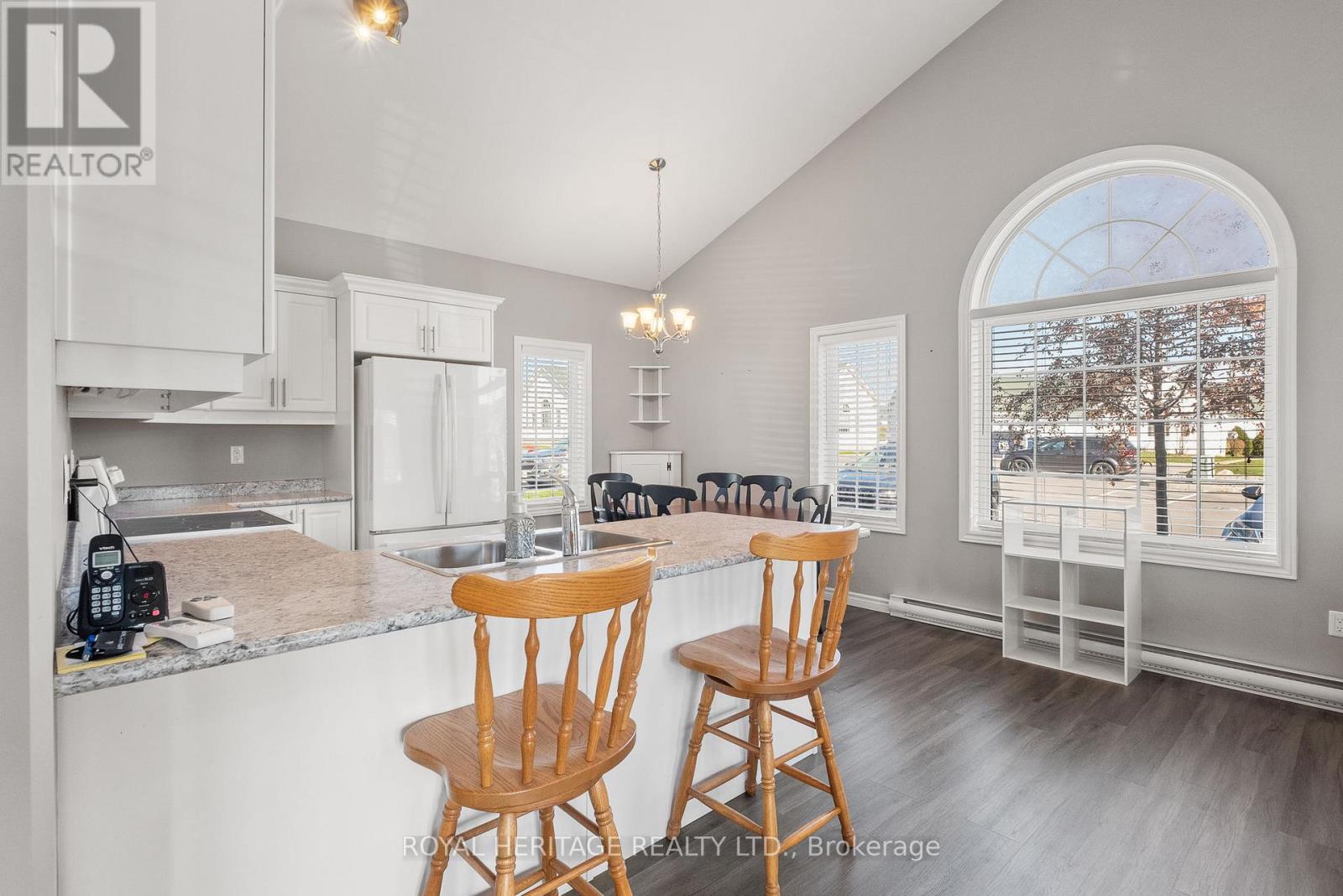 Welcome to this bright and spacious 2-bedroom condo in one of Port Hope's most desirable modern neighbourhoods - just minutes from Highway 401 for an easy commute! This inviting home features an open-concept layout designed for comfort and convenience, with abundant natural light streaming through large windows that create a warm, airy atmosphere. The functional kitchen includes a generous pantry for extra storage, ideal for home cooks or those who love to entertain.Enjoy the benefits of economical living with reasonable condo fees that cover exterior maintenance, giving you more time to relax and enjoy life. The unit includes two deeded parking spaces, providing convenience and value that's hard to find. Whether you're a professional seeking a stylish, low-maintenance home or a senior looking to downsize without compromise, this condo is the perfect fit.Set in a peaceful, modern community close to shops, restaurants, and scenic parks, this property offers the best of small-town charm with modern amenities. Move-in ready and beautifully maintained, it's an excellent opportunity to own a quality home in sought-after Port Hope. (id:64974)