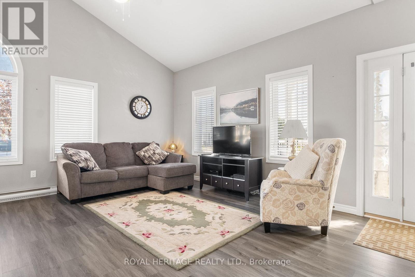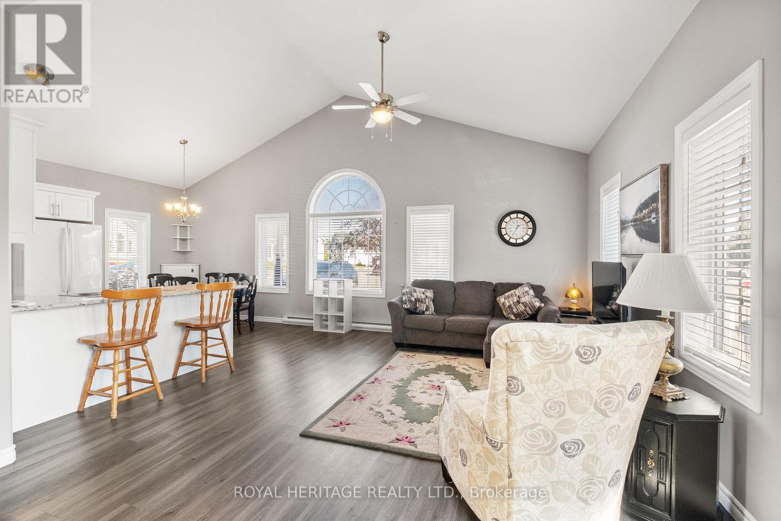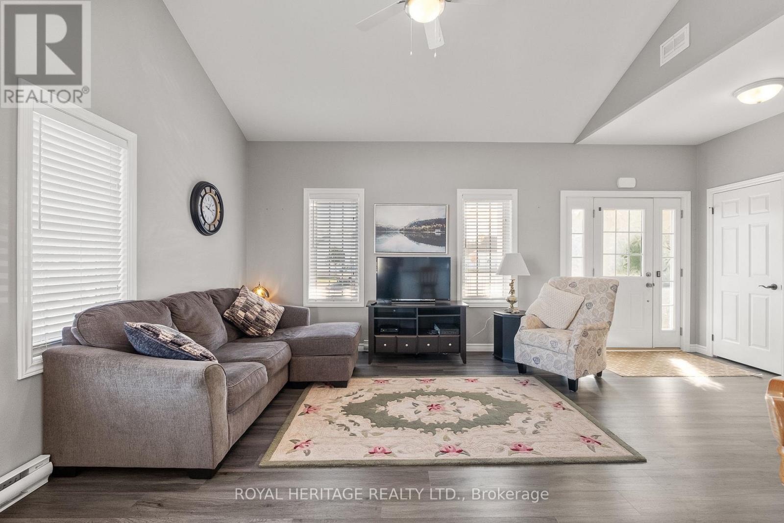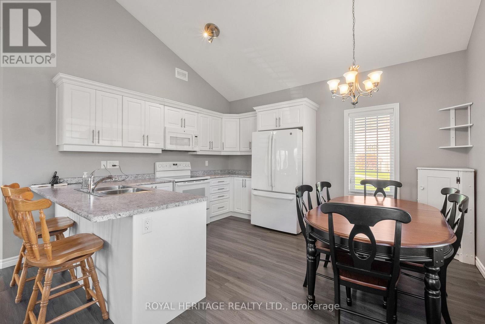 Welcome to this bright and spacious 2-bedroom condo in one of Port Hope's most desirable modern neighbourhoods - just minutes from Highway 401 for an easy commute! This inviting home features an open-concept layout designed for comfort and convenience, with abundant natural light streaming through large windows that create a warm, airy atmosphere. The functional kitchen includes a generous pantry for extra storage, ideal for home cooks or those who love to entertain.Enjoy the benefits of economical living with reasonable condo fees that cover exterior maintenance, giving you more time to relax and enjoy life. The unit includes two deeded parking spaces, providing convenience and value that's hard to find. Whether you're a professional seeking a stylish, low-maintenance home or a senior looking to downsize without compromise, this condo is the perfect fit.Set in a peaceful, modern community close to shops, restaurants, and scenic parks, this property offers the best of small-town charm with modern amenities. Move-in ready and beautifully maintained, it's an excellent opportunity to own a quality home in sought-after Port Hope. (id:64974)