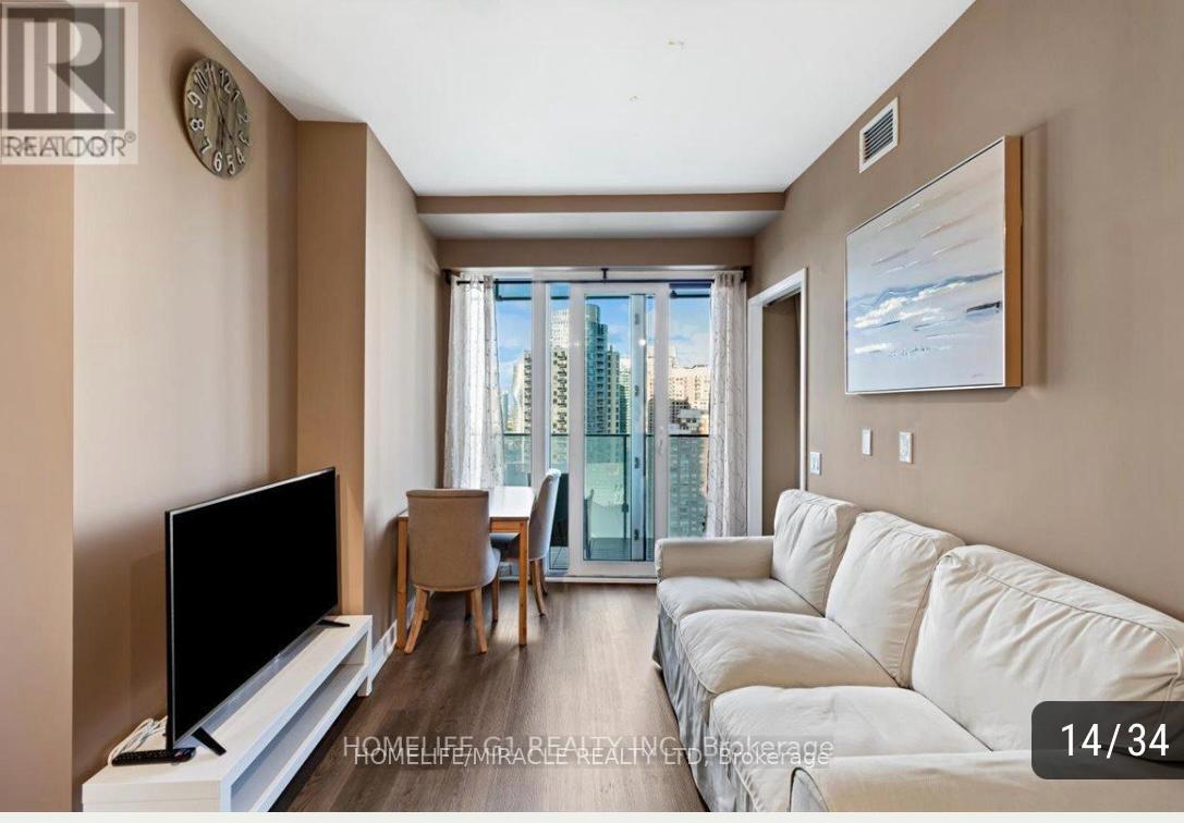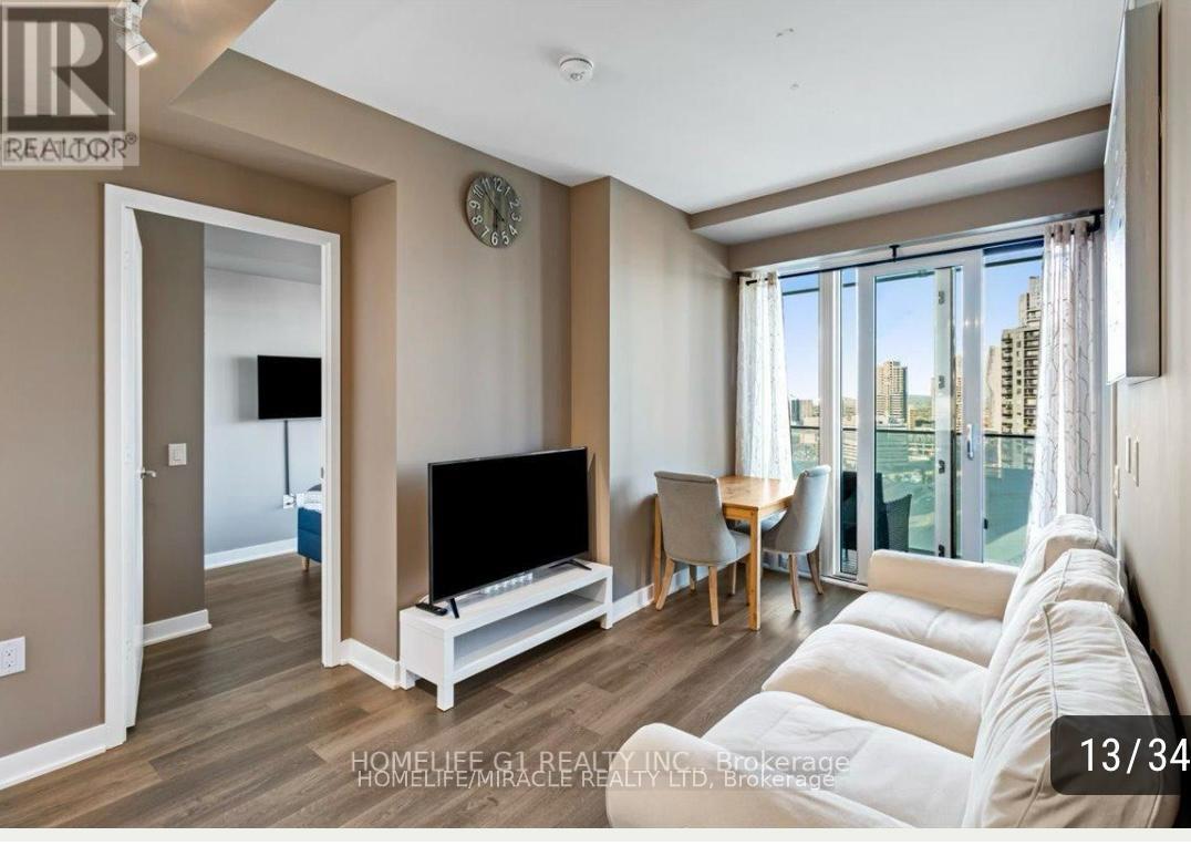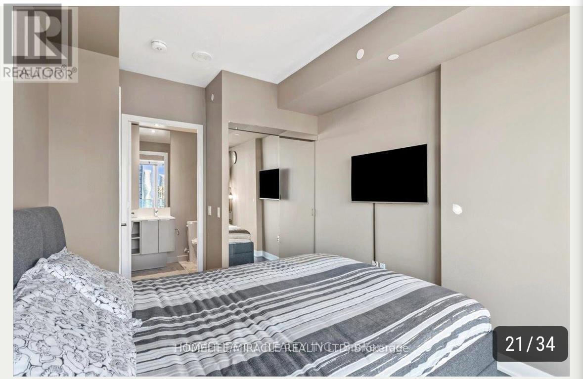 Experience modern city living at its finest in this bright and stylish 2-bedroom plus media room, 2-bath condo-perfectly positioned on 20th floor . With a coveted southwest exposure, this suite enjoys warm natural light throughout the day and sweeping, unobstructed views of the Toronto skyline, Lake Ontario, and Mississauga's bustling core. Spanning 843 sq. ft. in total which includes 144 sq. ft. balcony . It offers a spacious, open layout that effortlessly blends comfort and sophistication. The contemporary kitchen features built-in GE stainless steel appliances, sleek cabinetry, and open shelving for a clean, modern aesthetic. Both bedrooms include floor-to-ceiling windows and balcony access, while the primary retreat offers a mirrored closet and private ensuite. The media room is ideal for a home office or reading corner, adding flexibility for today's lifestyle. A welcoming foyer with generous storage and a stylish guest bath complete the space. Enjoy world-class building amenities-rooftop terrace, outdoor saltwater pool, skating rink, steam room, yoga studio, games lounge, and more-plus smart home features including keyless entry and video guest verification. Conveniently located near Square One, Sheridan College, the Central Library, and major highways for easy commuting. (id:64974)