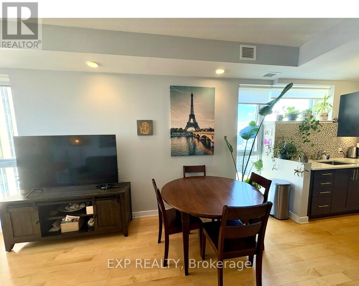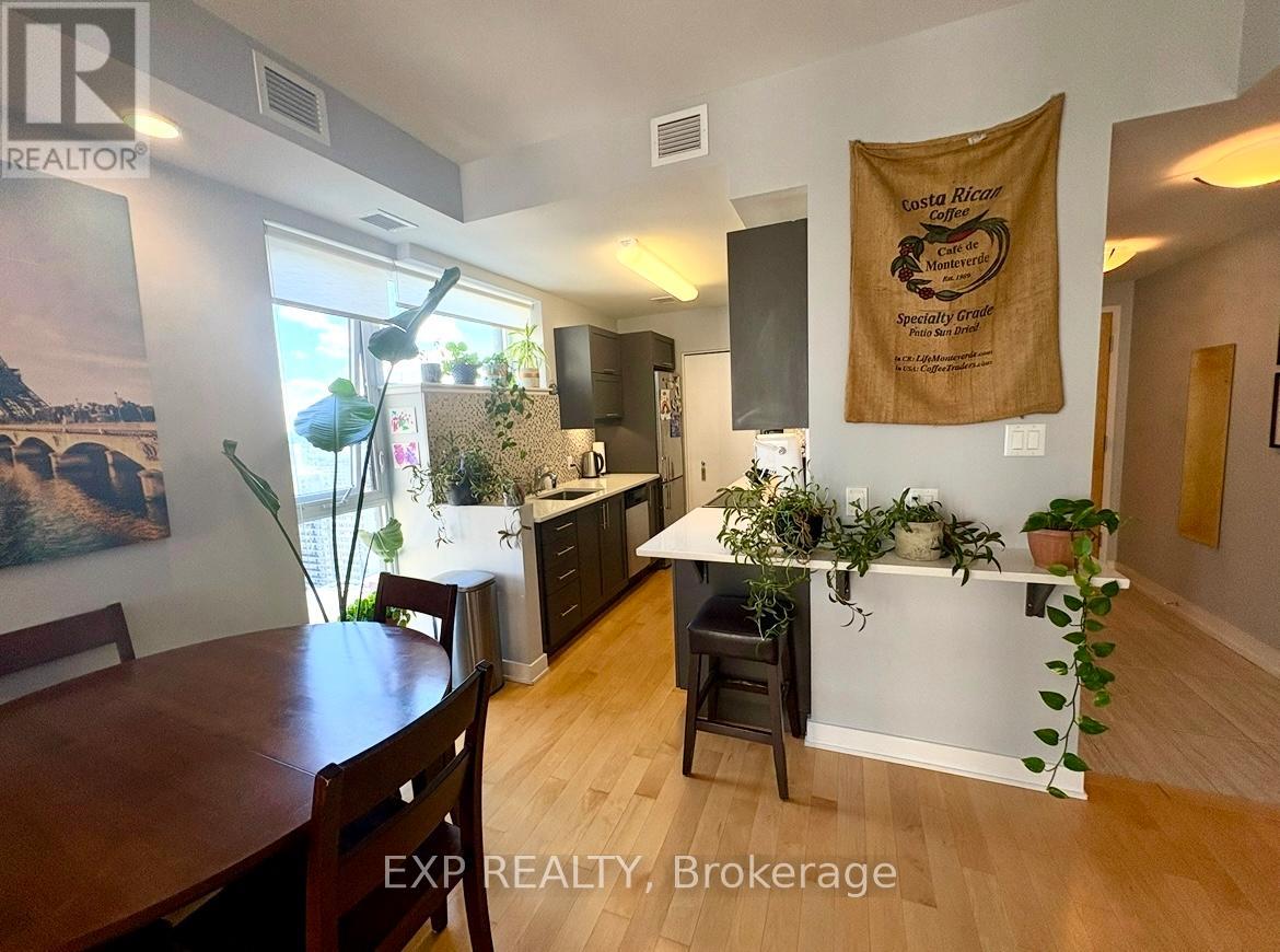 Live, work and play in one of Ottawa's hottest neighbourhoods! Only steps away from shopping, restaurants and more! Come live in this 735 SF super trendy 1 bed/1 bath corner unit in the sky, featuring breathtaking views of our nations Capital! Blackout blinds in bedroom. Enjoy your VIP lifestyle with club like amenities such as concierge service, indoor pool, full gym, party/meeting room, guest suites. Farm Boy on ground floor, access from parking garage as well. Underground parking and storage locker included! Non smoking unit, no pets. Flooring: Hardwood, Tile. Parking Space #54, Locker #133 (id:64974)