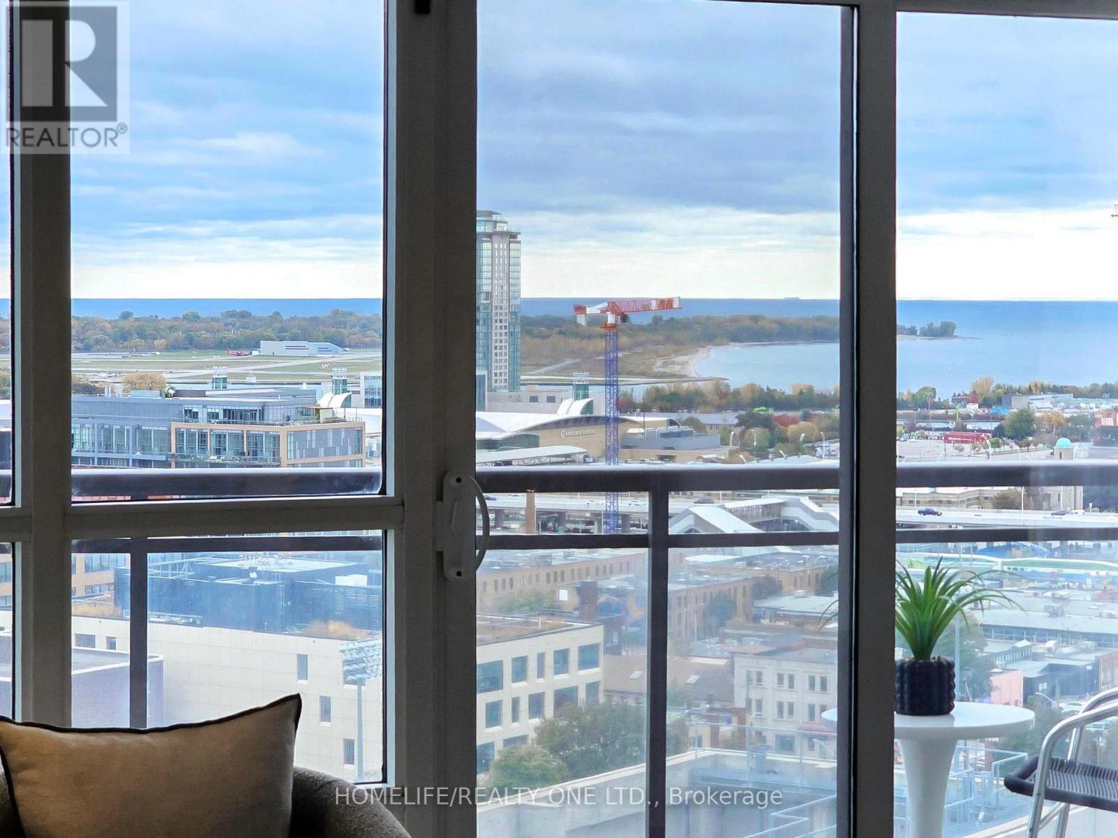 Perched high above with breathtaking panoramic views of the lake this stunning one bedroom suite perfectly captures the Urban Chic Lifestyle. Experience a seamless blend of modern design, comfort & functionality with spacious rooms, light contemporary palette finishes and floor-to-ceiling windows that flood the space with natural light. Spanning approximately 625 sq. ft. of thoughtfully designed living space, complimented by a balcony, this residence is perfect for both relaxation and entertaining. The open-concept main living area impresses with it's seamless flow, sleek kitchen and opens to show stopper Southeast facing private balcony offering a front row seat to watch games, fireworks & air shows right from home. Primary bedroom is fitted with generous 4-piece Ensuite bathroom and closet. The foyer includes a convenient 2-piece powder room, entrance closet and a 12 foot wall perfect for showcasing your own gallery display. Additional highlight include new wide plank floors throughout, this suite is broadloom free and one underground parking spot. Residents enjoy access to premium building amenities including: indoor pool, gym, party/meeting room, visitors parking, guest suites, concierge & more. Nestle between King &Queen, just steps to Liberty Village, lakefront trails and countless shops, cafes and restaurant. Walk, bike & pet friendly with easy access to all transit & Q.E.W. (id:64974)