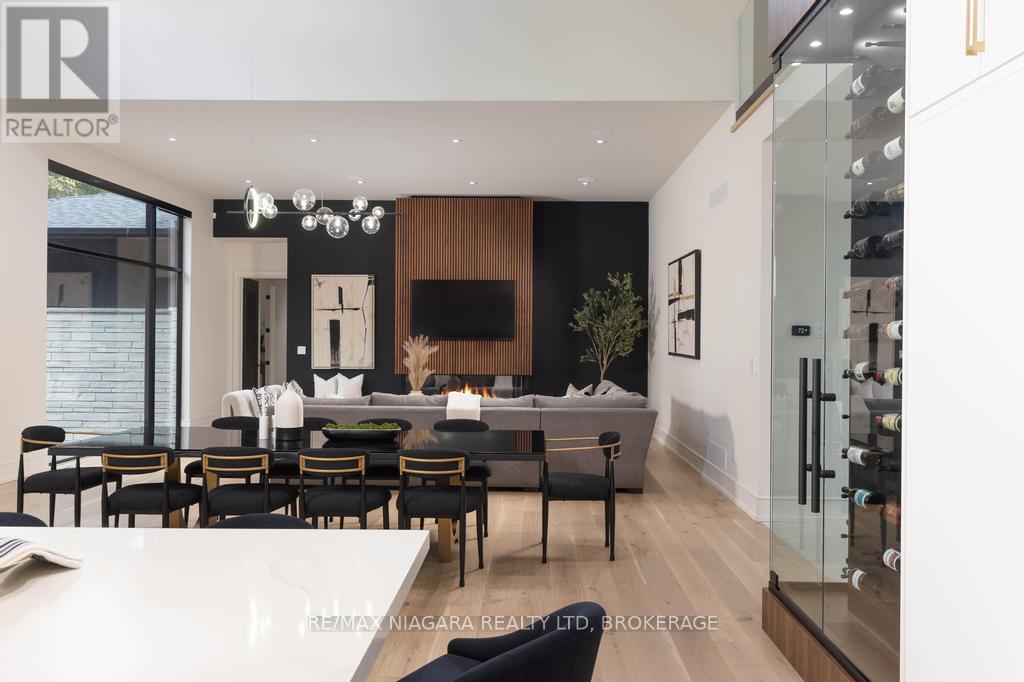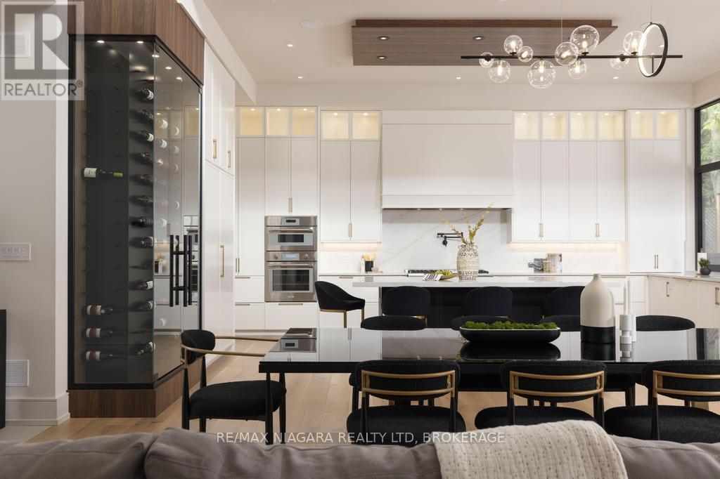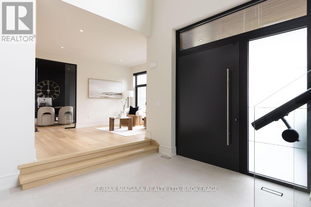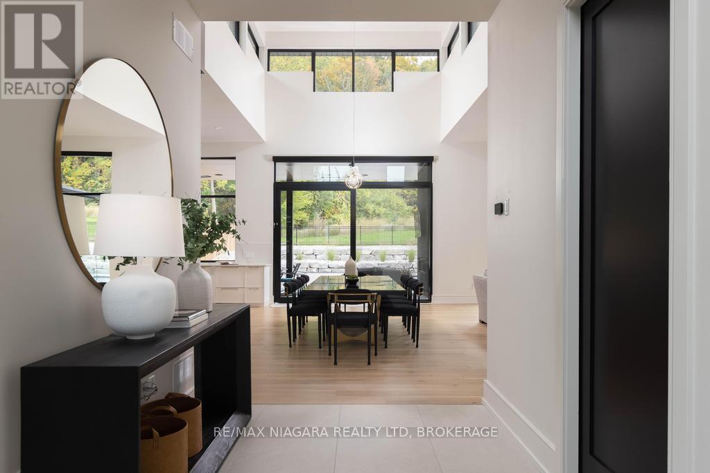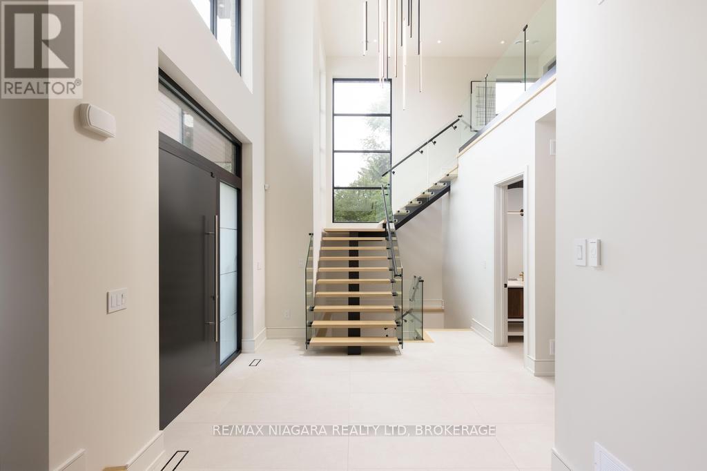 In the heart of Niagara-on-the-Lake, 2005 York Road is an exceptional Portofino-inspired bungaloft offering over 7,500 sq ft. of refined living space. Backing onto the protected greenspace of the Niagara Escarpment and combining architectural distinction with a serene setting. Featuring oversized garages, 4 bedrooms, and 4 bathrooms, designed to deliver both grandeur & comfort. A perfect blend of timeless European elegance and innovation defines the open-concept interior, with soaring ceilings, impeccable craftsmanship, and an expansive European luxury aluminum window system featuring a premium Reynaers system by VIIU. Natural light pours throughout, enhancing sophisticated finishes and smart-home technology. The chef's kitchen makes a bold statement with top of the line Thermador appliances, oversized island, quartz countertops, and custom cabinetry designed for entertaining and everyday living. The main-floor primary suite is positioned within its own wing, offering spa-inspired ensuite amenities including heated floors, steam shower, and direct access to the backyard oasis. A striking mono-stringer staircase with glass railings leads to an upper loft, where 2 additional bedrooms, flex space, a full bathroom, secondary laundry, and a balcony with sweeping landscape views await. A fully finished lower level features a walkout to the backyard, expanding the living space and offering endless possibilities including a future theatre or rec area. Carefully selected upgrades are featured throughout, including in-floor heated bathrooms, power shades, Generac backup generator, and a flat roof equipped with heat tracers. Outside, landscaped grounds evoke a resort-style retreat with an inground pool, hot tub, covered patio, outdoor kitchen and gas fireplace. Designed with uncompromising attention to detail, comfort, and sophistication, this remarkable residence represents the pinnacle of modern luxury living in one of Canada's most coveted locations. Luxury certified. (id:64974)
