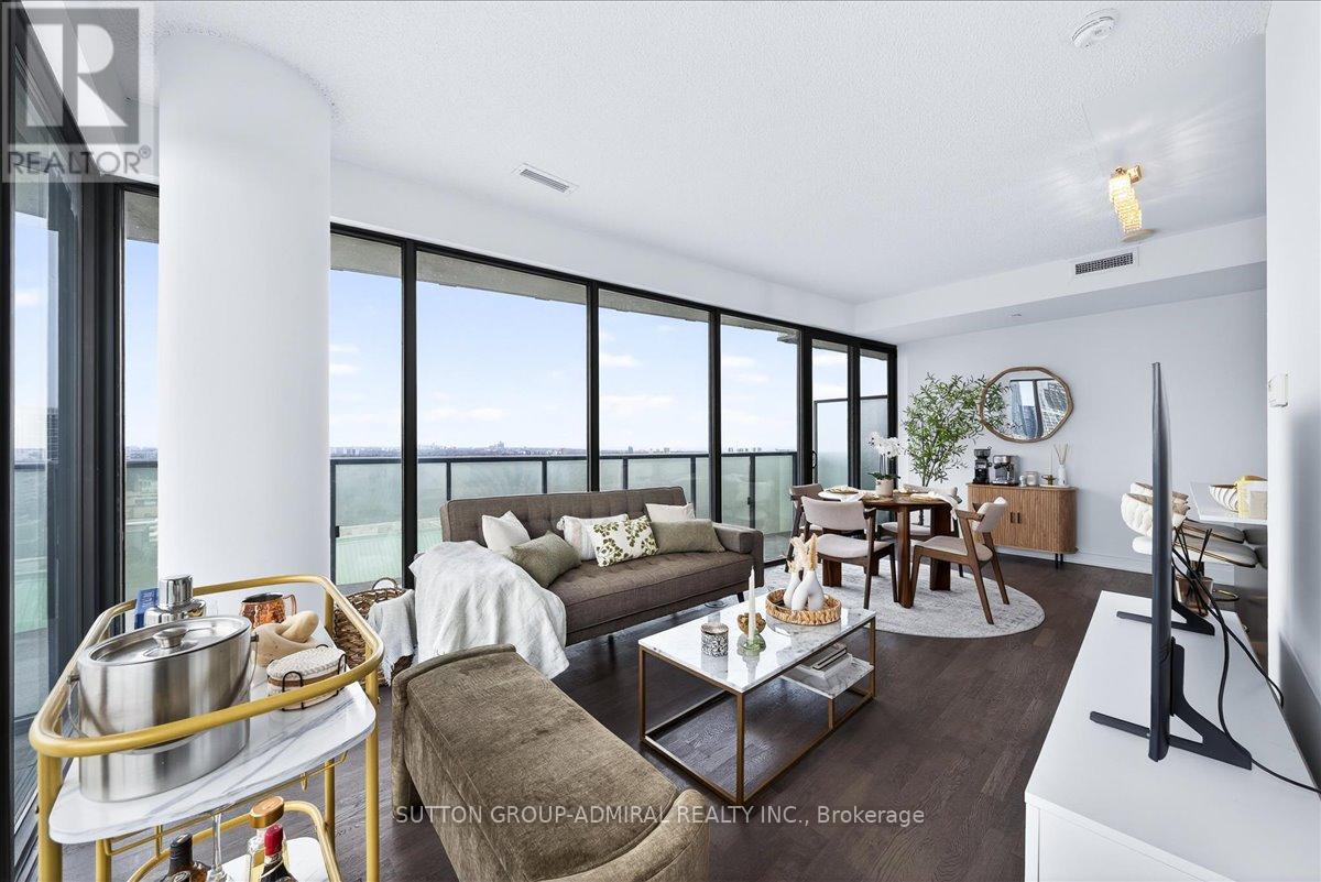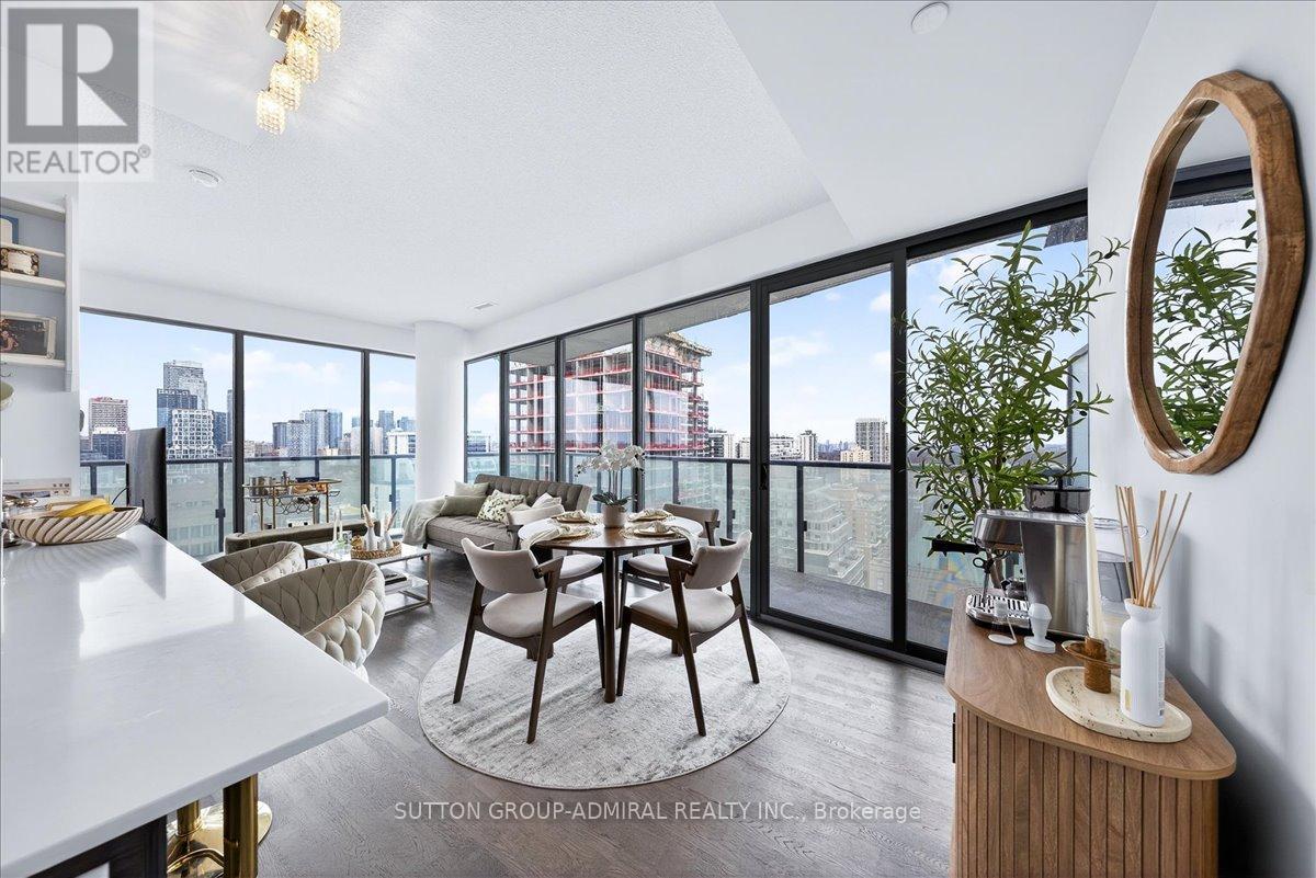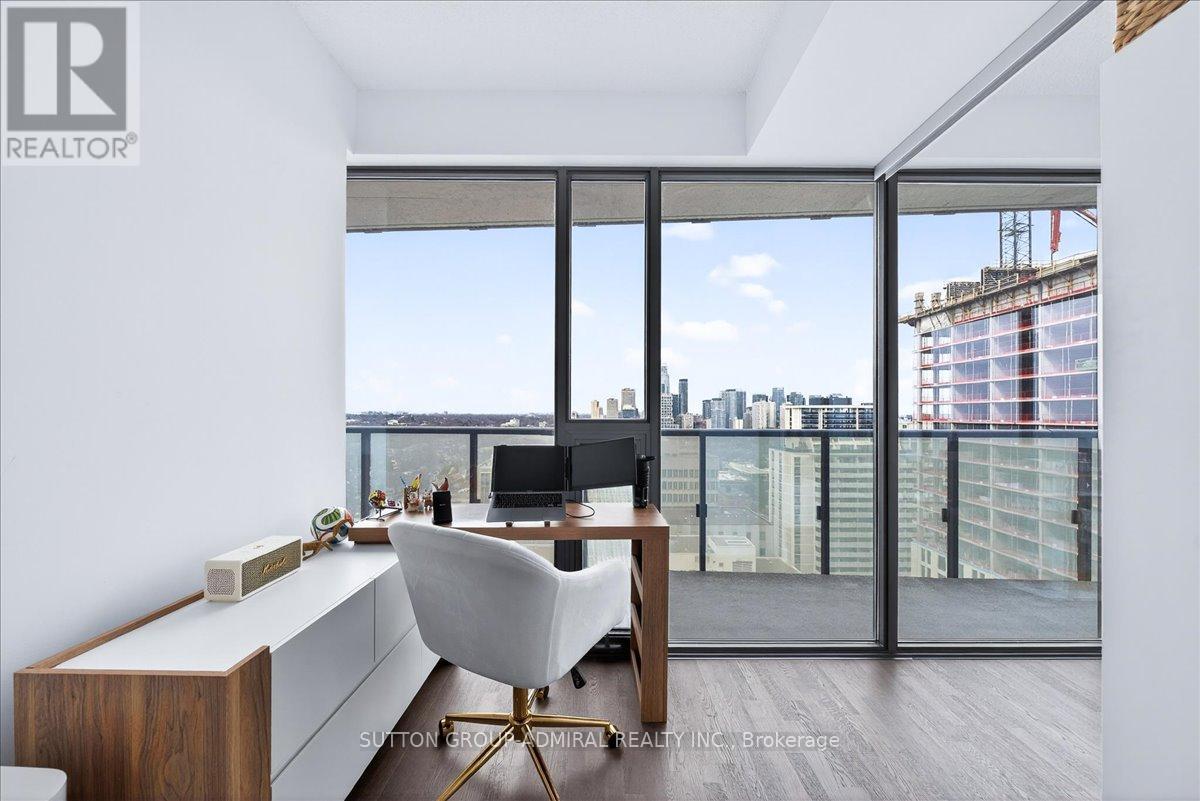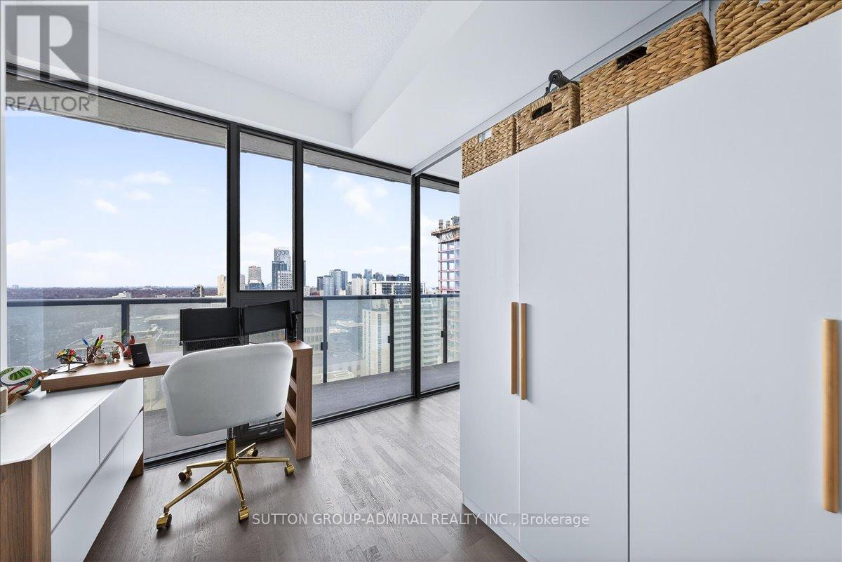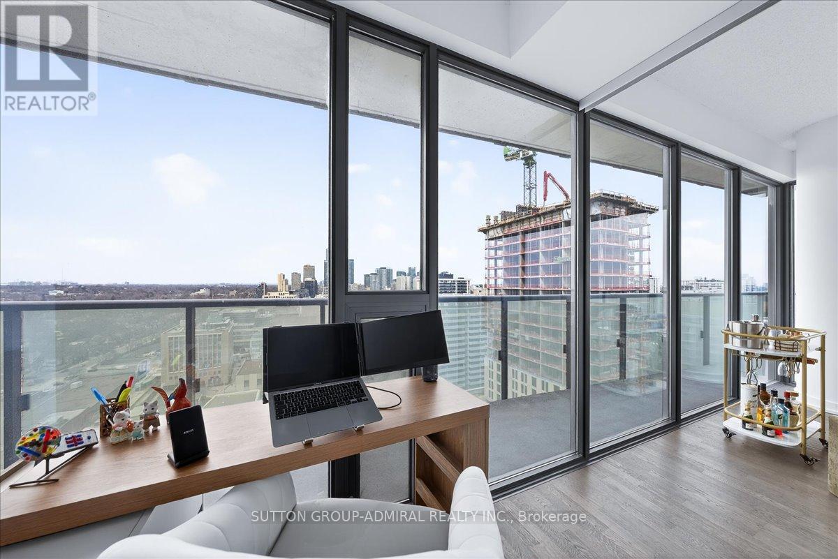 Rarely offered 1+Den suite at the prestigious MYC Condos, ideally located in the heart of Midtown Toronto at Yonge & Merton. This beautifully designed 767 sq.ft. residence features a highly functional open-concept layout with soaring high ceilings and floor-to-ceiling windows, filling the space with natural light and showcasing breathtaking 280-degree panoramic city views.The modern kitchen is finished with sleek cabinetry, quartz countertops, and stainless steel appliances, seamlessly flowing into spacious living and dining areas-perfect for both everyday living and entertaining.Step out onto your expansive 260 sq.ft. wrap-around balcony with two walk-outs-an exceptional outdoor space to enjoy both sunrise and sunset, host guests, or unwind above the city.The spacious den, complete with a sliding door, offers true versatility and can easily function as a second bedroom, private office, or guest space.Unbeatable location just steps to Davisville Station, the Kay Gardner Beltline Trail, and an array of boutique shops, cafes, and restaurants along Yonge Street.Residents enjoy premium amenities including concierge, fitness centre, media room, party/meeting room, rooftop terrace, and visitor parking.A rare opportunity to own in one of Midtown's most sought-after residences, offering the perfect blend of lifestyle, location, and elevated urban living. (id:64974)