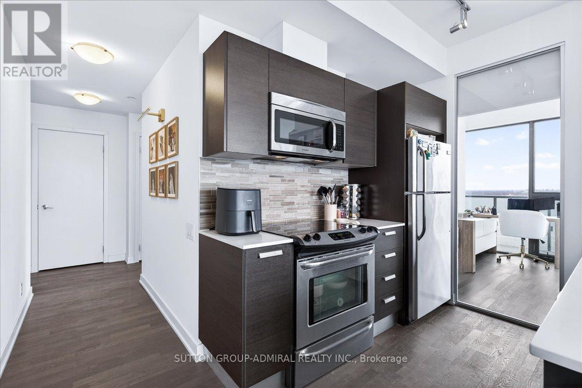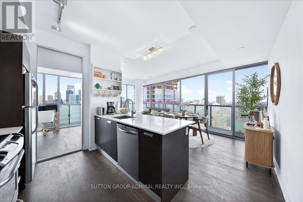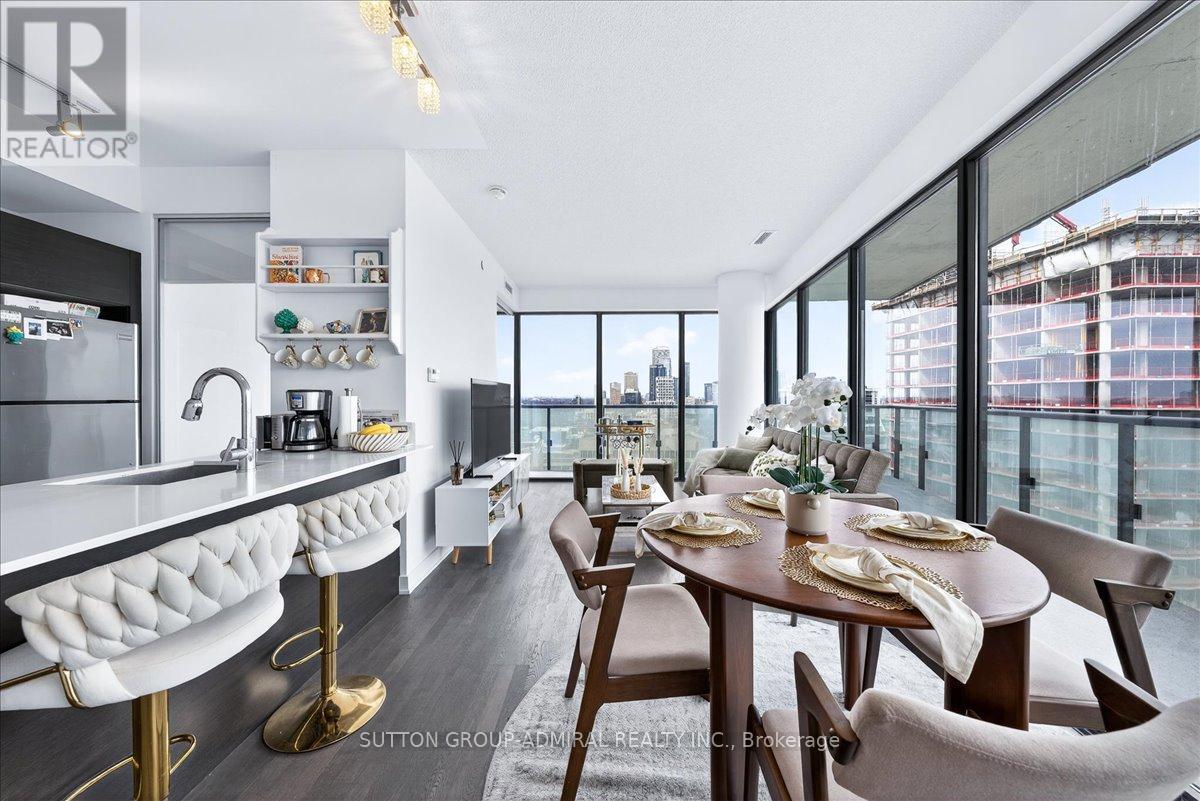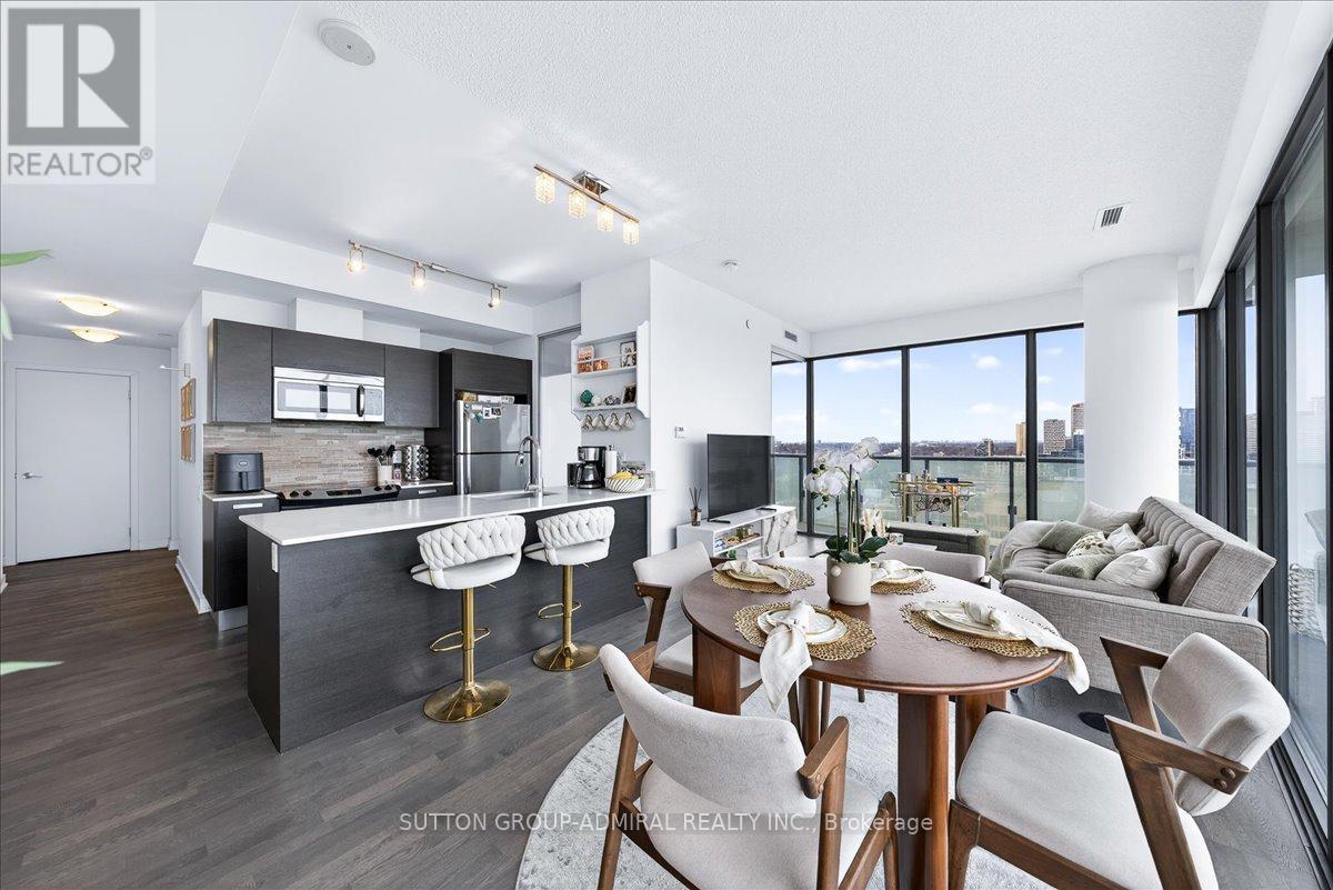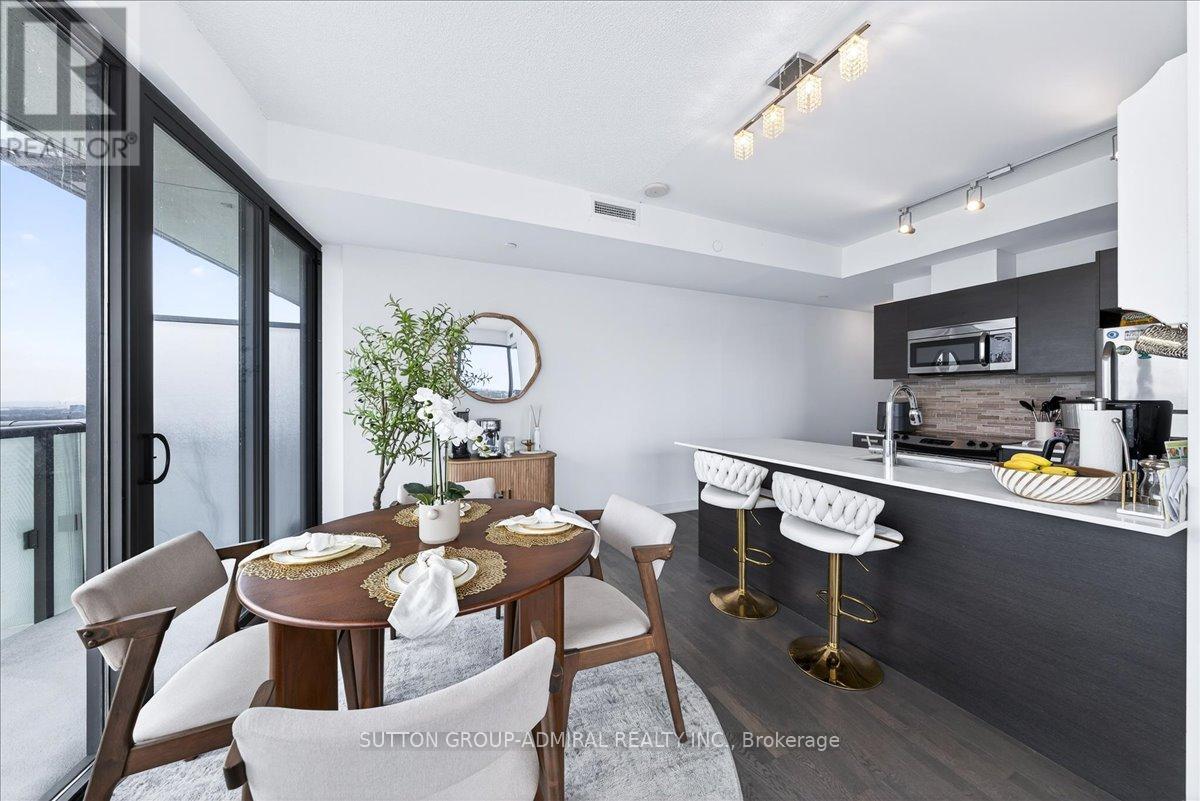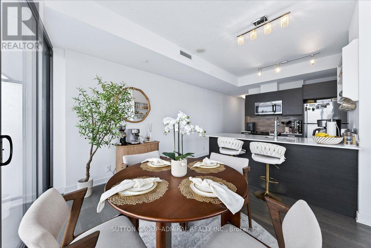 Rarely offered 1+Den suite at the prestigious MYC Condos, ideally located in the heart of Midtown Toronto at Yonge & Merton. This beautifully designed 767 sq.ft. residence features a highly functional open-concept layout with soaring high ceilings and floor-to-ceiling windows, filling the space with natural light and showcasing breathtaking 280-degree panoramic city views.The modern kitchen is finished with sleek cabinetry, quartz countertops, and stainless steel appliances, seamlessly flowing into spacious living and dining areas-perfect for both everyday living and entertaining.Step out onto your expansive 260 sq.ft. wrap-around balcony with two walk-outs-an exceptional outdoor space to enjoy both sunrise and sunset, host guests, or unwind above the city.The spacious den, complete with a sliding door, offers true versatility and can easily function as a second bedroom, private office, or guest space.Unbeatable location just steps to Davisville Station, the Kay Gardner Beltline Trail, and an array of boutique shops, cafes, and restaurants along Yonge Street.Residents enjoy premium amenities including concierge, fitness centre, media room, party/meeting room, rooftop terrace, and visitor parking.A rare opportunity to own in one of Midtown's most sought-after residences, offering the perfect blend of lifestyle, location, and elevated urban living. (id:64974)