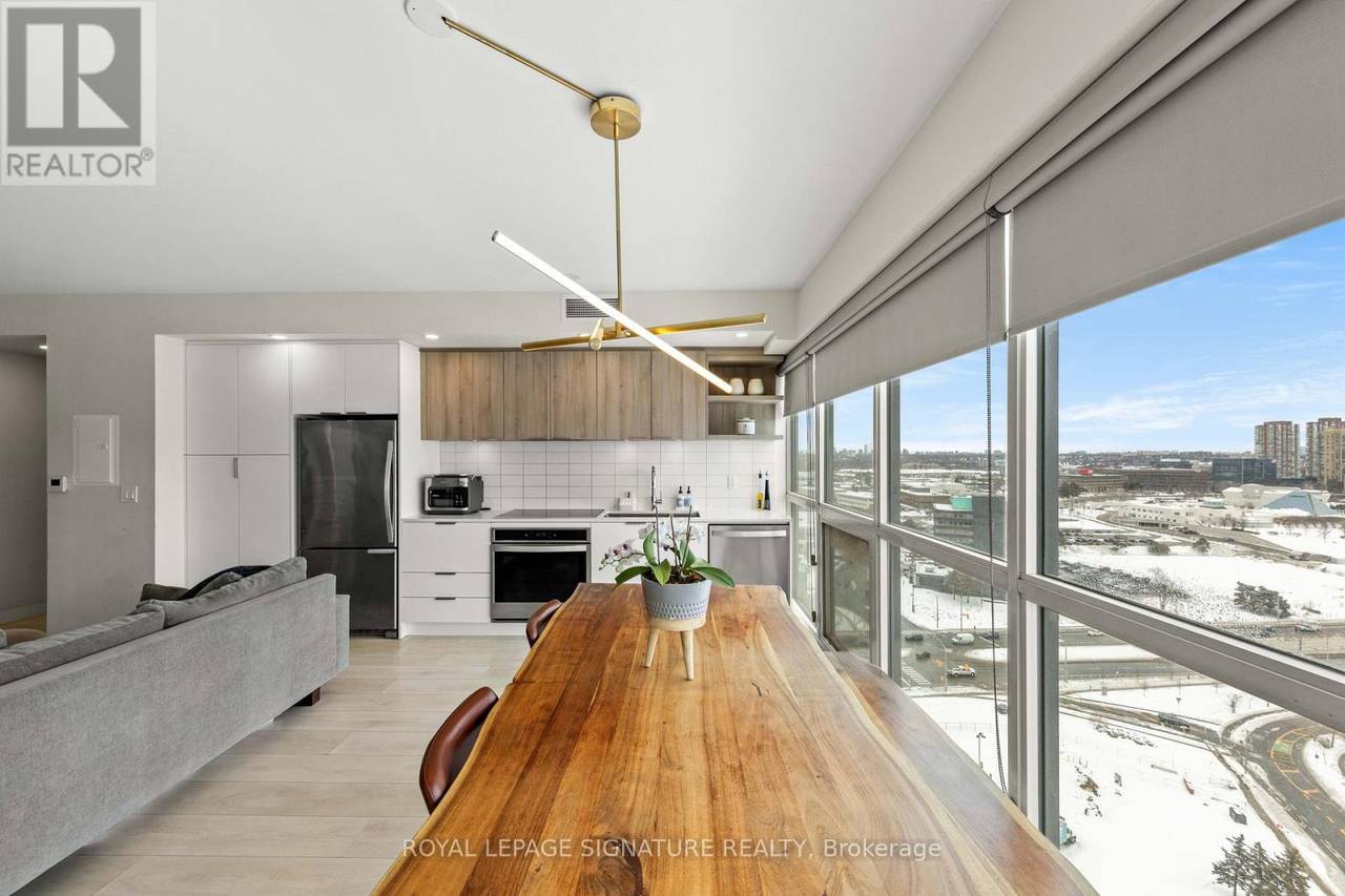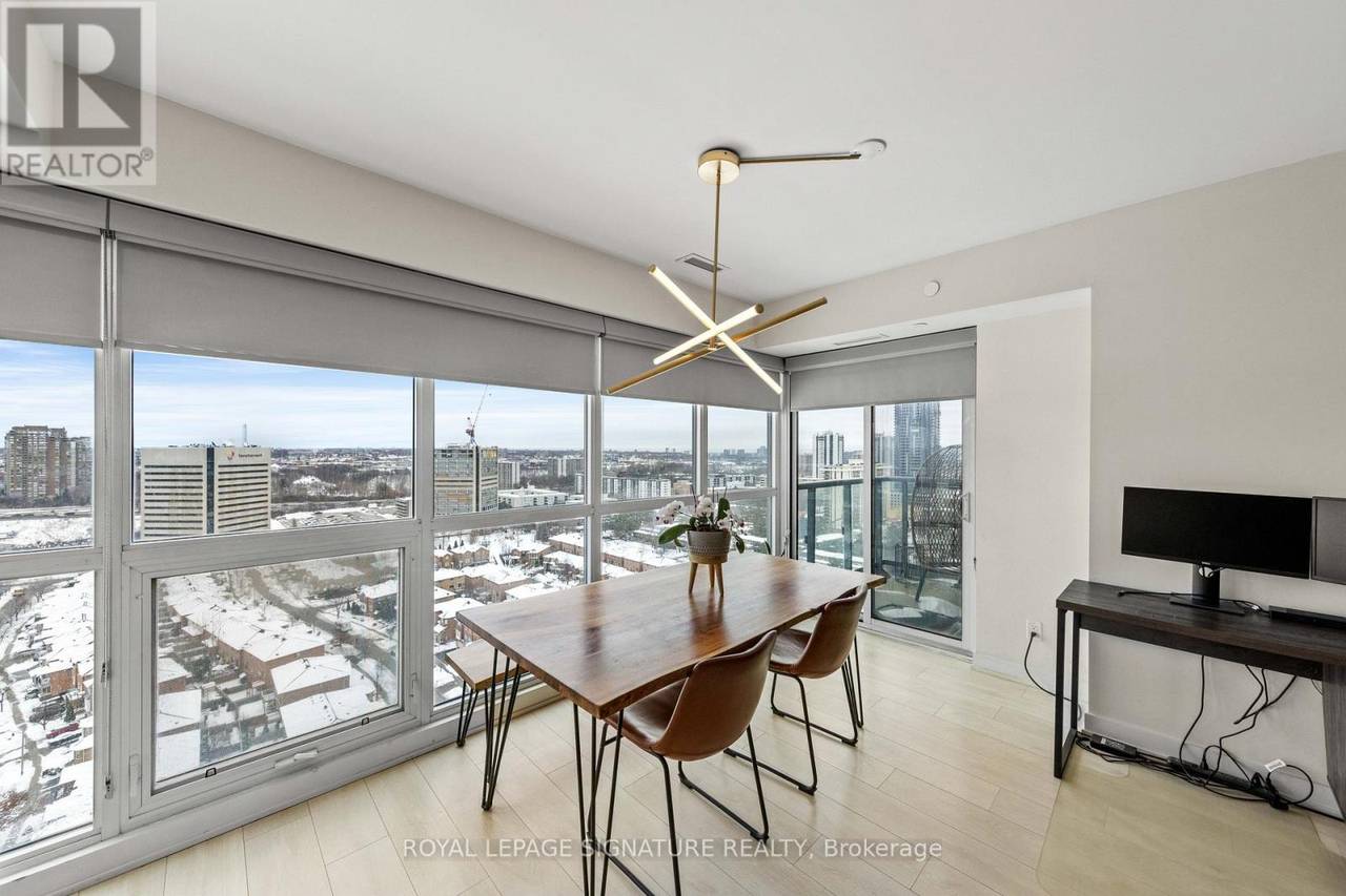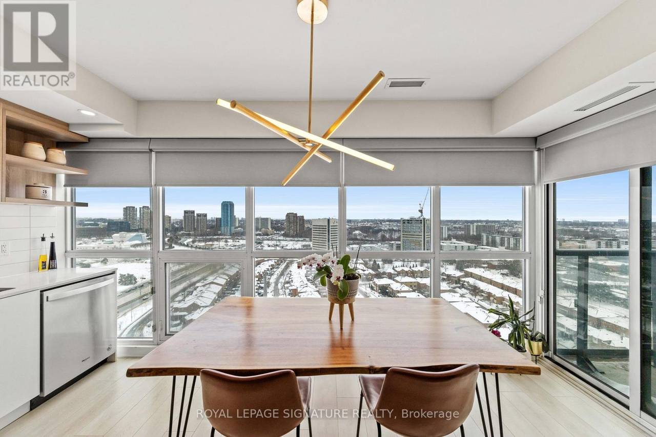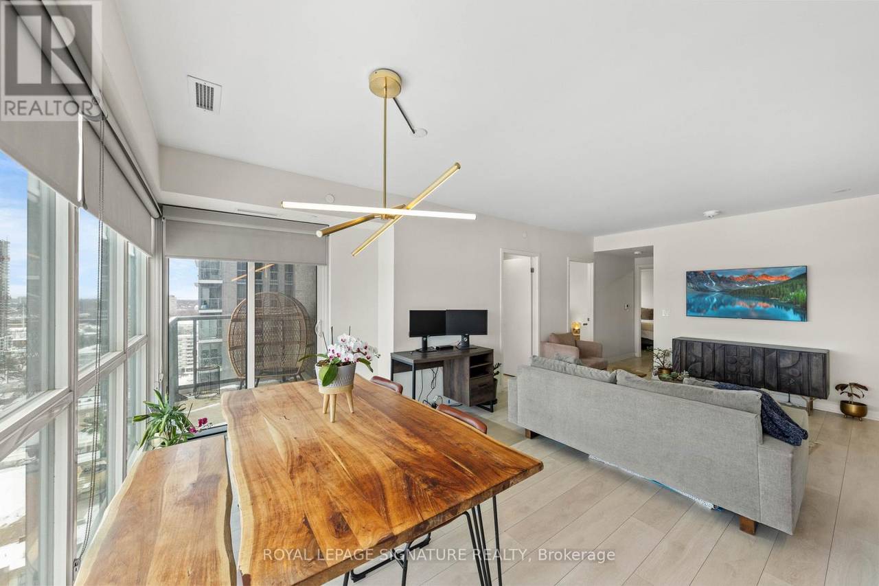 Welcome to Sonic Condos - a spacious three-bedroom, two-bath corner suite offering bright southeast exposure and clear, open views. This beautifully designed unit includes one parking space and a locker for added convenience. A modern aesthetic meets a highly functional layout, creating an ideal living space for families, professionals, or investors alike. Expansive windows flood the home with natural light, while sleek laminate flooring runs throughout for a clean, contemporary feel. The primary bedroom retreat features large windows, ample closet space, and a private ensuite bath. Two additional bedrooms also offer generous windows and closets, providing flexibility for children, guests, or a dedicated home office. Custom window coverings are installed throughout for both style and privacy. Residents enjoy an impressive collection of amenities, including a party room, movie/music room, fully equipped gym, visitor parking, guest suites ($100 per night), pet wash station, games room, meeting room, steam room, and change facilities. Located minutes from the Aga Khan Museum, schools, and convenient shopping. The building is just minutes from the newly opened Eglinton LRT, offering quick access to downtown. With the Don Valley Parkway nearby, commuting throughout Toronto and the GTA is seamless. (id:64974)