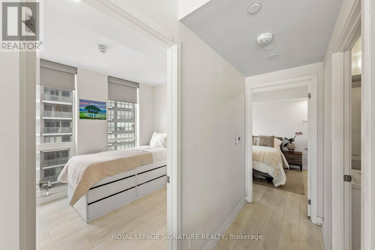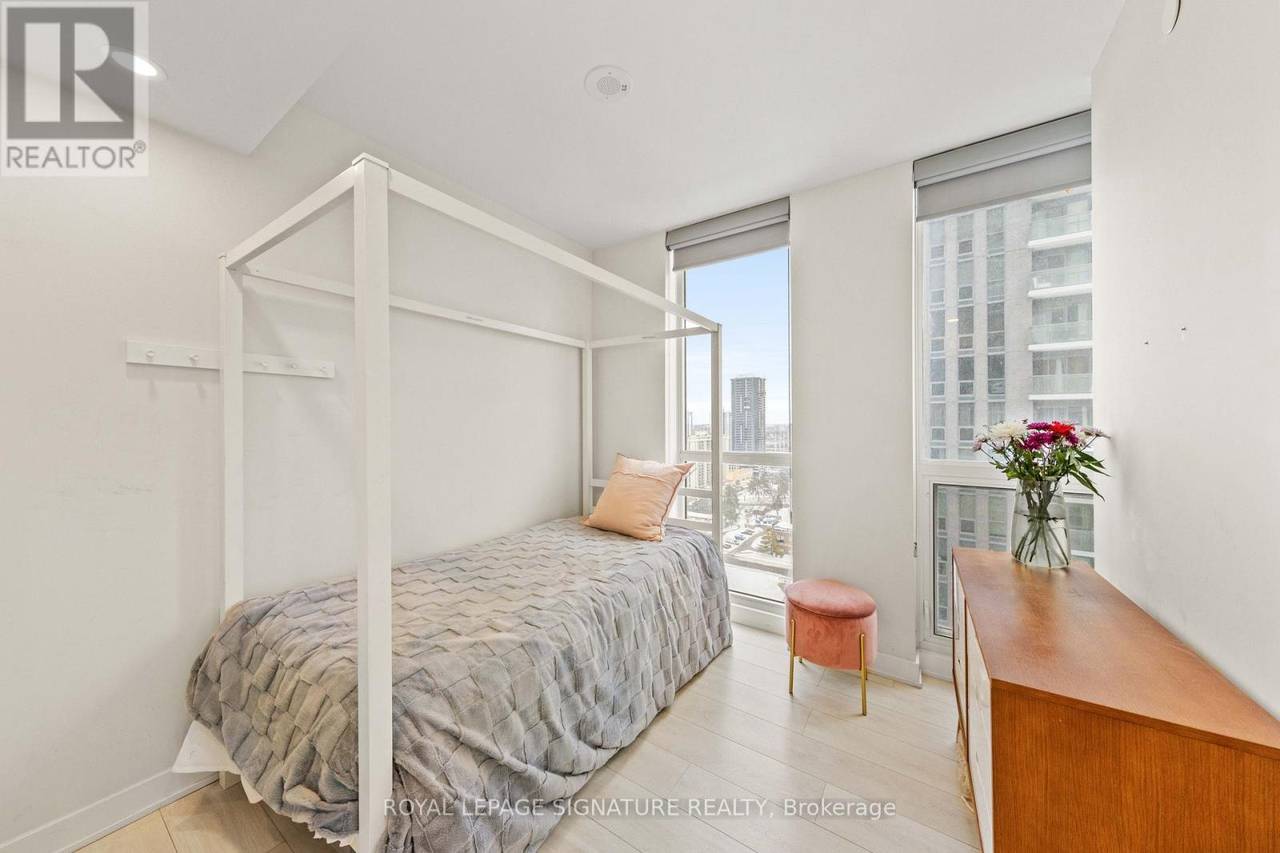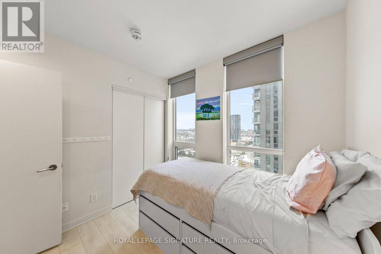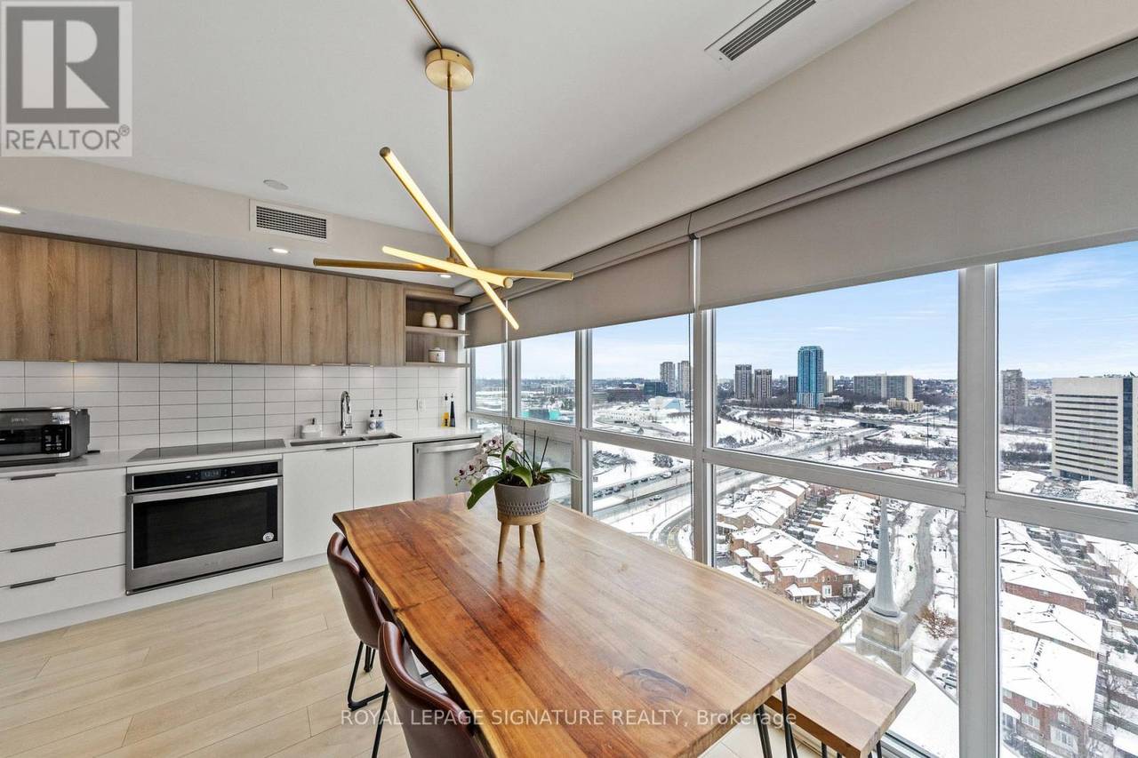 Welcome to Sonic Condos - a spacious three-bedroom, two-bath corner suite offering bright southeast exposure and clear, open views. This beautifully designed unit includes one parking space and a locker for added convenience. A modern aesthetic meets a highly functional layout, creating an ideal living space for families, professionals, or investors alike. Expansive windows flood the home with natural light, while sleek laminate flooring runs throughout for a clean, contemporary feel. The primary bedroom retreat features large windows, ample closet space, and a private ensuite bath. Two additional bedrooms also offer generous windows and closets, providing flexibility for children, guests, or a dedicated home office. Custom window coverings are installed throughout for both style and privacy. Residents enjoy an impressive collection of amenities, including a party room, movie/music room, fully equipped gym, visitor parking, guest suites ($100 per night), pet wash station, games room, meeting room, steam room, and change facilities. Located minutes from the Aga Khan Museum, schools, and convenient shopping. The building is just minutes from the newly opened Eglinton LRT, offering quick access to downtown. With the Don Valley Parkway nearby, commuting throughout Toronto and the GTA is seamless. (id:64974)