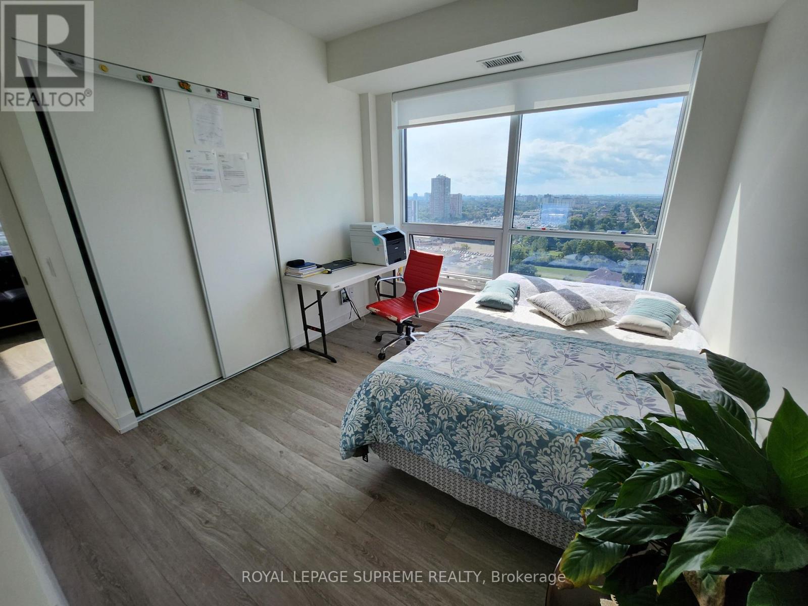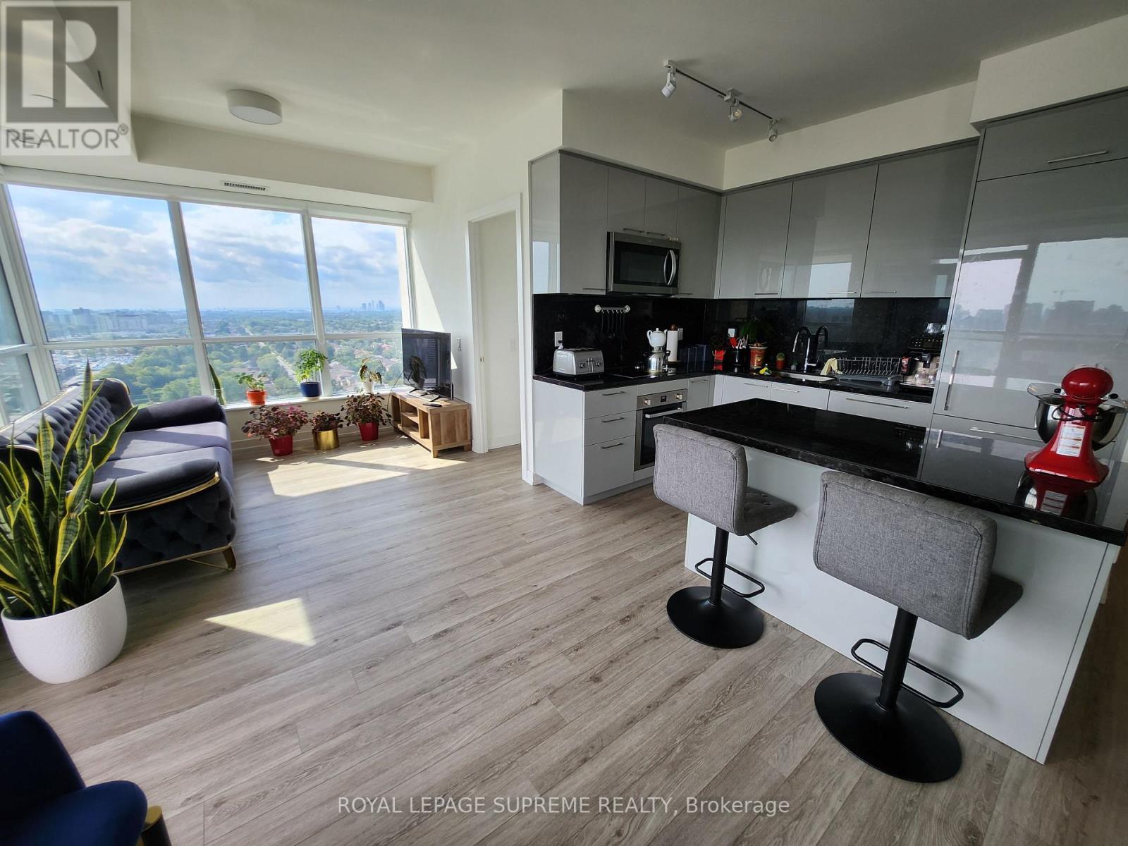 Experience elevated living in this bright and spacious 2 bedroom + oversized den, 2 bathroom suite offering over 1000 sq.ft. of beautifully designed space. The thoughtful split-bedroom layout provides both privacy and comfort, while the versatile den easily functions as a home office, media room, or potential third bedroom. Wake up to breathtaking unobstructed south and west views that stretch across the city skyline, filling the home with natural light throughout the day and spectacular sunsets in the evening. The modern kitchen with a large island, abundant storage, and oversized fridge is perfect for both everyday living and entertaining. Ideally located just steps from shopping, cafés, restaurants, and everyday conveniences, including nearby Centerpoint Mall. Transit is effortless with multiple bus routes connecting you quickly to Finch Subway Station, while drivers enjoy convenient access to Highway 401. Comfort, convenience, and incredible views come together in a home designed for modern city living. Make this stunning condo your home today! (id:64974)