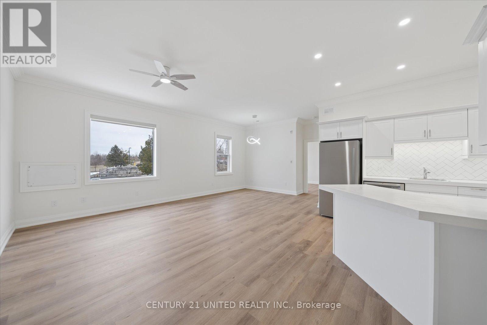Be the first to live in this brand new 2 bedroom, 1 bathroom apartment in the heart of Bridgenorth, offering modern finishes and an unbeatable location. This bright and thoughtfully designed unit features 9'6" ceilings, open concept living, high end finishes throughout, crown moulding, wide plank flooring , brand new appliances , stunning modern bathroom and large windows that bring in plenty of natural light. Enjoy 2 parking spaces and the added luxury of in-floor heating, with heat and water included, providing both convenience and comfort year round. Ideally located within walking distance to schools, shopping, restaurants, and Chemong Lake, with a bus stop right out front of the building for easy commuting and less than a 10 minute drive to Peterborough. This luxury apartment offers modern comfort and a clean, upscale feel you'll love coming home to. Don't miss your opportunity to make it yours. (id:64974)