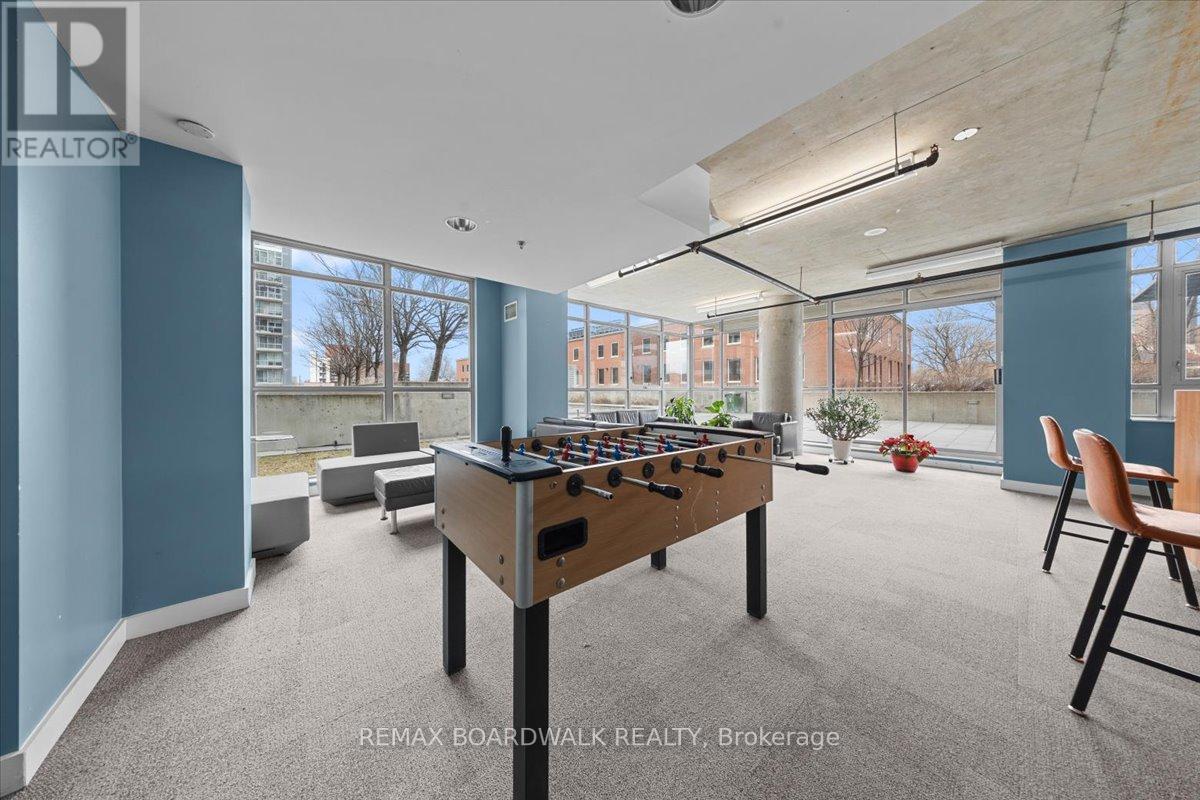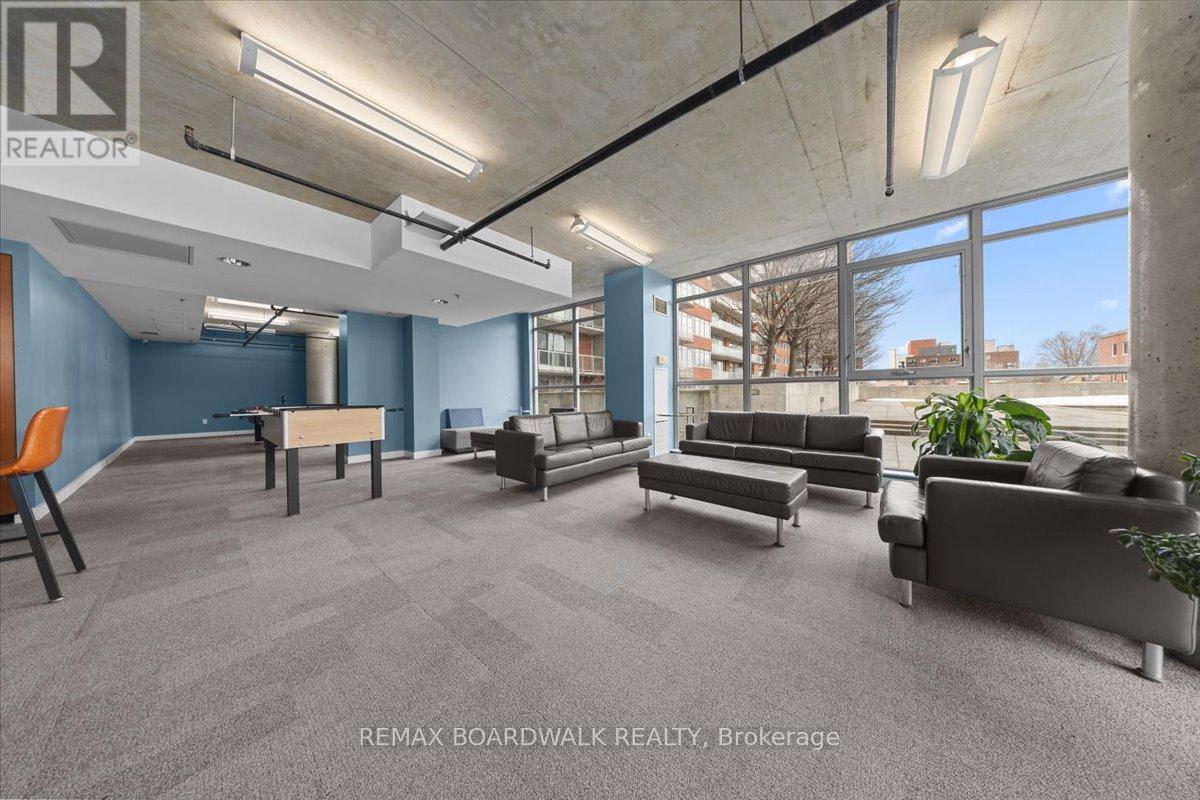 Turn-Key living opportunity w/ concierge building service. Loft-style 1bdrm unit with high ceilings and exposed concrete, showcasing a modern-industrial feel. (4-piece) bathroom nearing the entry of the unit. Floor to ceiling windows, inviting light into the open concept kitchen and dining, maximizing usable space. Hardwood throughout. South-facing balcony. Modern living with low maintenance. Amenities: Equipped Gym, Party Room, Outdoor Terrace w/ BBQ area, 30+ underground visitor parking, concierge. Located in the Byward Market nearing Restaurants, pubs & cafes, Rideau Center, Universities, LRT, Parliament, Major Hill Park. Perfect for professionals or students. Opportunity to live in downtown Ottawa for less than renting options. In-Unit Laundry + A Storage Locker. Major utilities are bundled into the condo fees (heat, hydro, water, sewer, building insurance) simplifying ownership and budgeting. 48 Hour Irrevocable on Offers (id:64974)