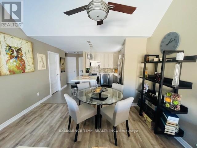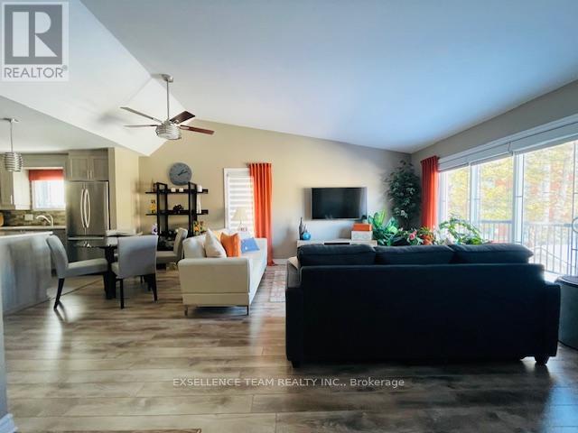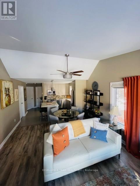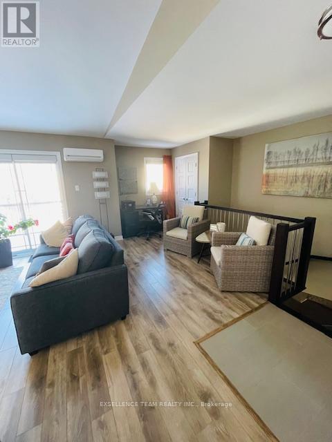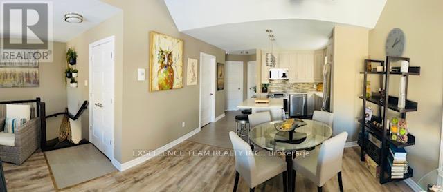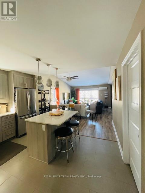 Discover this pristine, quiet upper-level end unit, 2-bedroom, 1-bathroom condo in a highly desirable central location in Downtown Cornwall near the Civic Complex, marina and scenic recreation trail. Boasting high-end upgrades like quality appliances, wall air conditioner, radiant floor heating, soaring ceilings, and an open-concept layout, this residence offers comfort and style. Enjoy the spacious deck with awning perfect for outdoor living, plus the convenience of dedicated parking and an onsite storage unit. A perfect blend of modern luxury and convenient living in a prime area - must be viewed to appreciate the quality of this property. Furnishings available at additional cost (to be negotiated with Seller). (id:64974)