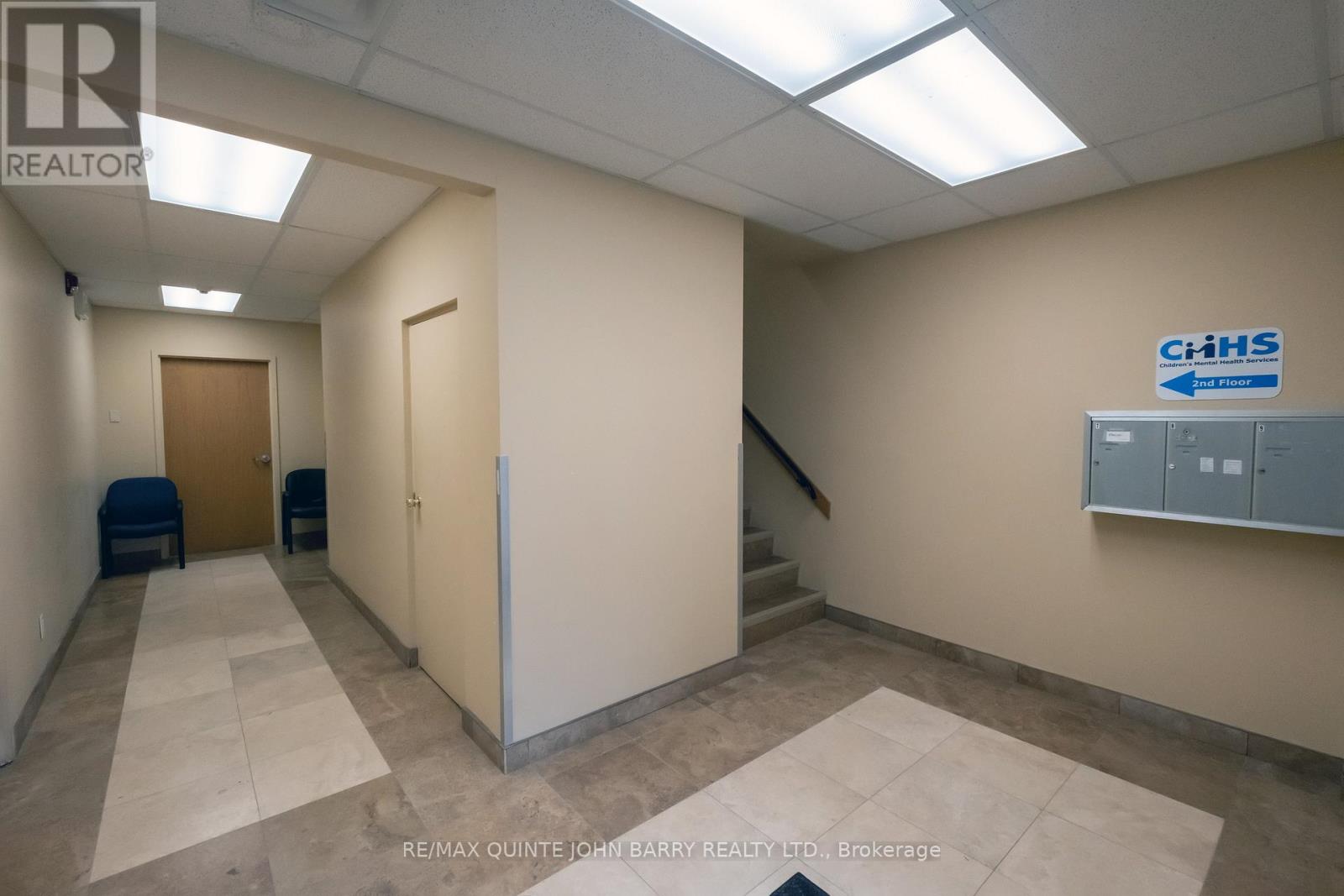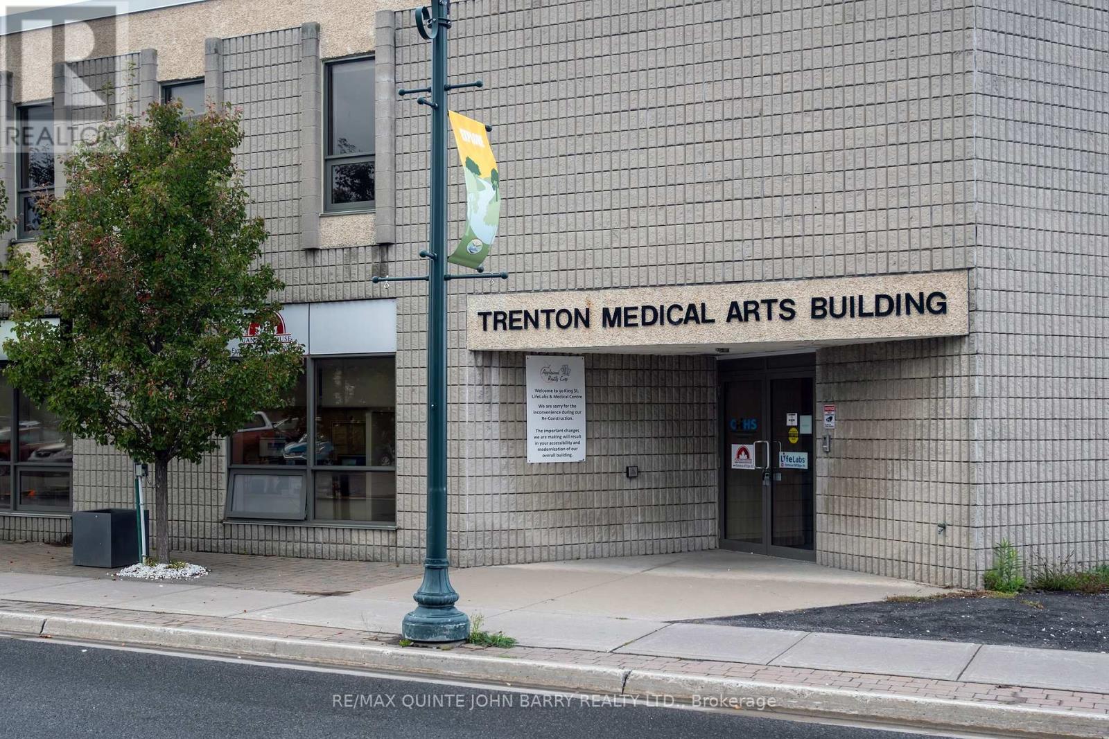 Downtown Trenton Office Space - Move-In Ready! Exceptional 1,505 sq. ft. office suite in the heart of Trenton's downtown core. Formerly a medical office, the space is professionally finished and move-in ready, featuring four private exam rooms, a separate office, reception area for two, waiting room, and a 2-piece washroom. Recently renovated with modern finishes, this suite offers excellent visibility and high pedestrian traffic, surrounded by shops and services with ample public parking nearby. The building includes an elevator for accessibility. Available at $10.00 per sq. ft. plus HST, TMI - an ideal opportunity for medical, wellness, or professional office use in a convenient downtown location. (id:64974)