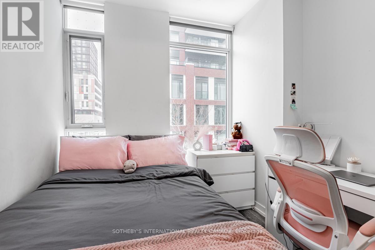 Situated within DuEast Boutique Condos, this efficiently designed corner suite offers a smart and stylish approach to downtown living. Though compact, the two-bedroom layout is thoughtfully planned to maximize functionality, with floor-to-ceiling windows that bring in natural light and enhance the sense of space. Premium laminate flooring runs through out, creating a cohesive and modern aesthetic. The stream lined kitchen is both practical and refined, featuring a custom panel refrigerator, glass-top range, built-in dishwasher, and stainless steel appliances - ideal for urban professionals or investors seeking turn key convenience. Residents enjoy access to a full complement of amenities, including 24-hour concierge service, rooftop terrace with BBQ area, fitness centre, indoor pool, and dedicated games and media rooms. Located in the heart of Regent Park, steps from the six-acre park, TTC transit, Eaton Centre,the Distillery District, and nearby universities, this residence offers exceptional connectivity and everyday convenience in a vibrant, evolving neighbourhood (id:64974)
