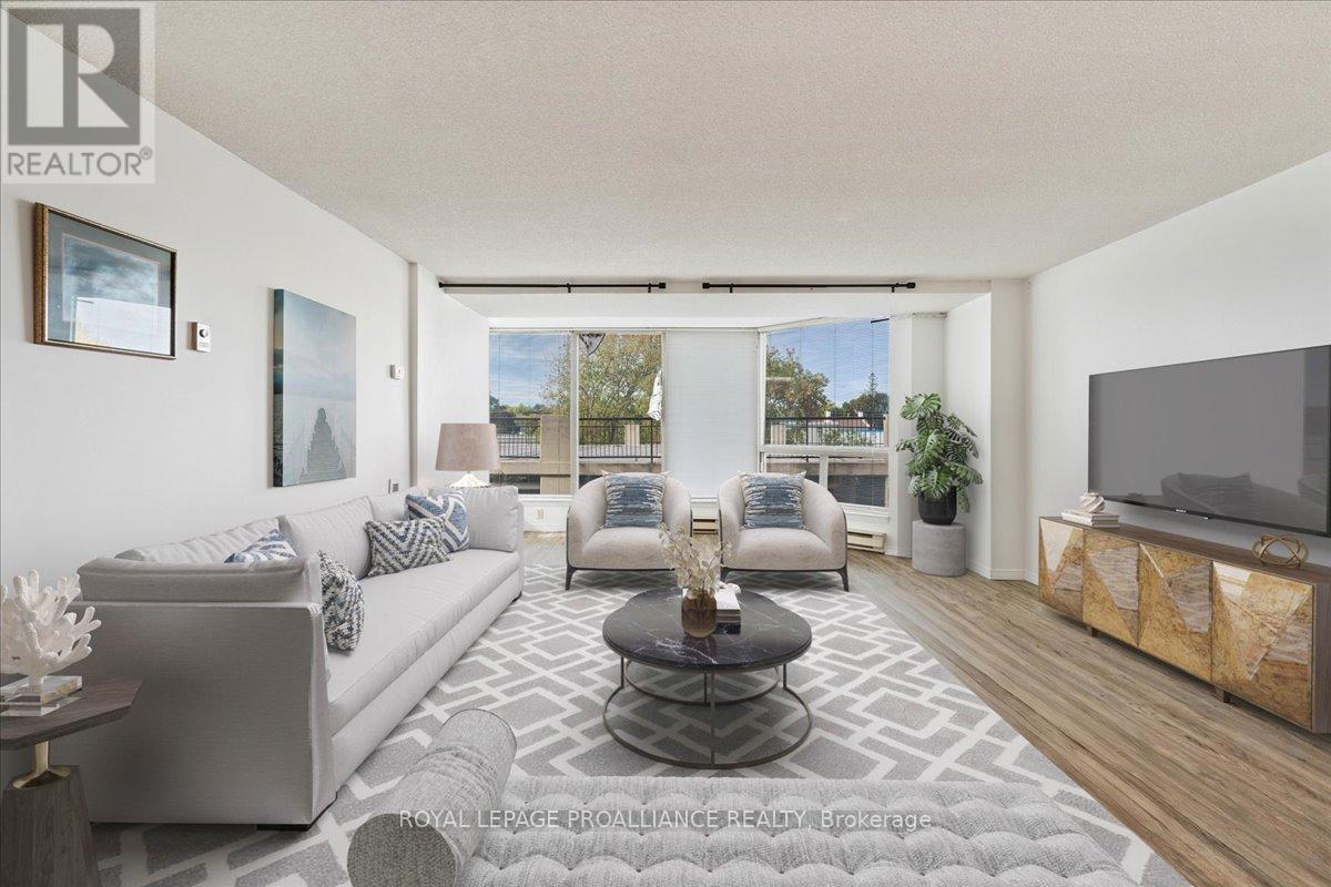 Welcome to Unit 201 - Downtown 2-Bedroom, 2-Bathroom Condo. Experience easy downtown living in this bright and spacious 2-bedroom, 2-bathroom condo. The open-concept kitchen and living area offer a comfortable and functional layout, ideal for both relaxing and entertaining. Generous room sizes, neutral finishes, and a well-maintained interior make this unit move-in ready. Enjoy the convenience of covered parking, on-floor laundry facilities, and direct access to the downtown walking trail, perfect for those who love an active lifestyle. Located just minutes from the Bay of Quinte, Highway 401, and the beautiful Prince Edward County-best know for its culinary scene, wineries, and charming small-town experiences. Immediate possession available. Convenient, and perfectly situated - This condo offers the best of downtown living! (id:64974)