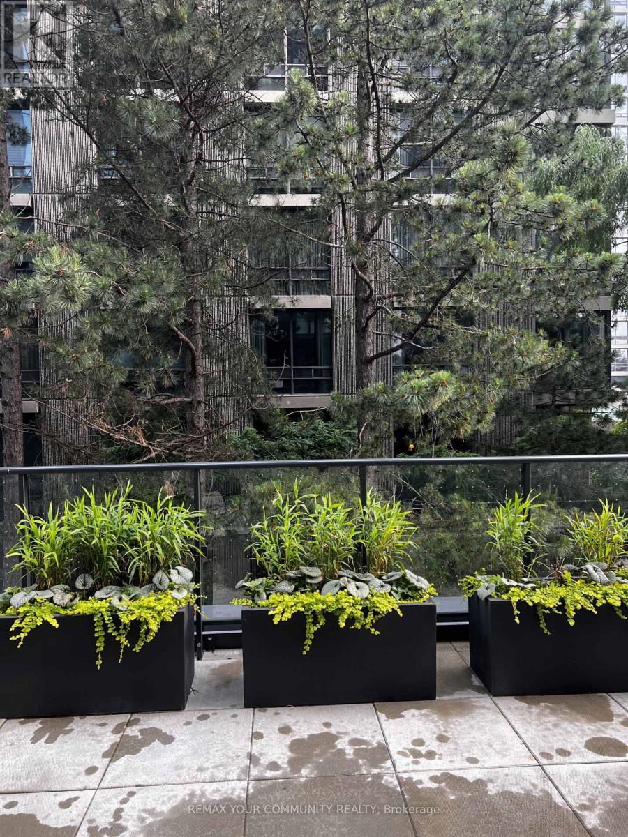 Rarely offered 1 + den, 2 bath suite at 609 Avenue Rd. with an exceptional over 200 sq.ft professionally landscaped private terrace with hose connection, offering true indoor outdoor living. Condo offers 11-ft ceilings, throughout adding volume and light rarely found in midtown 1+1 layouts. Den has sliding doors making a separate room for more privacy. Quiet suite faces away from Avenue Road with well insulated windows for a calm living environment. Includes corner parking (easy access) and locker. Steps to Cedarvale Ravine and the Mount Pleasant Cemetery Arboretum, plus Balfour Park and Churchill Park with skyline views. Rooftop terrace with panoramic city skyline views. Walk to St. Clair/Yonge, Davisville/Yonge, St. Clair/Vaughan, Yonge/Eglinton, Summerhill, and South Forest Hill Village. Outstanding recreation nearby including tennis courts, hockey rinks, and swimming pools at Upper Canada College, Brown Junior Public School, and Ramsden Park. Excellent transit access (Yonge & University Subway lines, St. Clair Streetcar), 2 bike rooms, and 4 nearby Bike Share Stations. Building Amenities include rooftop, gym, party room, media room, dog wash. Pet-friendly, non-smoking building. Close to major grocery options including Farm Boy and Loblaws with free parking. (id:64974)