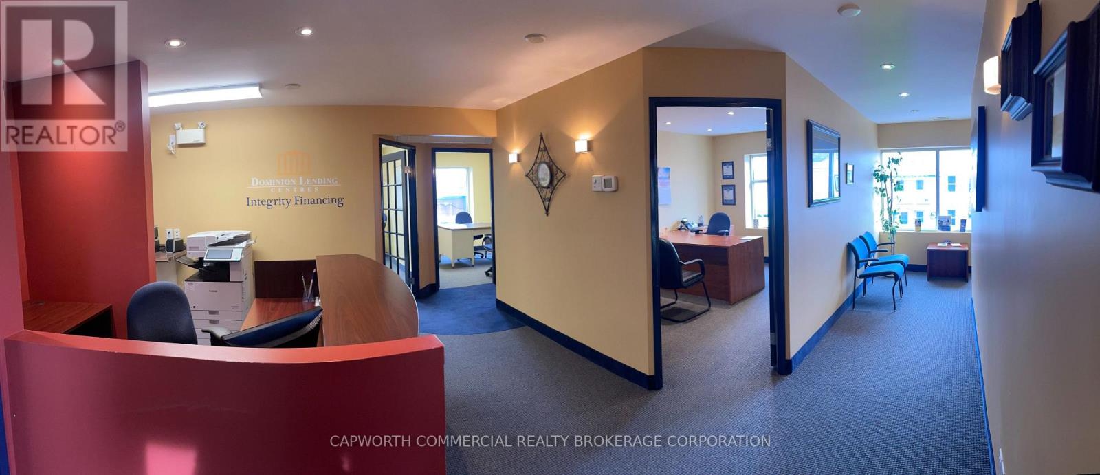High-traffic corner unit second floor location in the heart of Cornwalls main commercial corridor! This turn key office space offers closed office suites, a board room, a washroom, a lobby/waiting area and a kitchenette. Ideal for national retailers, local professional businesses, or service providers seeking exceptional visibility, ample parking space for clients and staff and low build-out/fit-up costs.Located at the intersection of Pitt Street and a busy cross street, this prominent corner unit benefits from: Excellent street exposure, large display windows, ample on-site and nearby parking and flexible configurations to suit your needs! Additional rent $14.86/sf for 2025. (id:64974)