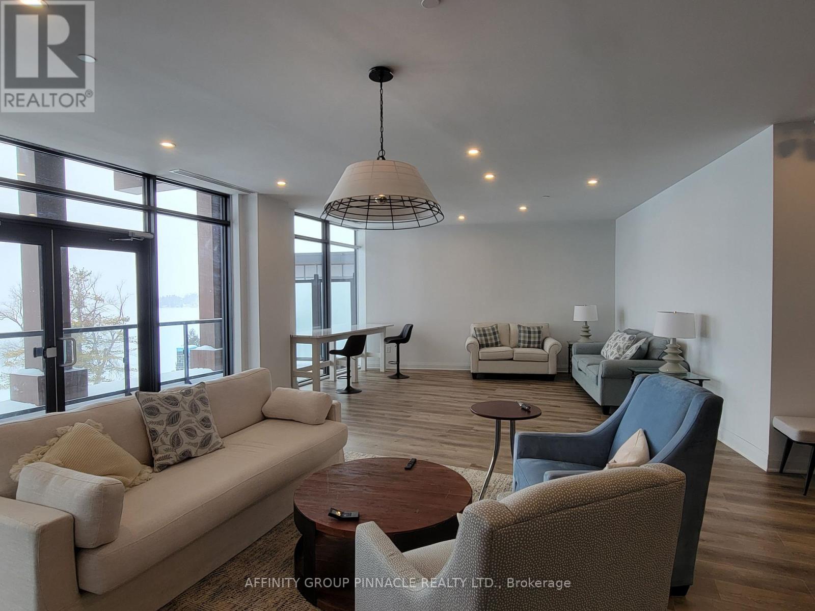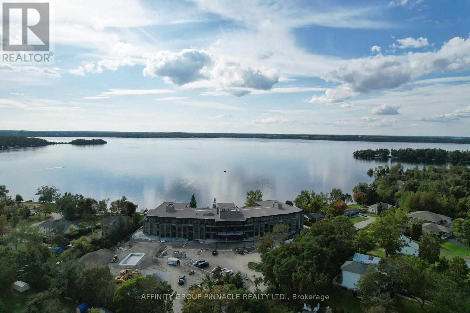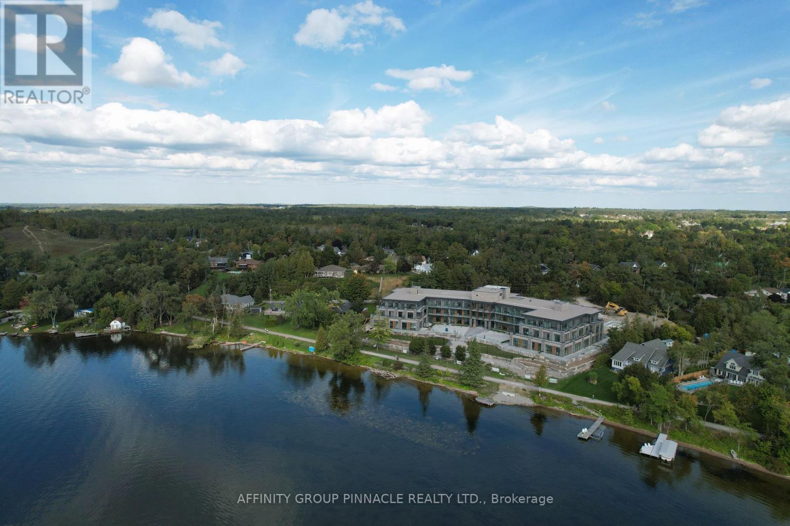 Truly the first of its kind, The Moorings on Cameron Lake has set the bar for luxury condominium living with all the charm and serenity of living on the water. Welcome to Unit 201, a two bedroom, two bath, 977sqft condo suite with 9ft ceilings and extensive windows, engineered hardwood & porcelain tile, stainless steel kitchenaid appliances (incl. wall-mounted oven and microwave/air fryer), quarts countertops, in-suite laundry (whirlpool washer/dryer). Primary bedroom features luxury 3-pc ensuite, walk-in closet, and walk-out to covered balcony (equipped with natural gas line for BBQ). Suit 201 also offers TWO secure side-by-side underground parking spots and private locker. Building amenities are second-to-none. The third-floor owners lounge (bookable for private events!) overlooks the lake through wall-to-wall windows, and is fully equipped with a caterer's kitchen, extensive dining seating, cozy fireside lounge, high-top tables, and in-house theater room with premium cinema seating. The second-floor fitness center is equipped with cardio and weight machines, change rooms, and a dedicated yoga/pilates room with an attached cedar sauna. Outside, owners enjoy a heated pool and spa, tennis/pickle ball courts, sprawling lakeside courtyard, and extensive waterfront docking and swimming platform. Condo fees include high-speed internet and natural gas. Boat slip available for purchase. Nestled on the shores of Cameron Lake, featuring blazing sunsets and wide lake views, the Moorings offers it's residents a luxe and active lifestyle nestled in the heart of Fenelon Falls, Ontario. Explore miles of biking, hiking, snowmobiling, and ATVing on the Victoria Rail Trail, boat the world famous Trent Severn Waterway, and walk to dinner, shopping, and entertainment in historic and charming Fenelon Falls. With robust and modern condo amenities set amongst the lush natural backdrop characteristic of the Kawarthas, your low-maintenance, richest, fullest life awaits. (id:64974)