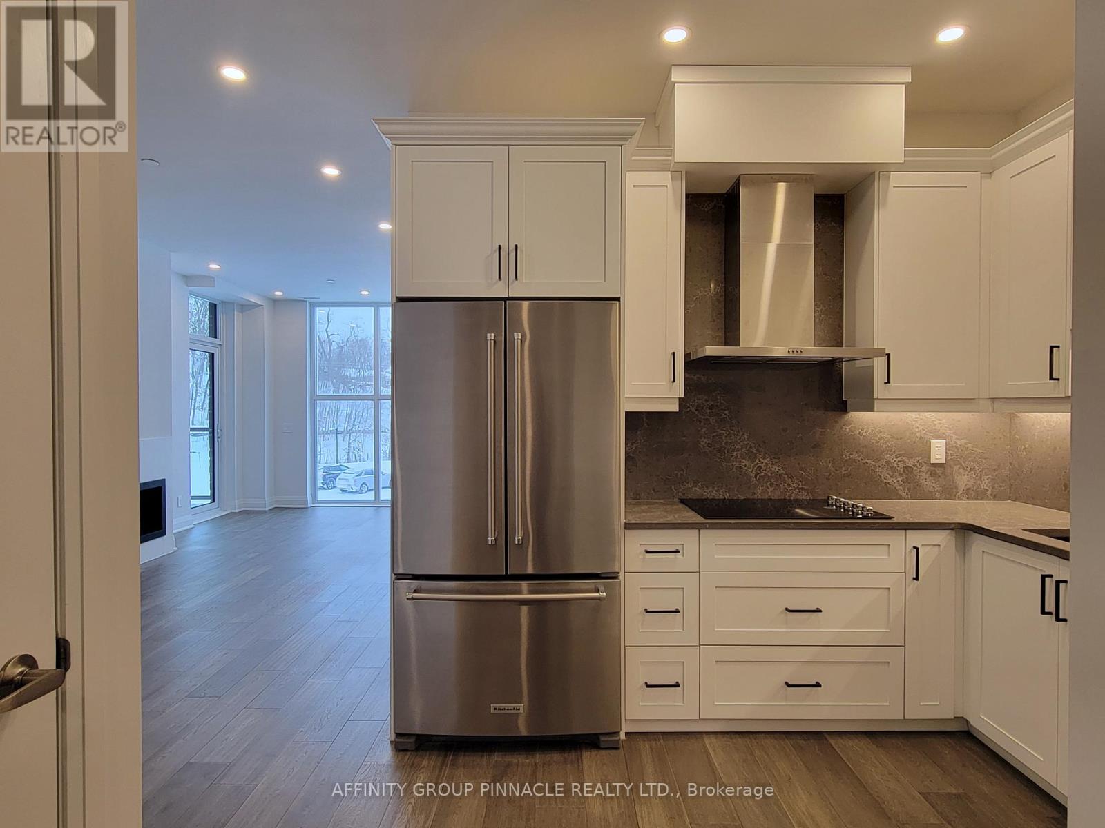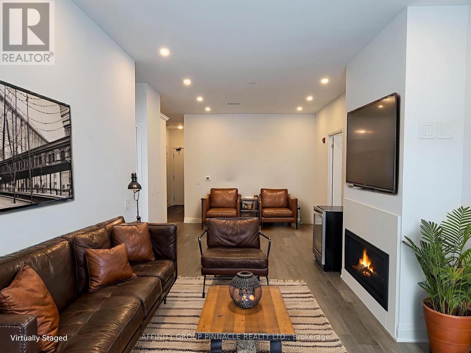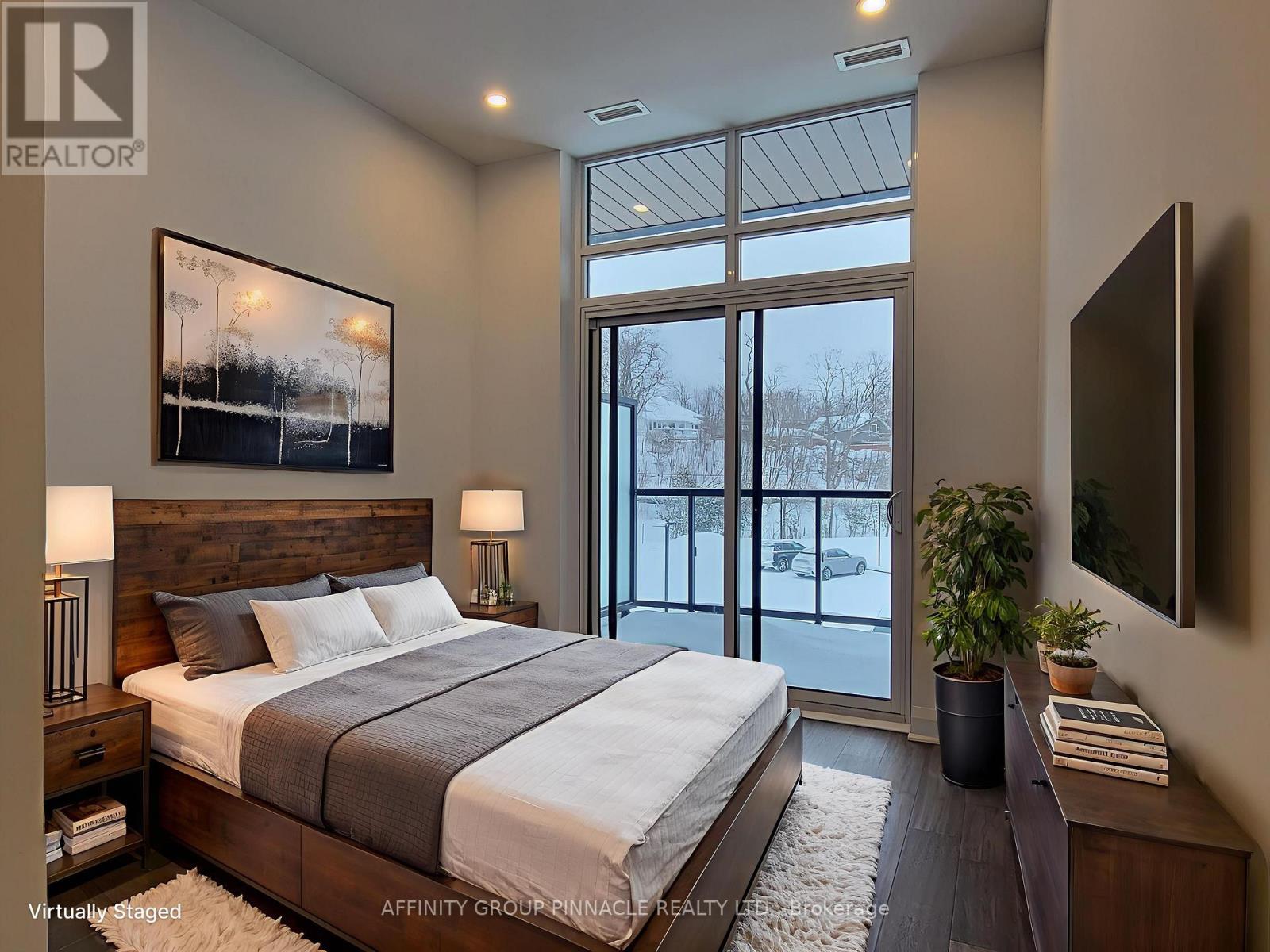 Truly the first of its kind, The Moorings on Cameron Lake has set the bar for luxury condominium living with all the charm and serenity of living on the water. Welcome to Unit 201, a two bedroom, two bath, 977sqft condo suite with 9ft ceilings and extensive windows, engineered hardwood & porcelain tile, stainless steel kitchenaid appliances (incl. wall-mounted oven and microwave/air fryer), quarts countertops, in-suite laundry (whirlpool washer/dryer). Primary bedroom features luxury 3-pc ensuite, walk-in closet, and walk-out to covered balcony (equipped with natural gas line for BBQ). Suit 201 also offers TWO secure side-by-side underground parking spots and private locker. Building amenities are second-to-none. The third-floor owners lounge (bookable for private events!) overlooks the lake through wall-to-wall windows, and is fully equipped with a caterer's kitchen, extensive dining seating, cozy fireside lounge, high-top tables, and in-house theater room with premium cinema seating. The second-floor fitness center is equipped with cardio and weight machines, change rooms, and a dedicated yoga/pilates room with an attached cedar sauna. Outside, owners enjoy a heated pool and spa, tennis/pickle ball courts, sprawling lakeside courtyard, and extensive waterfront docking and swimming platform. Condo fees include high-speed internet and natural gas. Boat slip available for purchase. Nestled on the shores of Cameron Lake, featuring blazing sunsets and wide lake views, the Moorings offers it's residents a luxe and active lifestyle nestled in the heart of Fenelon Falls, Ontario. Explore miles of biking, hiking, snowmobiling, and ATVing on the Victoria Rail Trail, boat the world famous Trent Severn Waterway, and walk to dinner, shopping, and entertainment in historic and charming Fenelon Falls. With robust and modern condo amenities set amongst the lush natural backdrop characteristic of the Kawarthas, your low-maintenance, richest, fullest life awaits. (id:64974)