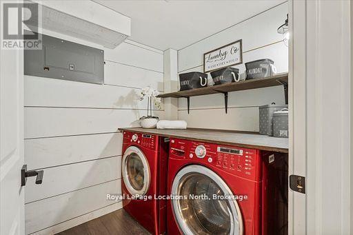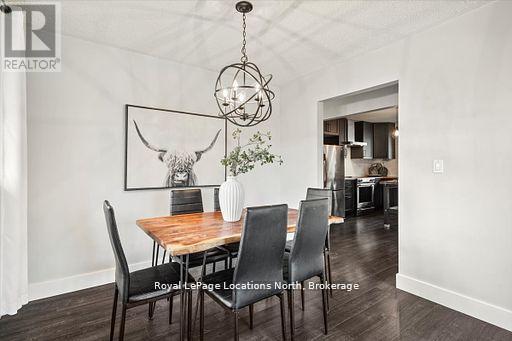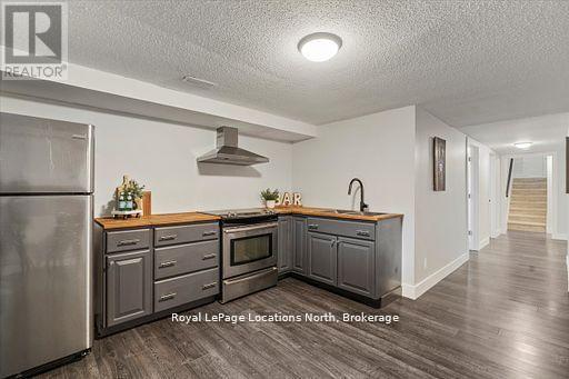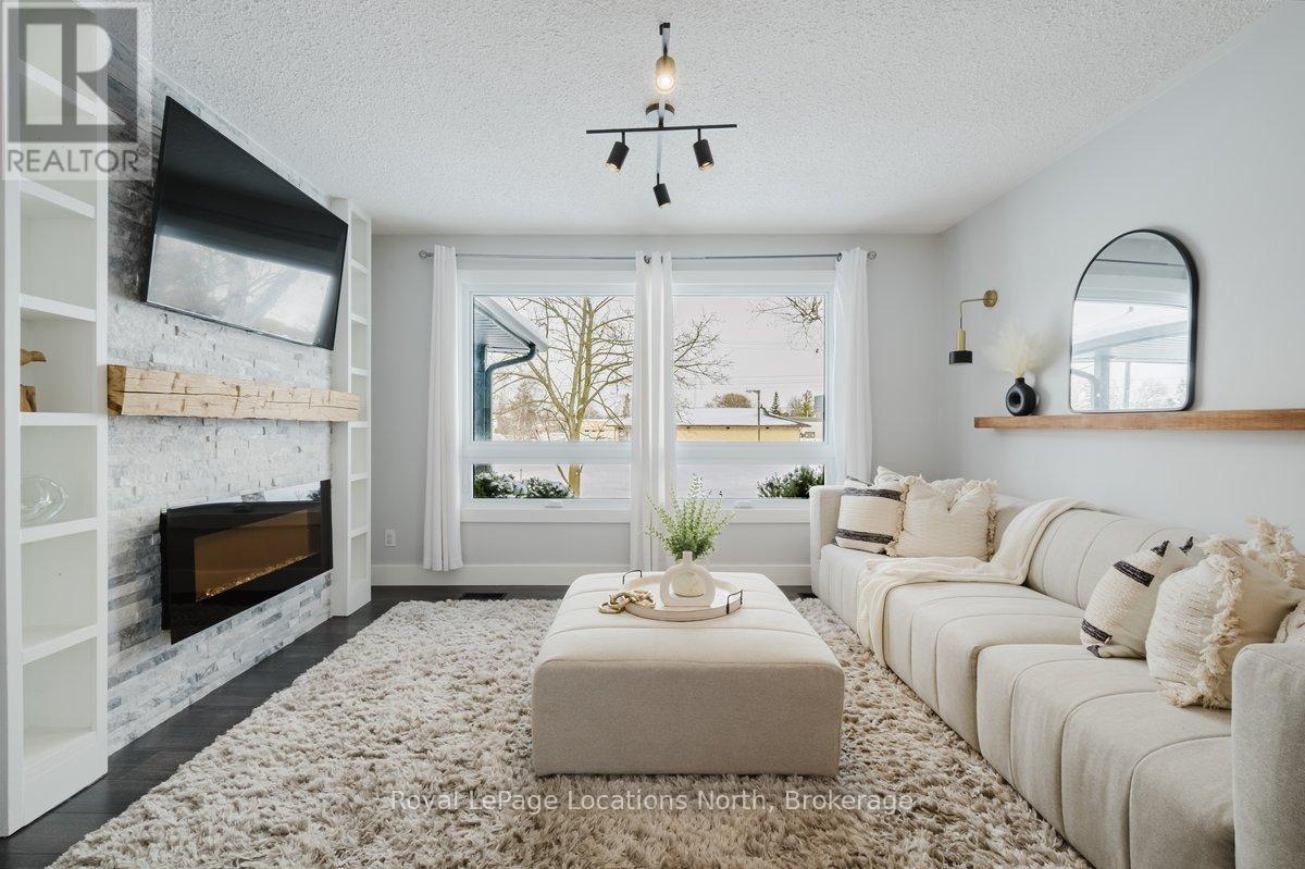 Located in the heart of downtown Stayner and within walking distance to shops, dining, and amenities, this raised bungalow offers flexibility that's hard to find. The home sits on a deep 217-foot lot with mature trees, providing a private backyard and outdoor space rarely available in such a central location. A large wraparound deck off the kitchen overlooks the yard and is perfect for entertaining or relaxing outdoors.The main floor includes 3 bedrooms, a full 4-piece bathroom, a bright living room with fireplace, and a kitchen with stainless steel appliances just off the dining area.The fully finished lower level is where this home truly shines, featuring a spacious rec room, gas fireplace, second full kitchen with bar seating, an additional bedroom, full bathroom, and office nook. This layout offers excellent potential for multi-generational living, in-law accommodation, or added flexibility for extended family and guests. (id:64974)