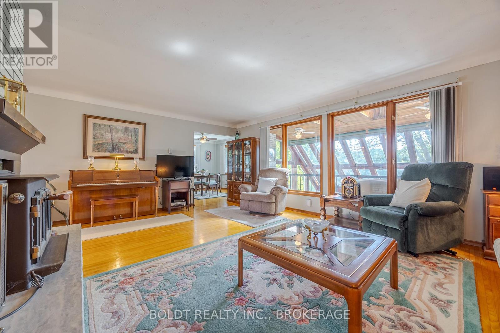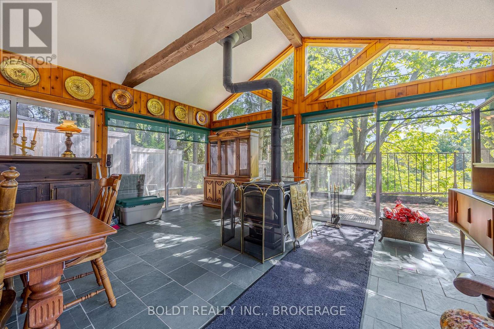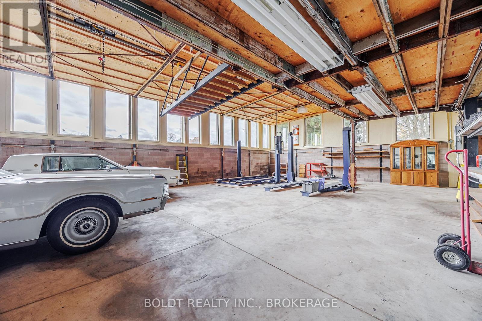 Welcome to 2010 Hansler Street - A Truly One-of-a-Kind Estate. Set on over 4 breathtaking acres and backing onto Saint Johns Conservation, this extraordinary property is unlike anything you've seen. The large brick bungalow features 3 spacious bedrooms & 3 well-appointed bathrooms on the main floor. The inviting living room boasts a remarkable wood-burning fireplace, mirrored in the expansive lower level. The eat-in kitchen is both functional and welcoming, w/ direct access to a convenient mudroom that leads to the double car garage and the backyard. A formal dining room provides access to a second-level addition: a massive, enclosed balcony w/ panoramic views of the property, open to the sunlit lower-level sunroom. The lower level is an entertainers dream. It includes a large great room w/ multiple gathering spaces, ideal for recreation, relaxation, or a pool table. There's a second dining area, several lounging zones, and 3 additional sinks, one in the bar area, another in a flexible-use office or craft room, and one more off of the 2nd addition/bonus room. This bonus space features glass doors to the backyard, a wood-burning stove, and has long been a hub for memorable holidays and family celebrations. Two extra bathrooms and a games room or possible guest bedroom, round out this expansive level. The Crown Jewel: A 7,600 Sq Ft Heated Workshop. The property's standout feature is a massive, heated 7,600 sq ft shop/garage, divided into multiple sections with various levels, gates, extensive storage, and two office spaces. Whether for business, hobby, or recreational use, the potential is limitless. Two private driveways offer seamless access - one leading to the home and the other to the rear shop, providing direct vehicle access to all areas of the property. Parking is virtually unlimited. Cherished by the same family for over 45 years, 2010 Hansler Street is more than a home - it's a legacy, a retreat, and a place where lifelong memories are made. (id:64974)