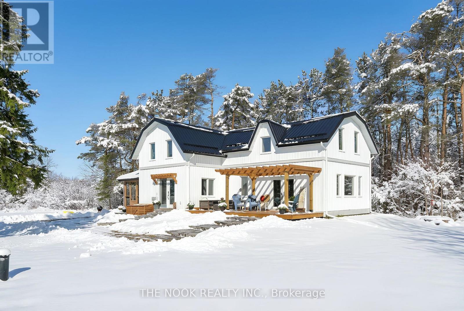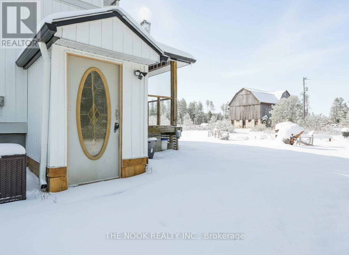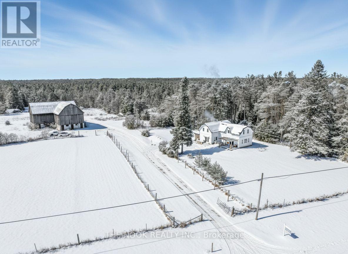 Country charm meets modern luxury at 2011 County Road 121 in the heart of the Kawarthas. Set on 20.5 acres with a mix of forest and open pasture, this fully reimagined century home blends rural living with every modern convenience. Extensively renovated inside and out in 2024/2025, the home showcases red pine wood floors, shiplap ceilings, custom built-ins, a new kitchen with quartz counters, farmhouse sink, and walk-in pantry, plus spa-like bathrooms and a screened-in porch. Nearly everything is new windows, doors, plumbing, electrical, insulation, siding, roof, heat pump, drilled well, and water system offering peace of mind for years to come. The layout is bright and spacious, with a main floor bedroom or office, upper-level laundry, and seamless indoor-outdoor flow to a large deck and pergola.The property includes a new bunkie, a classic bank barn in excellent shape, and room for hobby farming, recreation, or future dreams. Just 10 minutes to Fenelon Falls and 30 minutes to Lindsay, with the Burnt River right behind for boating, swimming, and connecting to the Trent Severn. Starlink internet makes working from home effortless, while nearby ATV and OFSC snowmobile trails ensure year-round adventure. A rare opportunity to enjoy the Kawarthas in a move-in ready, modernized homestead with timeless character. (id:64974)