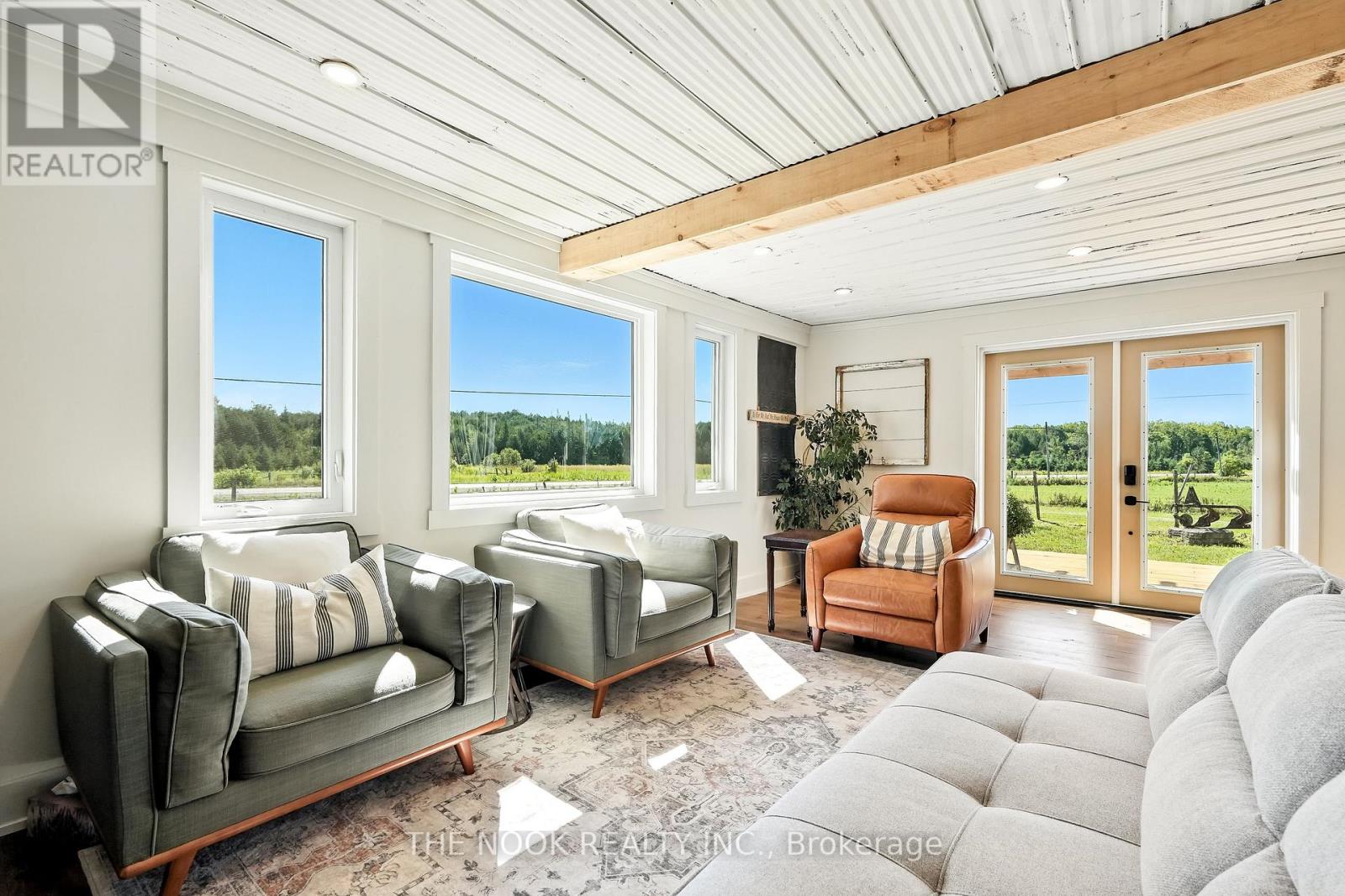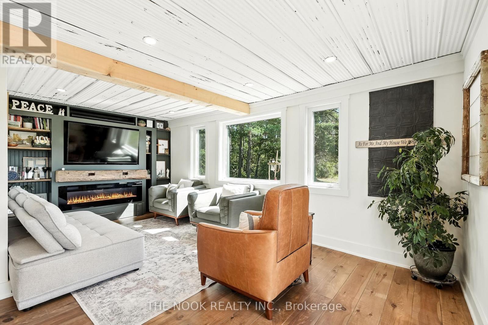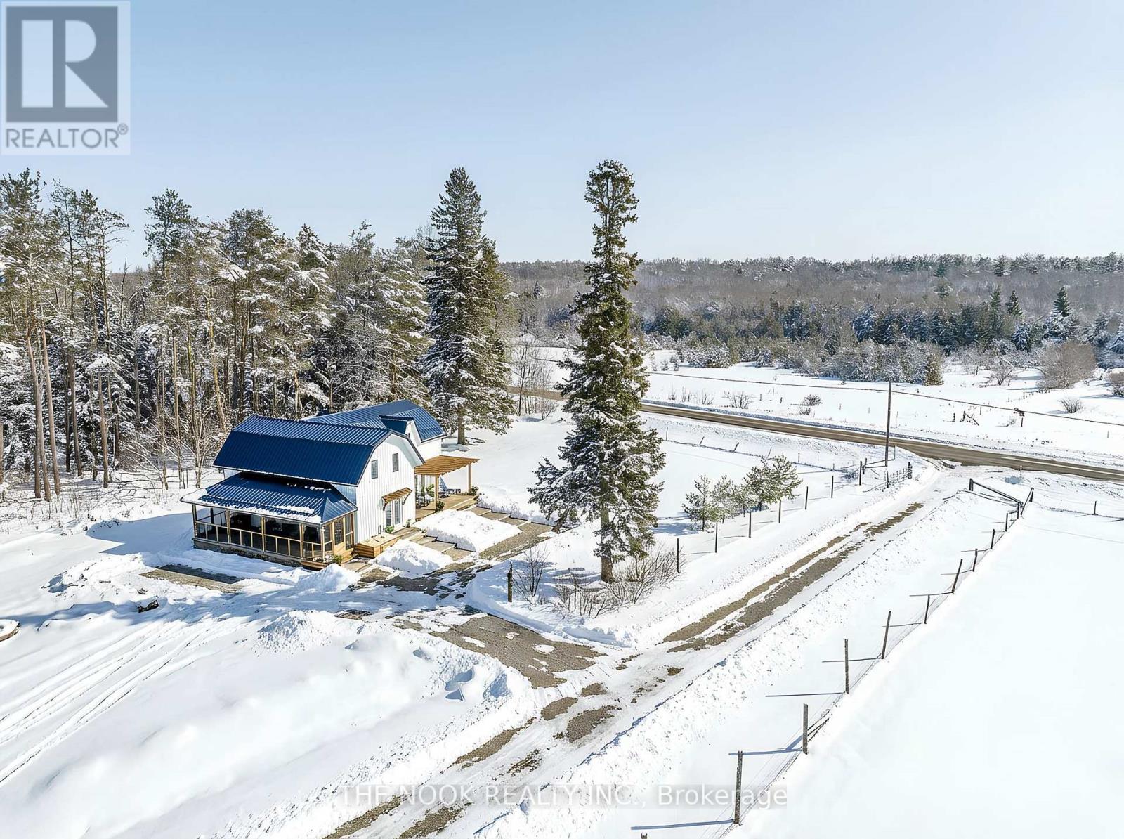 Country charm meets modern luxury at 2011 County Road 121 in the heart of the Kawarthas. Set on 20.5 acres with a mix of forest and open pasture, this fully reimagined century home blends rural living with every modern convenience. Extensively renovated inside and out in 2024/2025, the home showcases red pine wood floors, shiplap ceilings, custom built-ins, a new kitchen with quartz counters, farmhouse sink, and walk-in pantry, plus spa-like bathrooms and a screened-in porch. Nearly everything is new windows, doors, plumbing, electrical, insulation, siding, roof, heat pump, drilled well, and water system offering peace of mind for years to come. The layout is bright and spacious, with a main floor bedroom or office, upper-level laundry, and seamless indoor-outdoor flow to a large deck and pergola.The property includes a new bunkie, a classic bank barn in excellent shape, and room for hobby farming, recreation, or future dreams. Just 10 minutes to Fenelon Falls and 30 minutes to Lindsay, with the Burnt River right behind for boating, swimming, and connecting to the Trent Severn. Starlink internet makes working from home effortless, while nearby ATV and OFSC snowmobile trails ensure year-round adventure. A rare opportunity to enjoy the Kawarthas in a move-in ready, modernized homestead with timeless character. (id:64974)