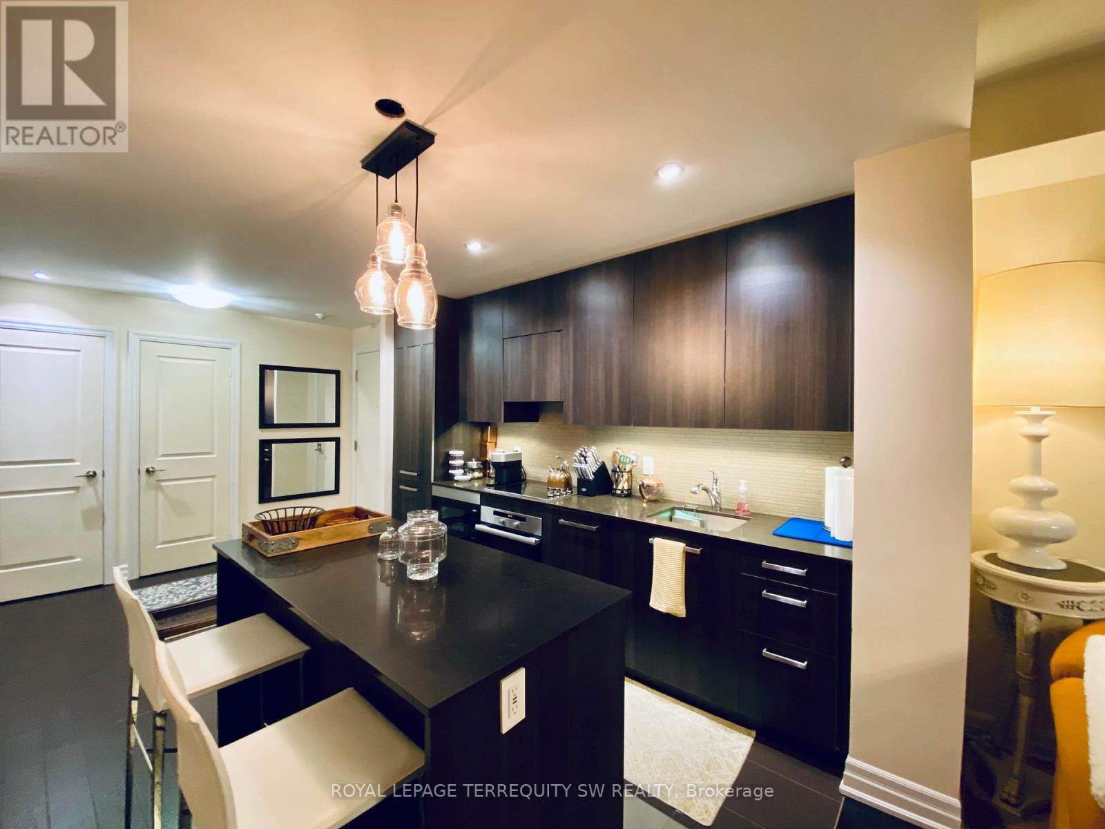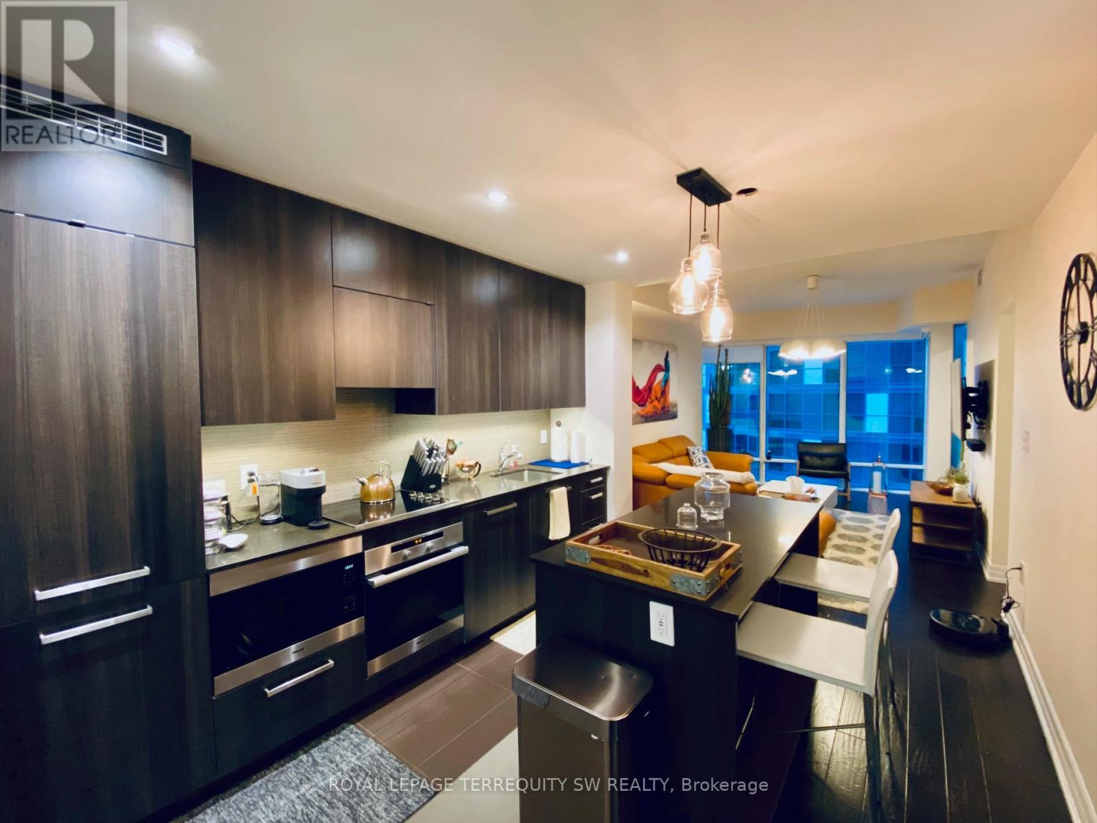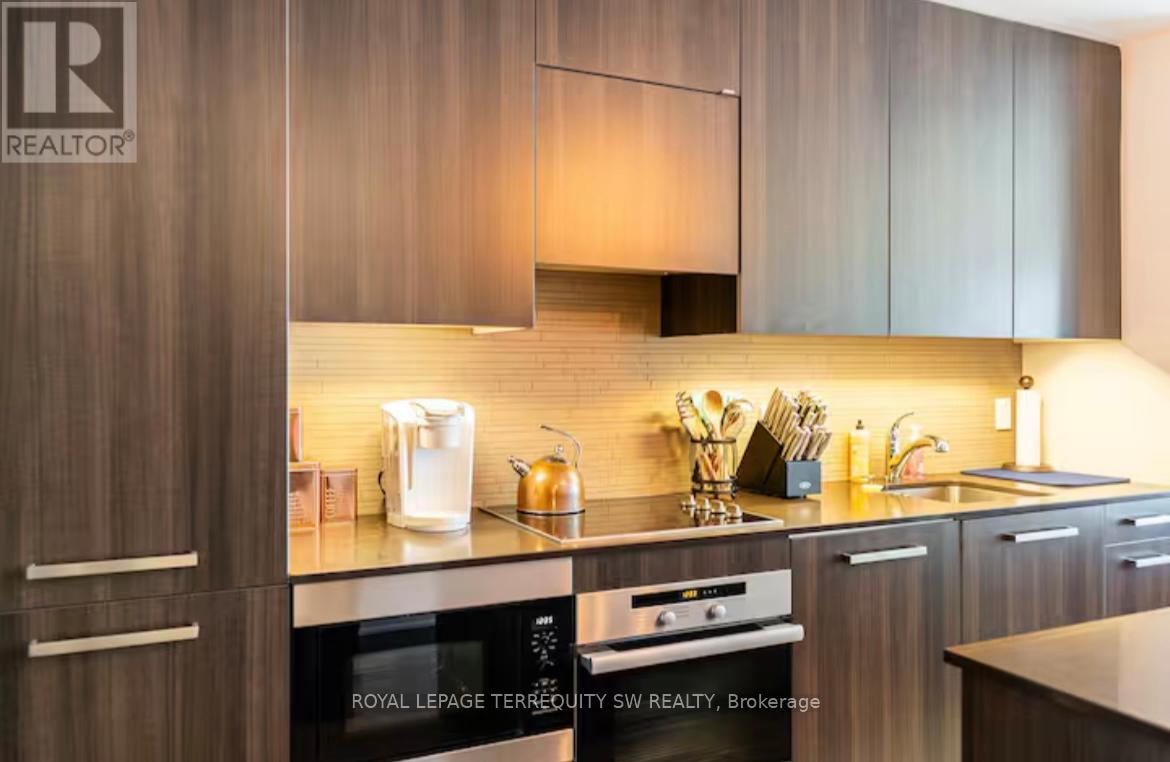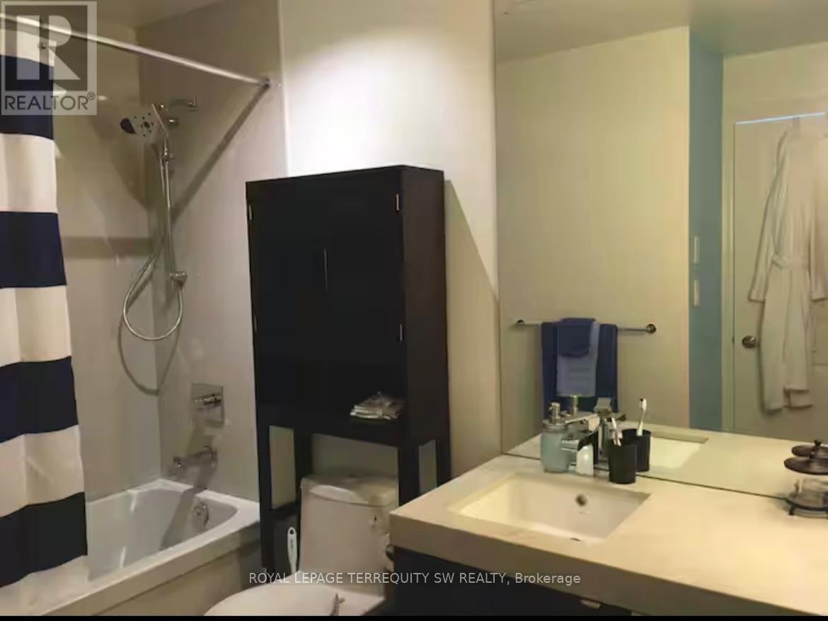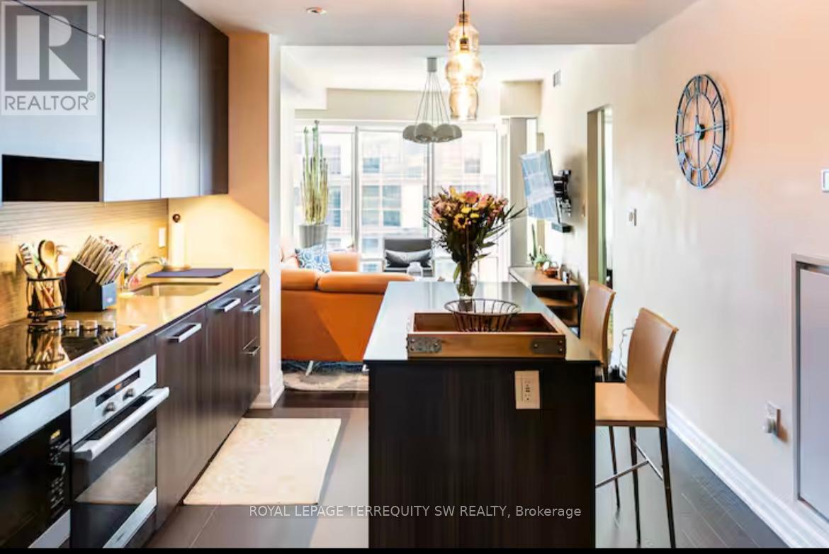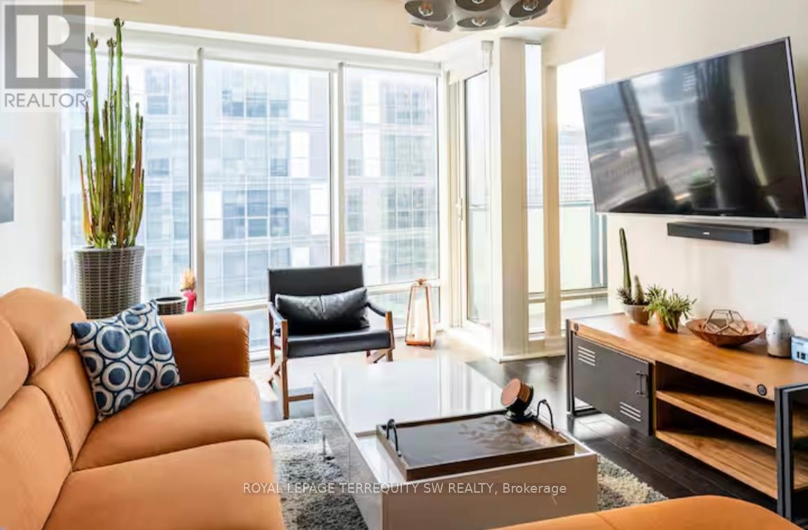 Modern, Luxurious & Fully Furnished condo in heart of downtown Toronto at L-Tower. Steps away from Union Station, St. Lawrence Market, the Waterfront and Berczy Park you are walking distance from everything at this location. Surrounded by restaurants, pubs, grocery, pharmacies & coffee shops on all sides you will be spoiled for choice on where to go next. Impossible to be bored with TIFF, the Flat Iron, Rogers Centre minutes away! This luxury building and unit is perfect for the working professional in town on business. The space has a queen size bed, two full baths, full kitchen and a den that can be used for a workspace. The condo has been equipped to be a home away from home with all the everyday necessities you will need. This includes a variety of coffee and tea, cleaning supplies, basic toiletries and cleaning supplies. There is a Nespresso machine & Keurig with coffee and hot chocolate pods. Ensuite washer and dryer. A balcony with a great view. Lots of plugs throughout the condo that also have USB ports. Lights have dimmers on them. The bed has a mattress pad than can be taken off at your comfort and convenience for a firmer or softer nights sleep. The coffee table top also pulls up to meet you at chest level to eat or work on. A full gym with a yoga room, sauna and pool available on second floor. The pool has a skylight and loungers so you feel like you're outdoors! Though we're in the heart of downtown it is exceptionally quiet in the unit **EXTRAS** Fully Furnished with Cleaning Service Available(WiFi + Hydro + Parking/Locker Negotiable) (id:64974)