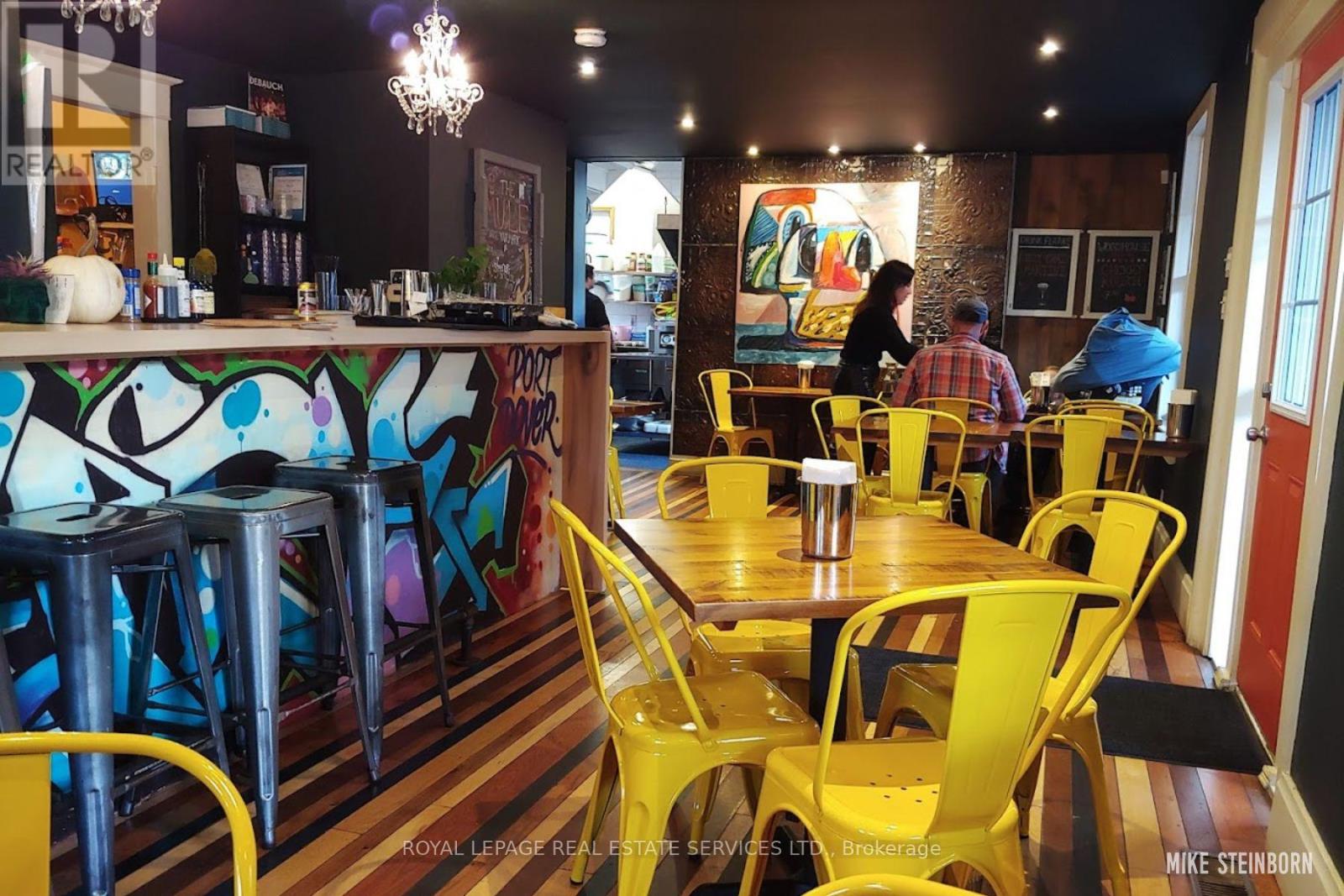 Prime restaurant for lease located in the vibrant heart of downtown Port Dover, surrounded by popular restaurants, shops, and local attractions, this fully equipped and operational restaurant offers a rare opportunity in one of the town's most dynamic locations. Inside, you'll find two washrooms, a large bar with a back prep area, and seating for 30 guests. Outside, a spacious patio with a covered bar and walk-in cooler accommodates up to 100 patrons - perfect for summer service and events. The adaptable layout suits a wide range of dining concepts, with many chattels and furnishings included. Ample on-site parking and unbeatable visibility across from Powell Park make this a standout spot for your next restaurant venture. Incredible value at just $5,000 per month, inclusive of TMI. Property can also be purchased. (id:64974)