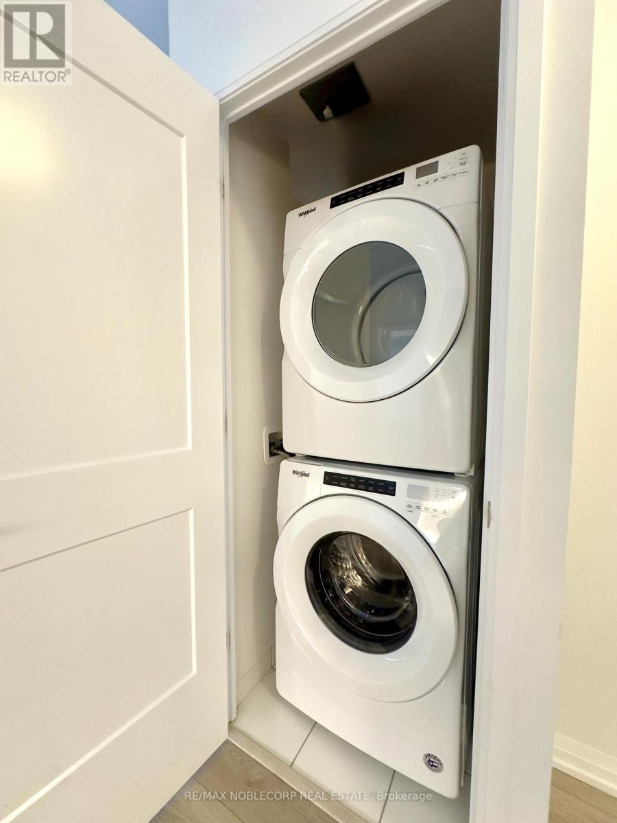 This bright and modern 2-bedroom, 2-bathroom suite offers 649 sq.ft. of thoughtfully designed living space plus a spacious 170 sq.ft. balcony, perfect for enjoying city views. The open-concept layout is filled with natural light from large windows and features a stylish kitchen complete with quartz countertops and stainless steel appliances. Unbeatable location just steps to the VMC Subway and Bus Terminal, providing quick access to downtown Toronto and beyond. Minutes to Highways 400 & 407, shopping, grocery stores, restaurants, York University, and Vaughan Mills Mall. Enjoy the convenience and security of 24/7 concierge service, plus 1 parking space and 1 locker included. Amenities include a Gym, Sauna, Games Room, Party Room & more! (id:64974)