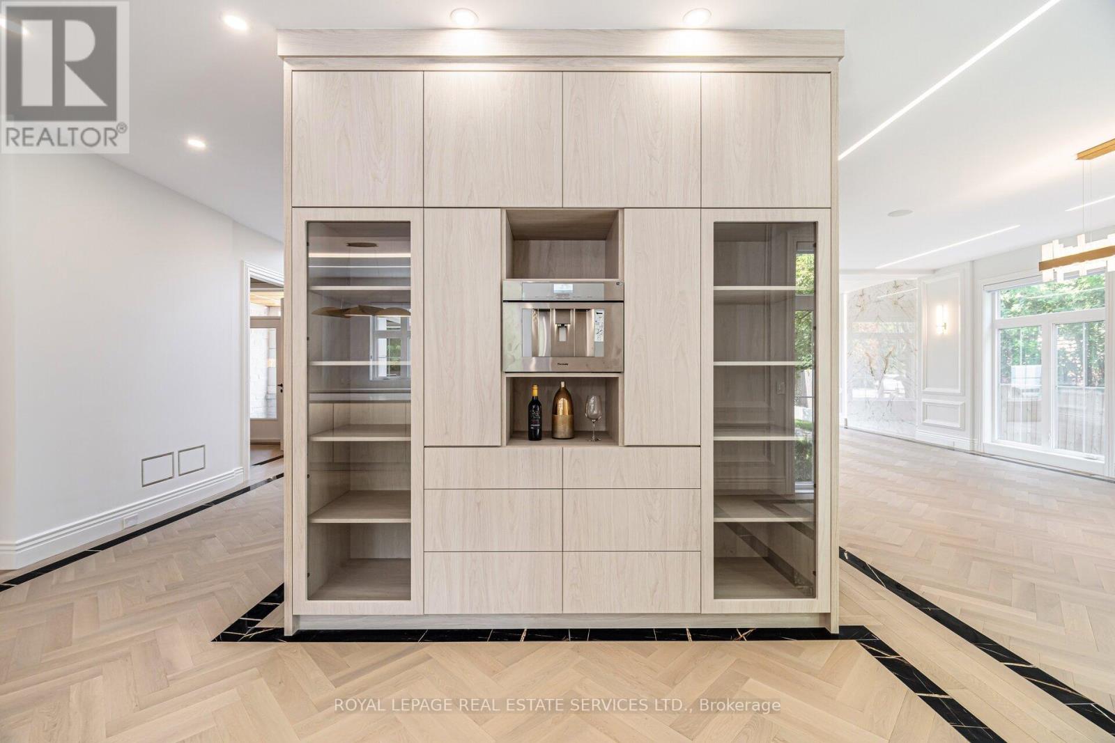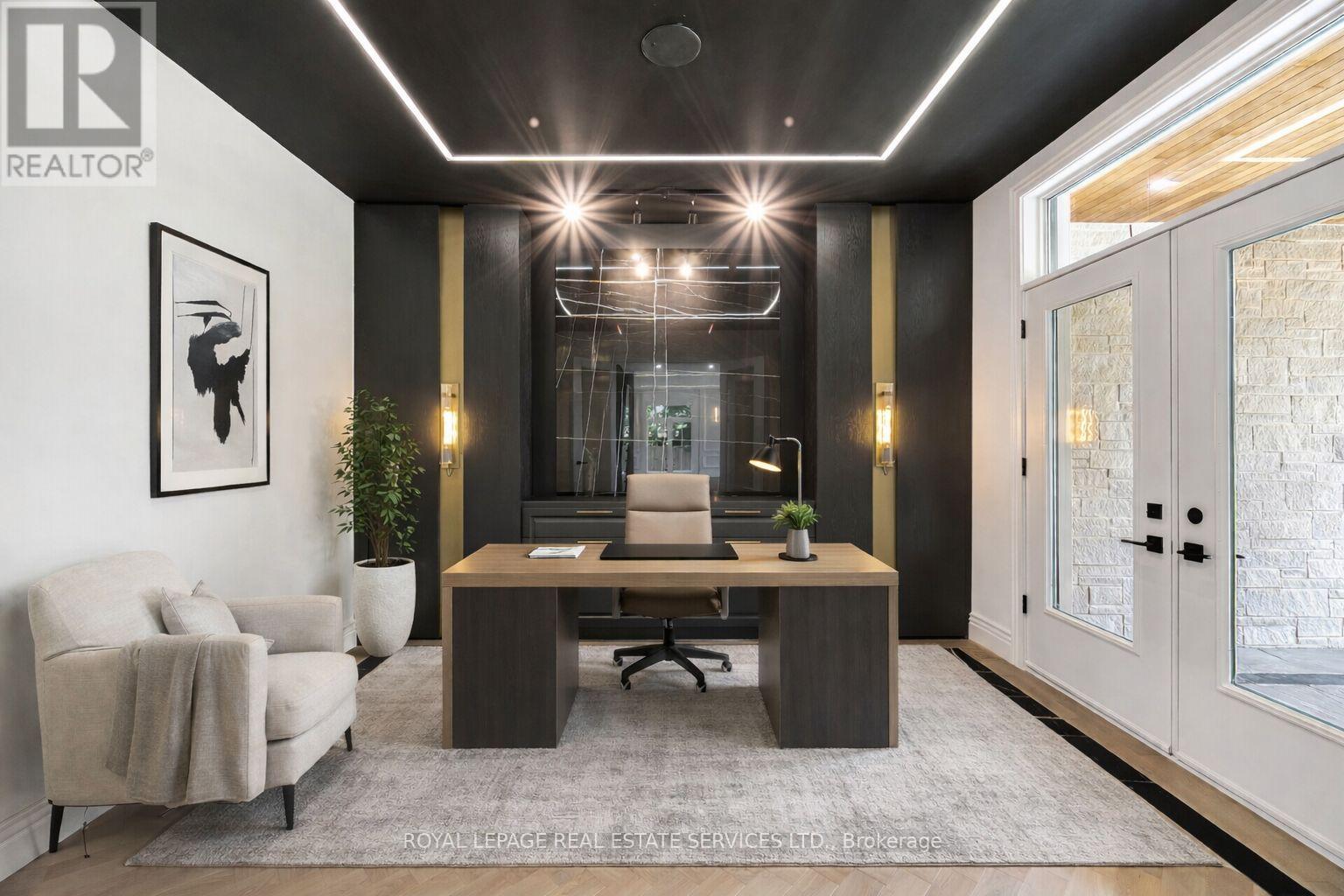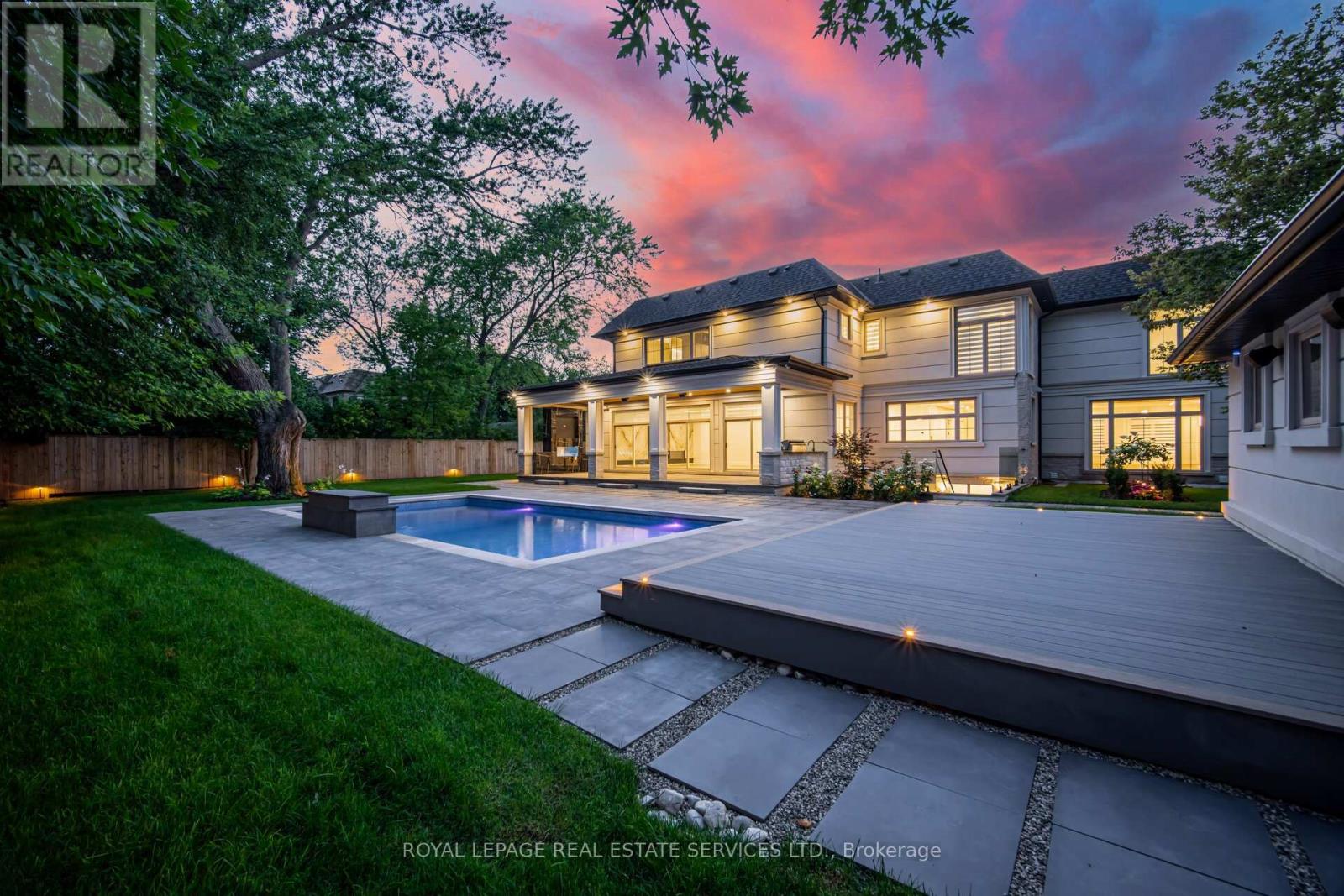 Set on a commanding 112.5'x199.5' lot just steps from the lake, this custom modern-traditional estate offers nearly 11,000SF of finished living space across three levels. A long private drive with parking for up to 12 cars and oversized 3-car garage create a striking arrival, complemented by stone and stucco architecture, soffit lighting, and professionally landscaped grounds. A dramatic double-height foyer introduces the home's scale, anchored by an open-riser staircase with smoked glass panels and integrated lighting. Principal rooms feature tile inlaid borders, herringbone engineered hardwood flooring, oversized windows, and sleek architectural lighting. The chef's kitchen is centred around a 10' quartz island with premium Thermador appliances, bespoke cabinetry, and a dedicated coffee station, flowing seamlessly into the family room with a modern fireplace feature wall, built-in media cabinetry, and multiple walkouts to a covered portico designed for four-season entertaining. A private main-floor office with double French doors and its own exterior entry offers exceptional work-from-home flexibility. Upstairs, four bedroom suites include a luxurious primary retreat with dual walk-in closets and a spa-inspired ensuite featuring a steam shower, freestanding tub, wall-mounted fixtures, and heated floor. The walk-up lower level is designed for lifestyle living with radiant in-floor heating, theatre room, wet bar, glass-enclosed gym, guest suite, pet spa, and extensive storage. Outdoor living is elevated with a rectangular pool and water feature, large-format stone terraces, composite sun deck, covered outdoor fireplace wall with TV rough-in, built-in BBQ station, and pool-house. Smart home technology, multi-zone audio, dual HVAC systems, and security surveillance complete this exceptional Lakeshore Road offering near parks, trails, and Bronte amenities. An outstanding blend of architectural presence, scale, and resort-style living! (some images have virtual staging) (id:64974)