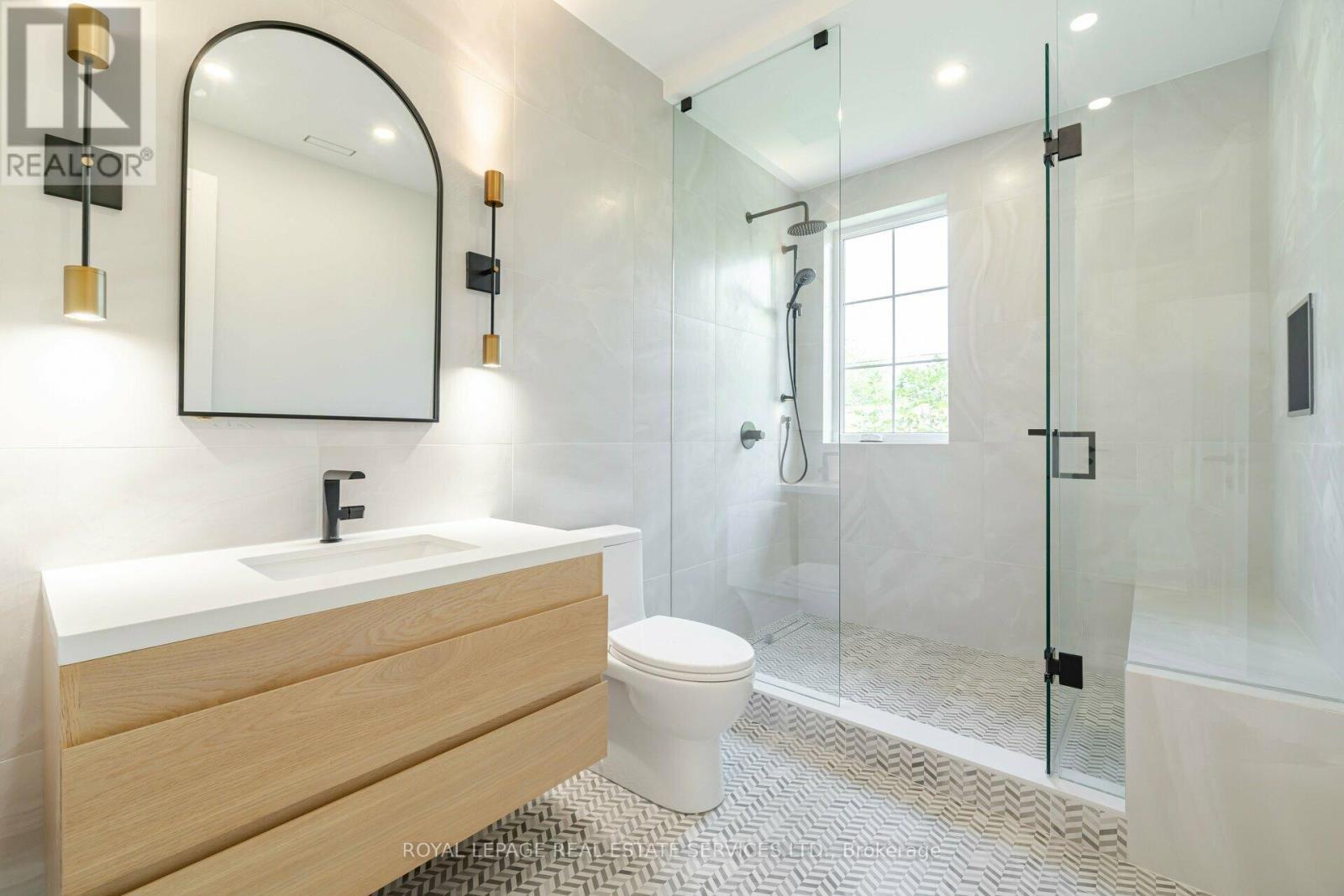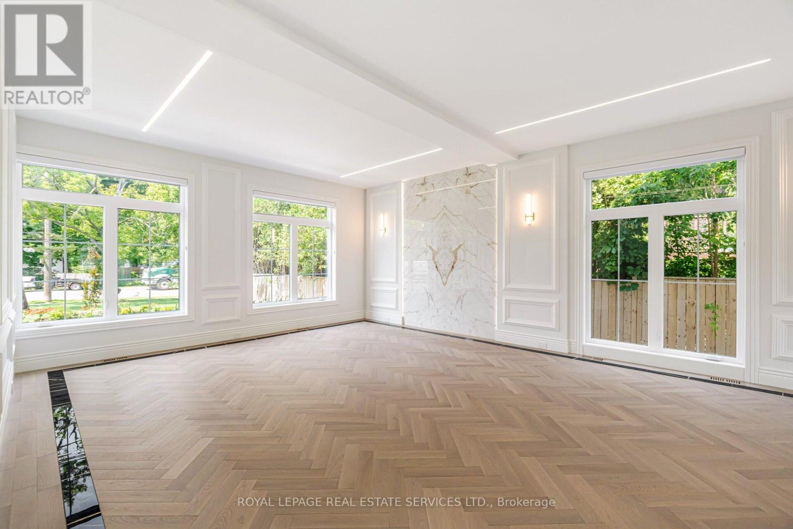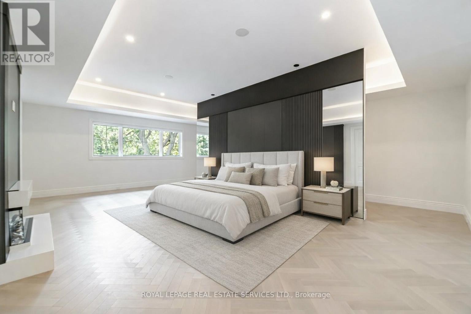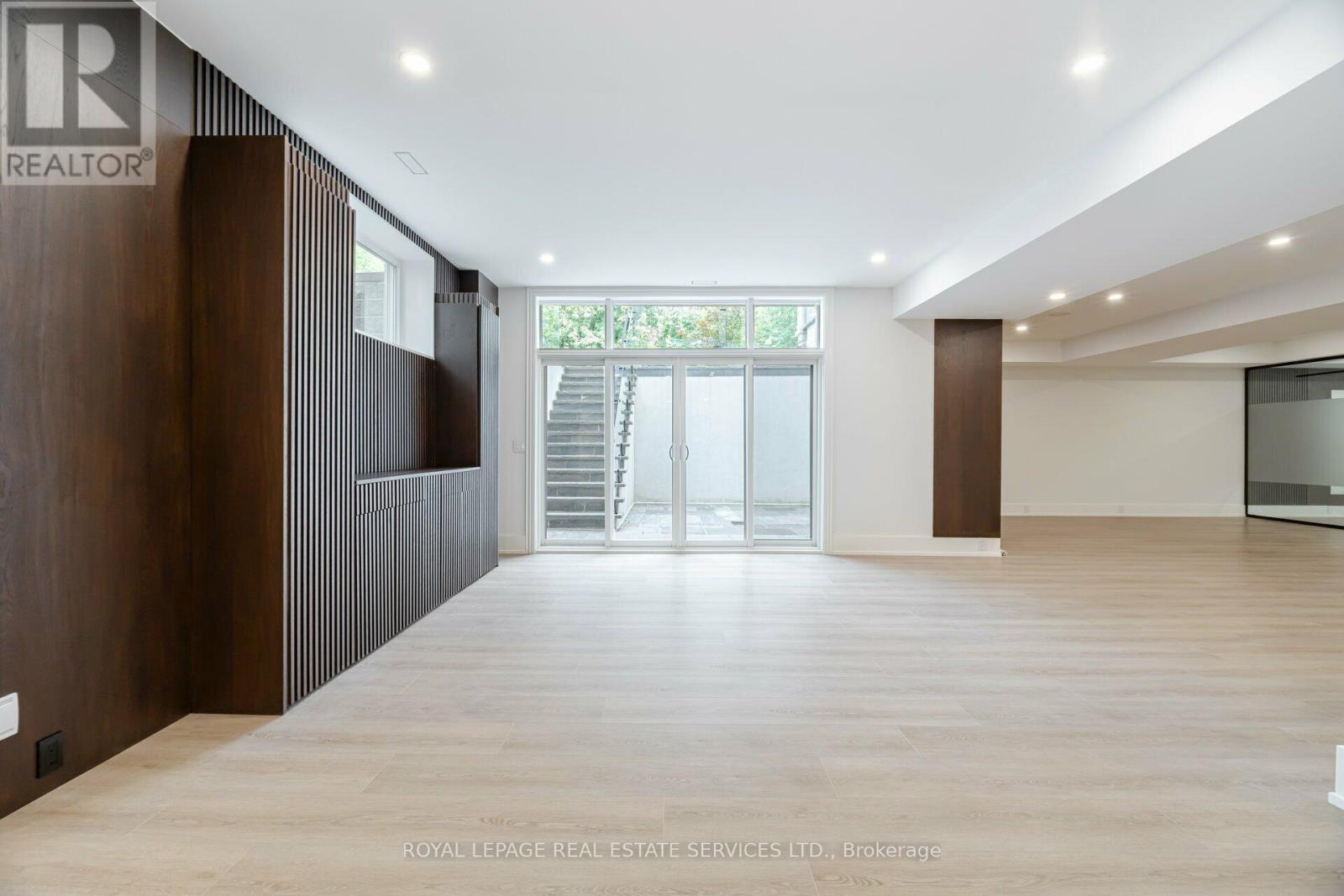 Set on a commanding 112.5'x199.5' lot just steps from the lake, this custom modern-traditional estate offers nearly 11,000SF of finished living space across three levels. A long private drive with parking for up to 12 cars and oversized 3-car garage create a striking arrival, complemented by stone and stucco architecture, soffit lighting, and professionally landscaped grounds. A dramatic double-height foyer introduces the home's scale, anchored by an open-riser staircase with smoked glass panels and integrated lighting. Principal rooms feature tile inlaid borders, herringbone engineered hardwood flooring, oversized windows, and sleek architectural lighting. The chef's kitchen is centred around a 10' quartz island with premium Thermador appliances, bespoke cabinetry, and a dedicated coffee station, flowing seamlessly into the family room with a modern fireplace feature wall, built-in media cabinetry, and multiple walkouts to a covered portico designed for four-season entertaining. A private main-floor office with double French doors and its own exterior entry offers exceptional work-from-home flexibility. Upstairs, four bedroom suites include a luxurious primary retreat with dual walk-in closets and a spa-inspired ensuite featuring a steam shower, freestanding tub, wall-mounted fixtures, and heated floor. The walk-up lower level is designed for lifestyle living with radiant in-floor heating, theatre room, wet bar, glass-enclosed gym, guest suite, pet spa, and extensive storage. Outdoor living is elevated with a rectangular pool and water feature, large-format stone terraces, composite sun deck, covered outdoor fireplace wall with TV rough-in, built-in BBQ station, and pool-house. Smart home technology, multi-zone audio, dual HVAC systems, and security surveillance complete this exceptional Lakeshore Road offering near parks, trails, and Bronte amenities. An outstanding blend of architectural presence, scale, and resort-style living! (some images have virtual staging) (id:64974)