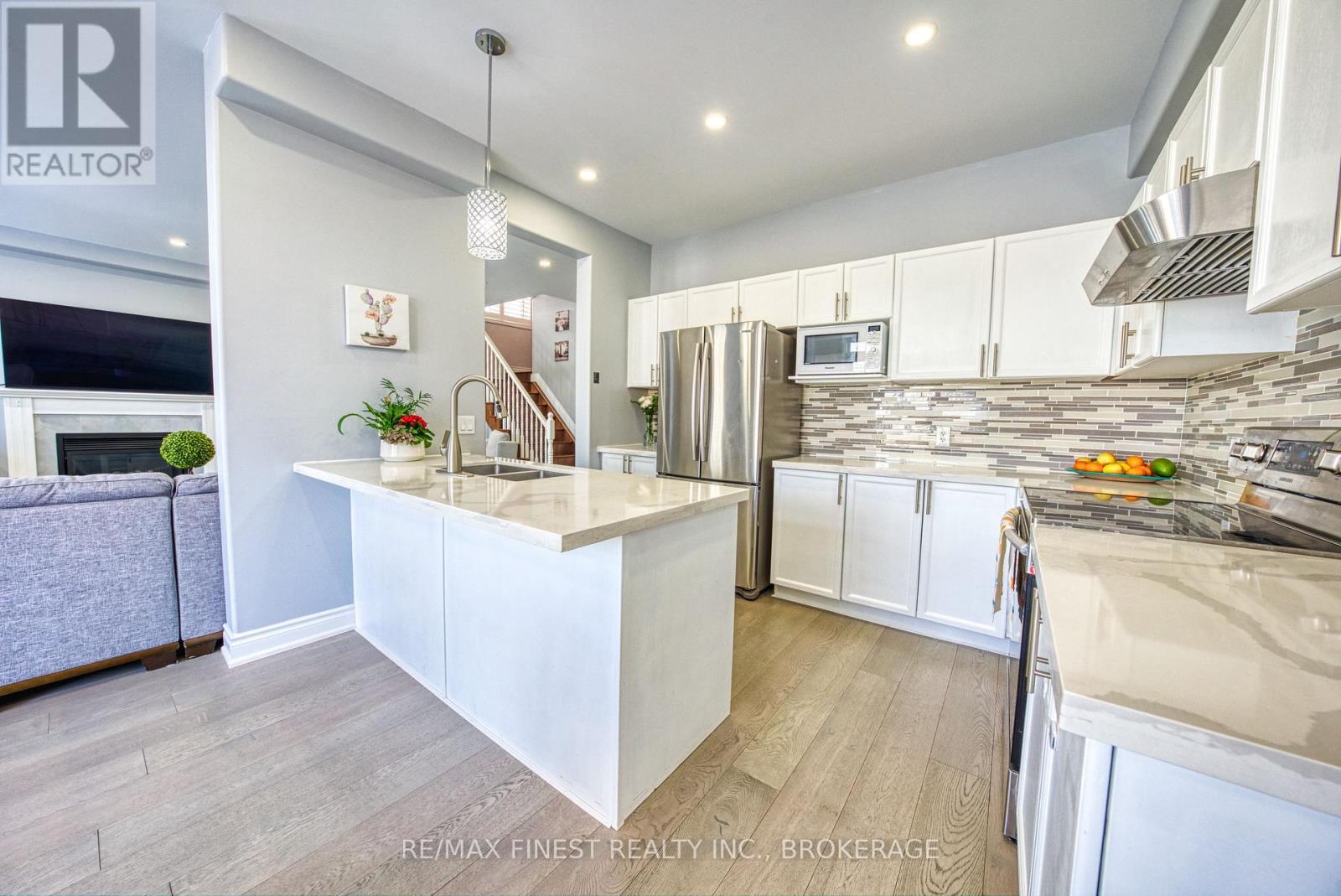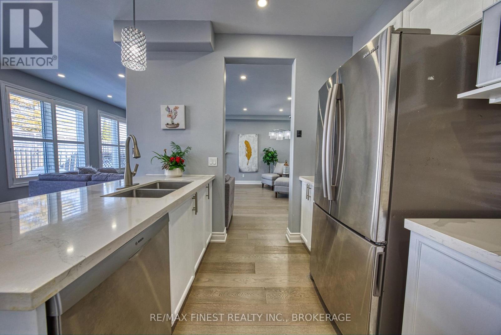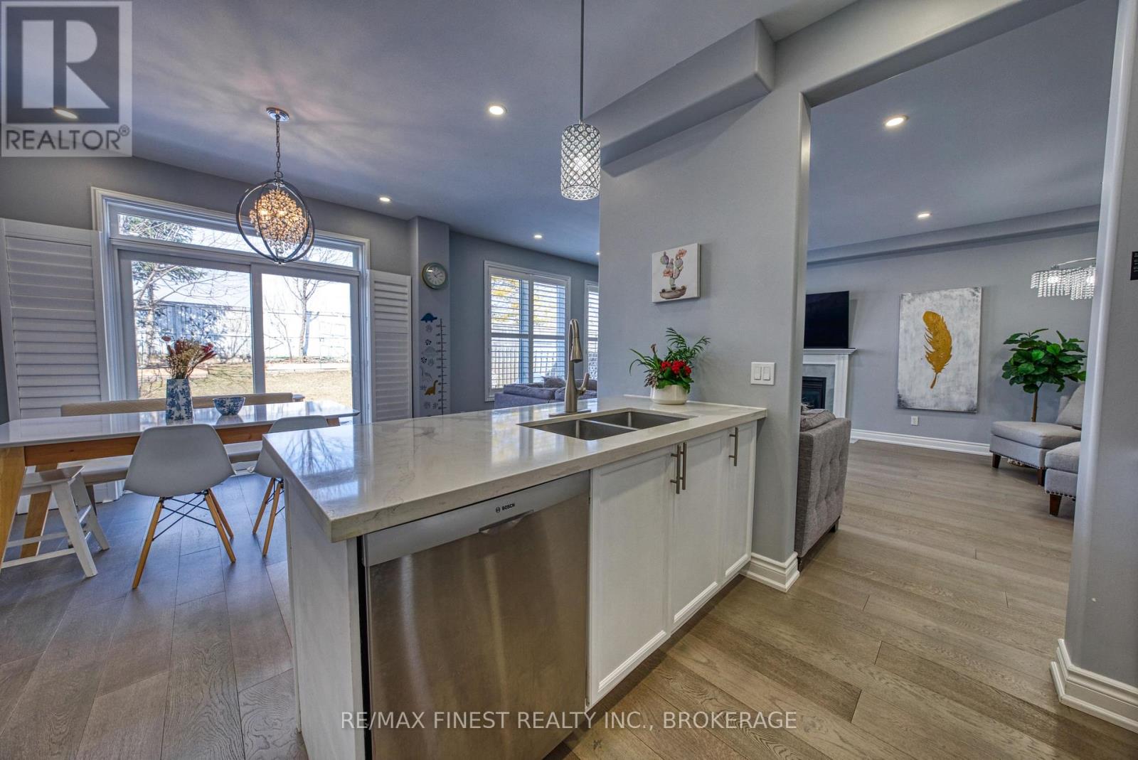 Step into style and comfort at 2018 Geology Trail, a beautifully updated 4-bedroom plus den home located in Kingston's desirable west end. Thoughtfully renovated throughout, this property offers modern finishes, spacious living areas, and a layout designed for both everyday living and effortless entertaining. The main level welcomes you with soaring 9-foot ceilings and an airy open-concept design. Wide plank engineered hardwood and elegant ceramic tile create a seamless, carpet-free space. At the heart of the home is a stunning renovated kitchen featuring quartz counter-tops, a stylish tiled backslash, and a large centre island with breakfast seating-perfect for casual meals or gathering with friends. The living and dining areas are bright and inviting, highlighted by a cozy gas fireplace, dimmable pot lighting, and large windows that fill the home with natural light. A patio door leads to the fully fenced backyard, where mature gardens create a peaceful outdoor retreat. Upstairs, the generous primary suite provides a relaxing escape, complete with a walk-in closet and a luxurious five-piece en suite featuring double sinks, a deep soaker tub, and a separate shower. Three additional bedrooms and a well-appointed four-piece bathroom provide plenty of space for family or guests. The finished lower level adds valuable living space and is ideal for a family recreation area, games room, or movie nights. Additional highlights include custom window shutters and a completely carpet-free interior. Ideally situated close to shopping, highly regarded west-end schools, parks, and the scenic trails of Lemoine Point Conservation Area, this home offers both convenience and lifestyle. This is a property that truly needs to be experienced in person. Schedule your viewing today. A detailed list of upgrades and improvements is available upon request. (id:64974)