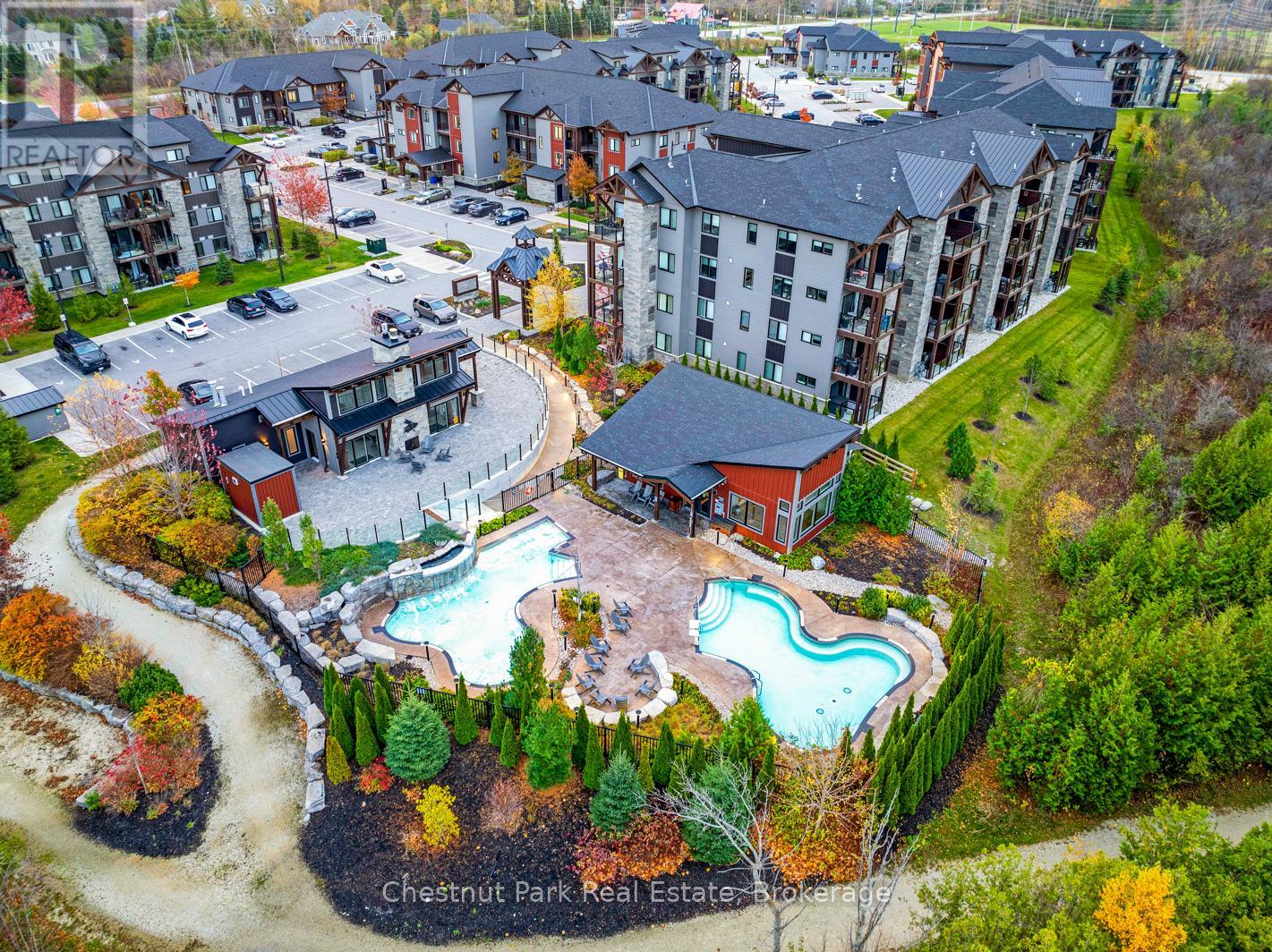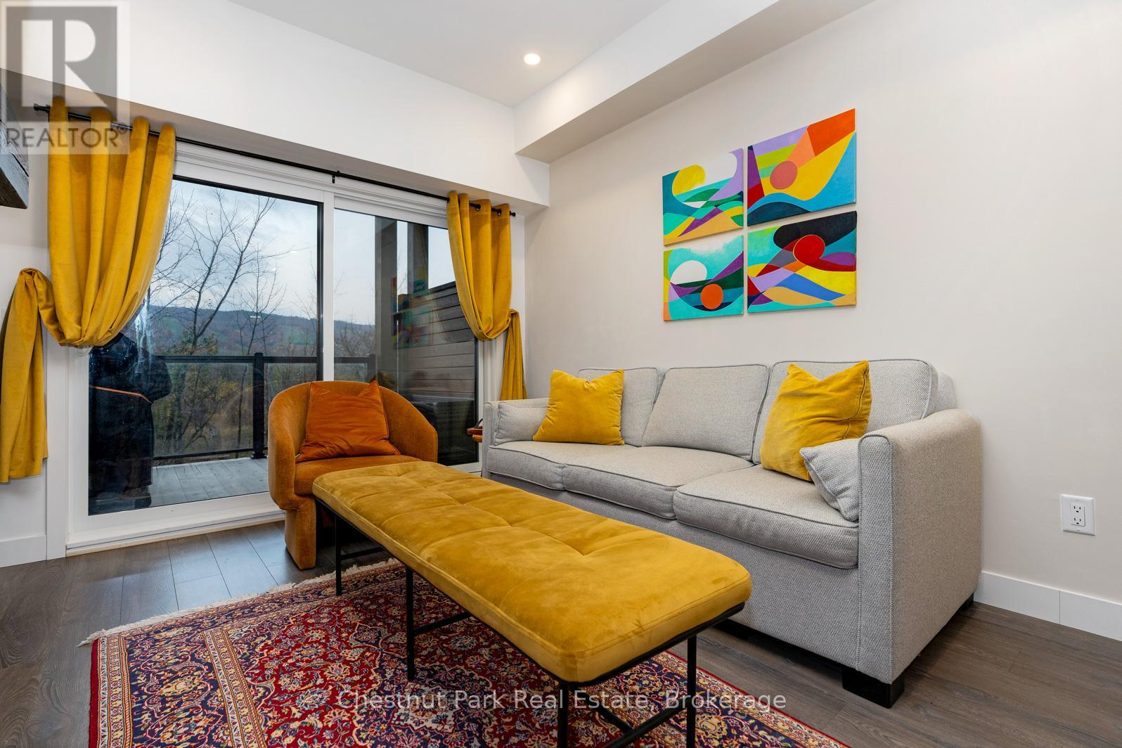 Blue Mountain ~ furnished annual rental with gorgeous escarpment & ski hill views. Mountain House development offers access to the year round Zephyr Springs Nordic spa, boasting an array of luxurious amenities such as invigorating hot and cold pools, a rejuvenating sauna, a well-equipped fitness and yoga room, and an inviting apres ski lodge featuring a fireplace. Enjoy each season with the ever changing views from the open concept living featuring a gas fireplace, balcony, and the primary bedroom. Walk or bike the nearby trails to connect to the hills of Blue Mountain Resort and the Village. Short drive to ski hills, golfing, pickleball, Georgian Bay waterfront, and the various amenities Collingwood has to offer. The rental includes exclusive parking for 1 car, as well as visitor parking for guests. Embrace all of what Blue Mountain has to offer! Rental rate plus utilities. Tenants must provide application, tenant liability insurance and first & last month's rent required prior to possession. Short term 6 month rental also available for $2,700 plus utilities. Great rental opportunity! (id:64974)