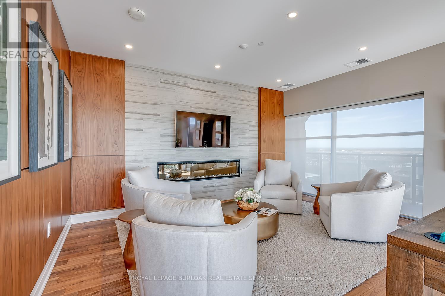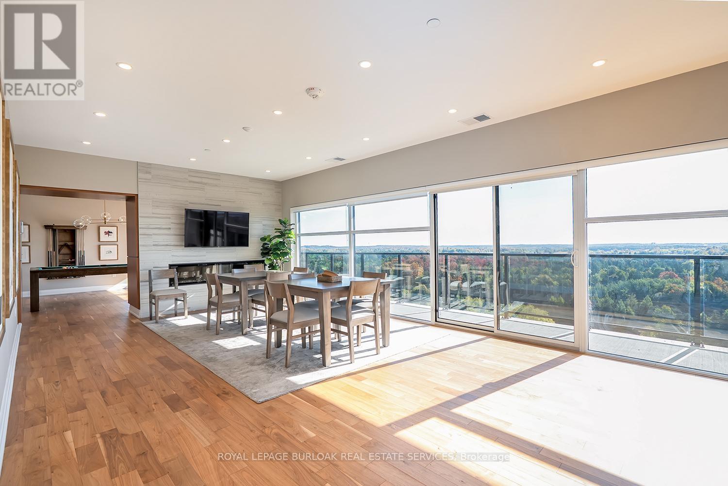 Located in the heart of a vibrant community, this stunning 2 bedroom, 2 bathroom condo offers 1,464 square feet of luxurious living space and a 294 sq. ft. south facing terrace, perfect for entertaining or relaxing outdoors. Inside, 10 foot ceilings, hardwood flooring, LED pot lights, and floor to ceiling windows create a bright, elegant atmosphere. The kitchen is beautifully appointed with custom cabinetry, quartz countertops, an eat at island, Whirlpool stainless steel appliances, a custom backsplash, under cabinet lighting, and two double pantries. The open living/dining area features an electric fireplace, accent wall, and walk out to the terrace. The primary suite offers floor to ceiling windows, a custom walk in closet, and a spa like ensuite with double vanity, heated floors, and a glass shower with floor to ceiling tile. The second bedroom includes a double closet and frosted glass doors, while the main bath features a quartz topped vanity, soaker tub, and heated floors. A spacious laundry room with built in cabinetry provides excellent storage. Residents enjoy top tier amenities such as a golf simulator, games and party room with stunning views, exercise room, and elegant lobby. Steps to restaurants, shops, and entertainment, and minutes from Springfield Golf & Country Club. Includes two parking spaces (P2 #24 and #90) (id:64974)