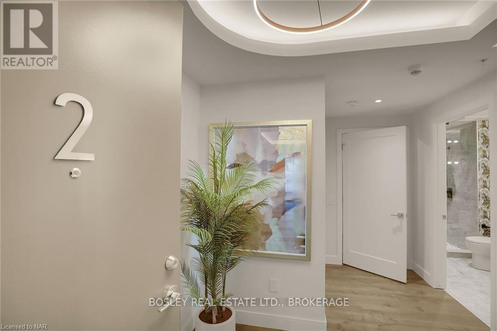 Located in historic Crystal Beach on the shores of Lake Erie - Canada?s ?South Shore?, the suites at THE PALMWOOD offer an incomparable lakeside living adventure only available to six fortunate participants; this is an exceptional once-in-a lifetime opportunity. Designed by ACK Michael Allan with interiors by B.B. Burgess & Associates, they are the perfect blend of sophistication, quality, and understated elegance. Each offers a great-for-entertaining open plan with walkouts to an impressively large private lakeside terrace. Expect a well-appointed galley-styed gourmet kitchen with an abundance of cupboard and counter space, pot-filler and filtered water faucets, under-valance lighting, impressive quartz counters with water-fall edge finish, plus 6 Miele Appliances ? you won?t be djsappointed! You will appreciate the practical step-saving amenities including utility / storage room, in-suite laundry with Gorenje Stacking Washer and Dryer and the individually controlled forced air electric heating and cooling with energy saving programable ECOBEE Smart Thermostat and the cozy two-sided fireplace, two bedrooms and opulent spa baths of course. You will have the exclusive use of two assigned parking spaces - one underground and one outdoor. Secure intercom entry with only-to-your-floor elevator service. Come and experience the perfect blend of tranquility and sophistication at THE PALMWOOD. SUITE 202 fully furnished and accessorized including window treatments offering 2100 SQ FT and 793 SQ FT Terrace;. Notice the architectural detain in the coffered ceilings and the indirect lighting, The Palmwood is a smoke-free building. (id:65010)