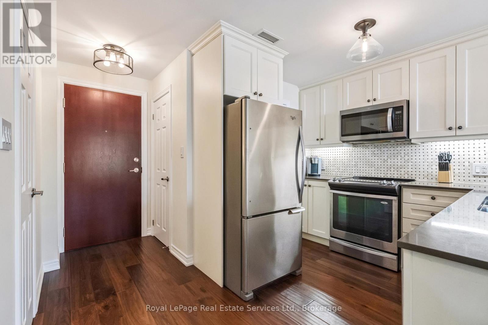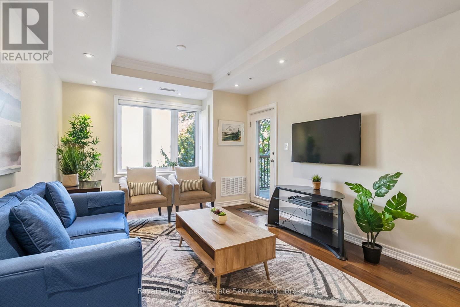 Live the vibrant Kerr Village lifestyle in this stylish boutique condo just moments from downtown Oakville! With 900+ sq. ft. of open living space, 9-ft ceilings, and refined finishes, this 2-bedroom, 2-bath residence blends comfort and elegance. The designer kitchen features quartz countertops, stainless steel appliances, and a breakfast bar perfect for entertaining. Relax in your spa-inspired ensuite or unwind on your covered balcony with a gas BBQ hookup. Complete with parking, locker, and in-suite laundry, in a pet-friendly building close to GO Transit, shops, cafés, and lakefront trails. (id:64974)