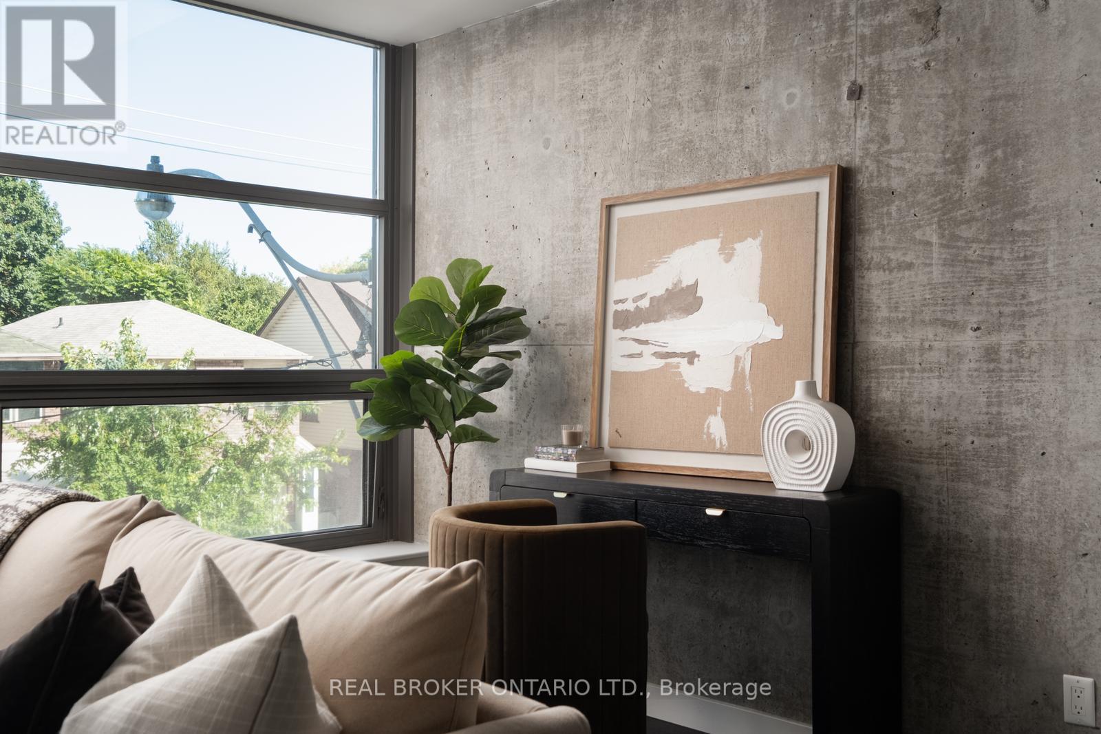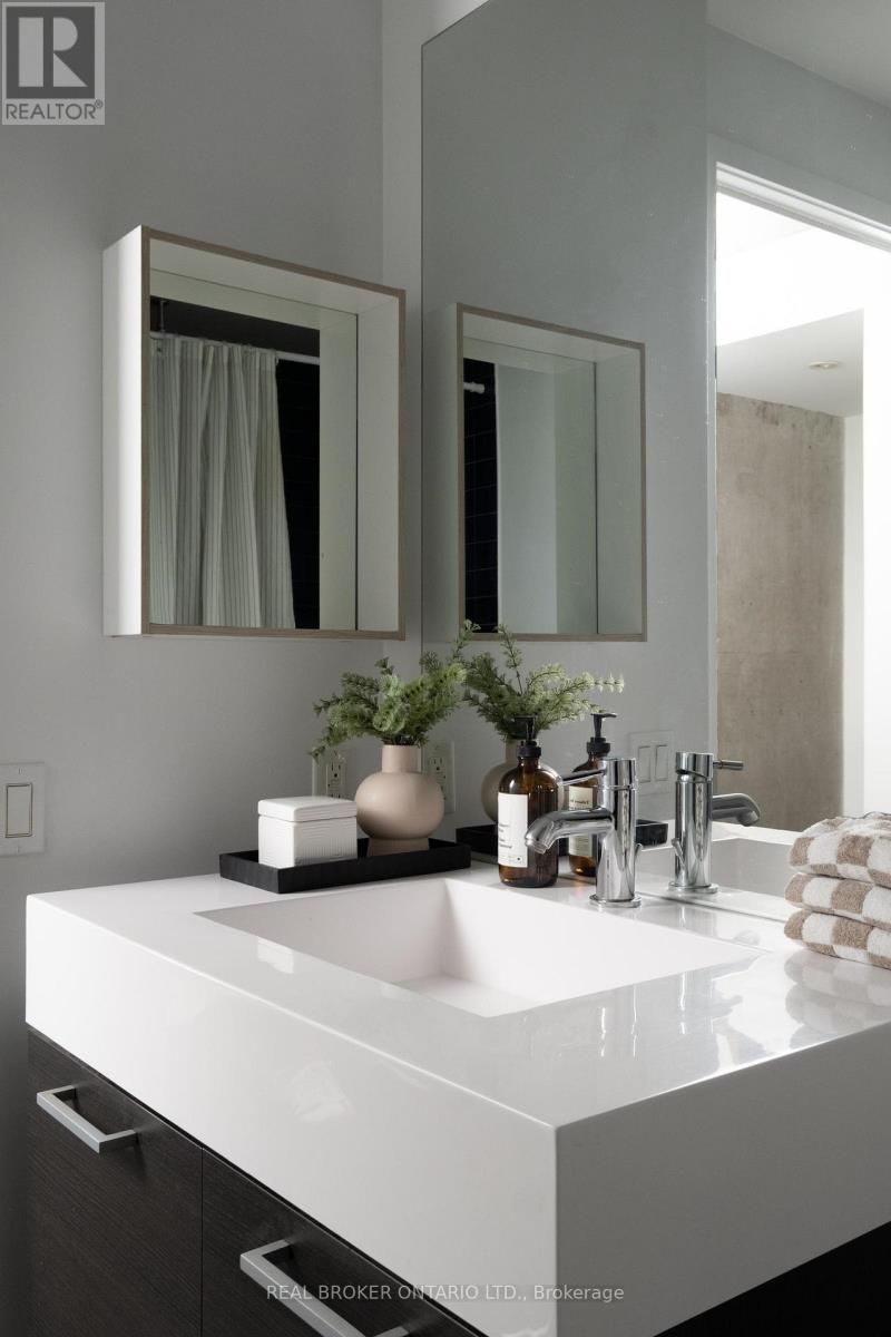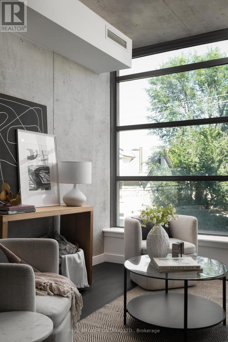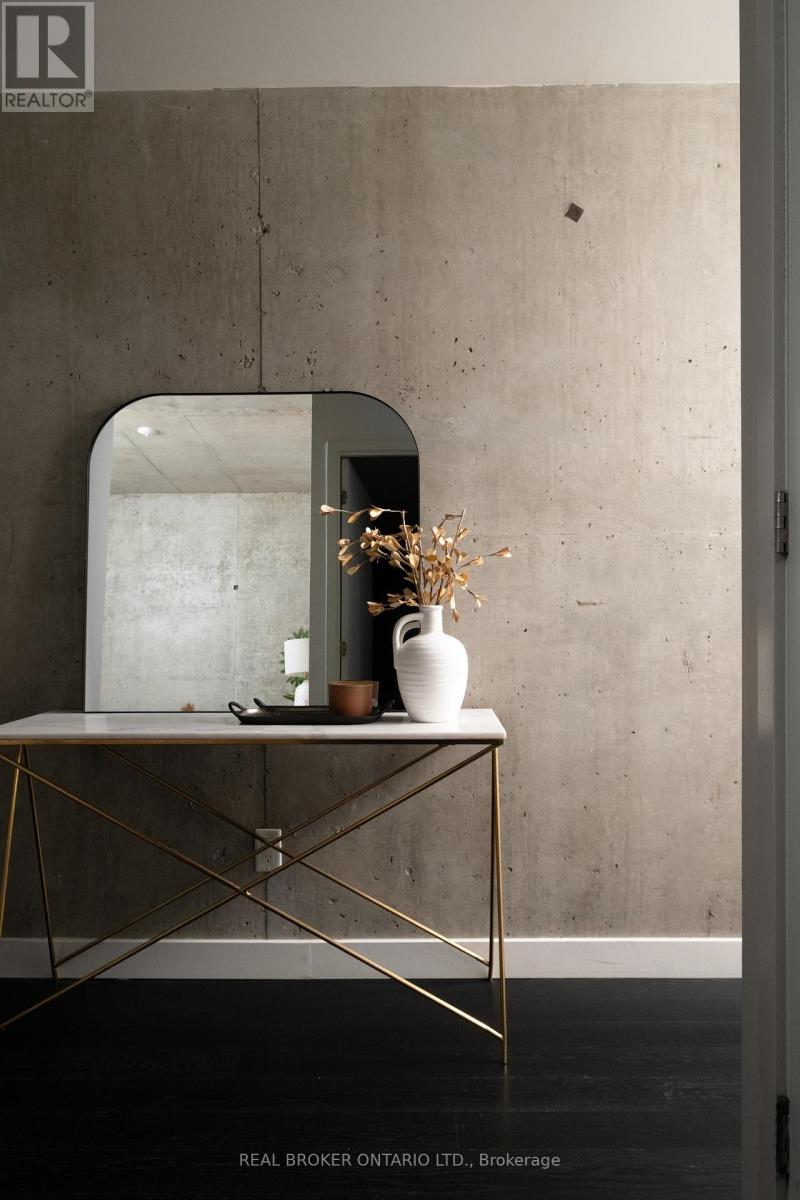 Welcome to The Ninety, a boutique loft residence where contemporary design meets authentic urban character. This thoughtfully designed 1+den suite showcases exposed concrete walls and ceilings, hardwood flooring, stainless steel appliances, and a seamless open-concept layout ideal for modern living.The generous den offers exceptional flexibility-perfect as a second bedroom, home office, or creative space-while expansive wall-to-wall windows flood the living area with natural light, enhancing the home's bright, airy atmosphere. Renowned as one of Toronto's most sought-after boutique loft buildings, The Ninety blends historic charm with modern finishes and offers desirable amenities including a landscaped courtyard terrace, party room, and concierge service. Ideally located in the heart of Riverside/Leslieville, you're just steps from Queen Street East's cafés, restaurants, shops, parks, and trails, with convenient access to transit and major highways. (id:64974)