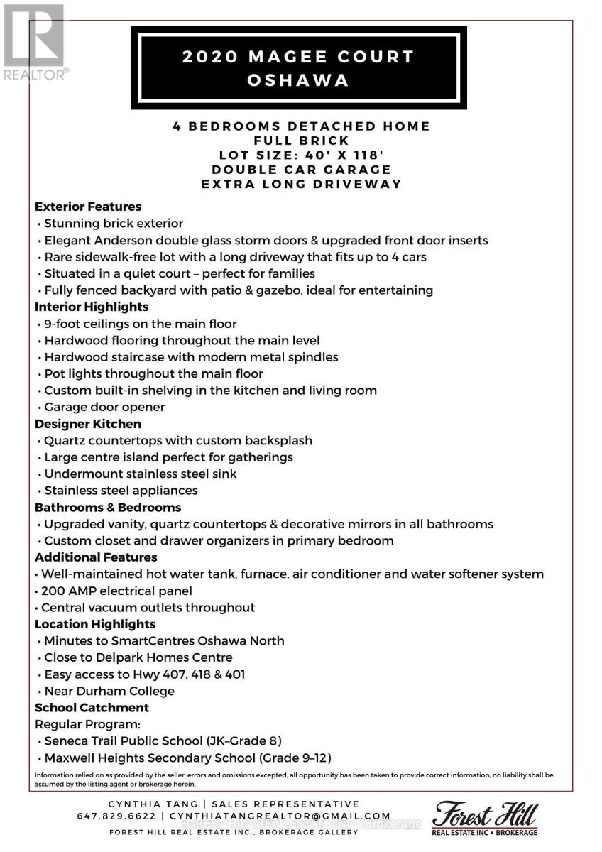 Buy/Sell/Terminated/Expired listing history for 2020 MAGEE COURT, Oshawa (Taunton), Ontario, L1K0W7
