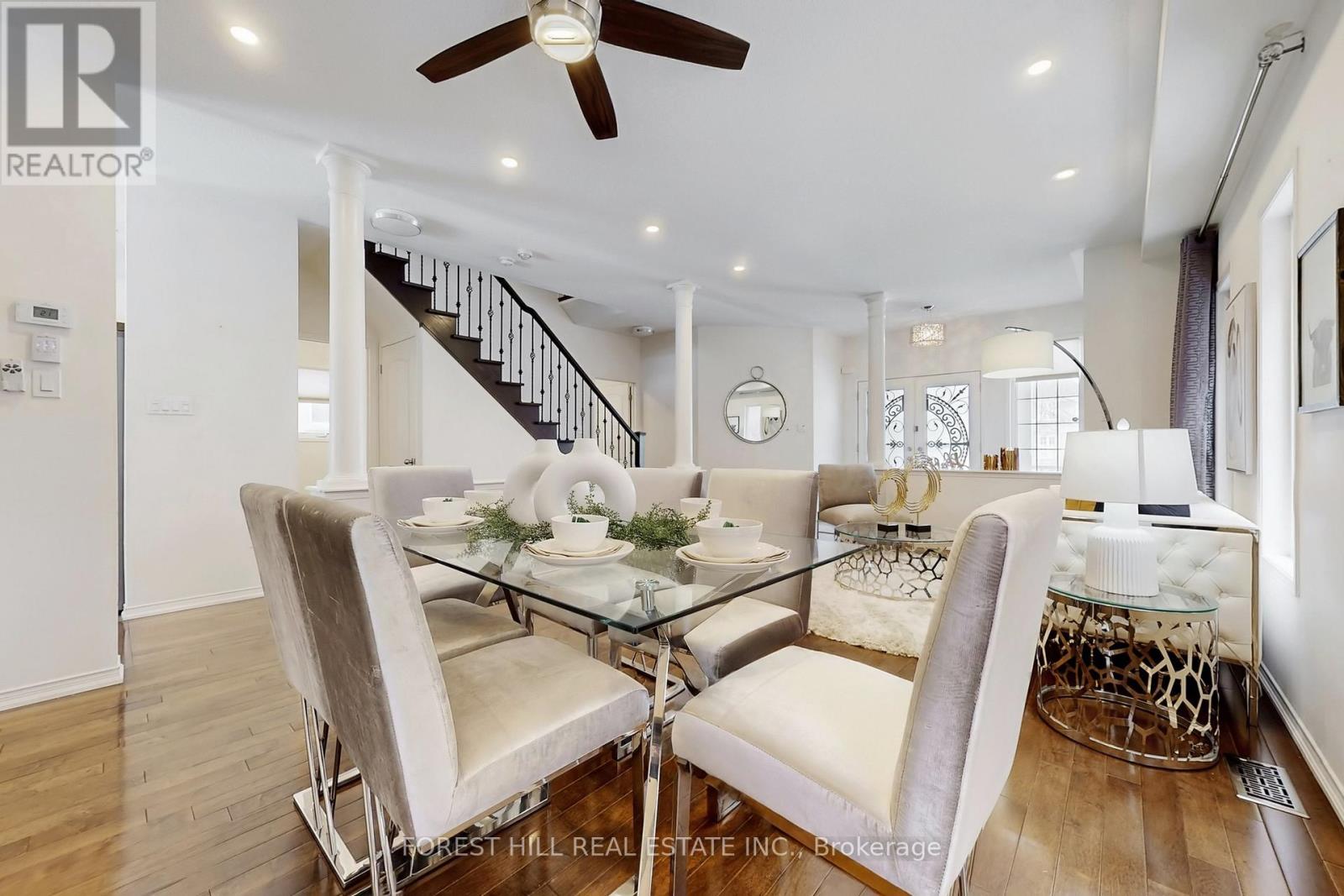 Nestled on a quiet family-friendly court in desirable North Oshawa, this beautifully upgraded 4-bedroom detached home offers the perfect blend of style, comfort, and convenience. Situated on a generous 40' x 118' lot, the home showcases a full brick exterior, double car garage, and an extra-long driveway on a rare sidewalk-free lot, providing ample parking for 6 vehicles. Inside, the home features 9-foot ceilings, rich hardwood flooring throughout the main level, a hardwood staircase with modern metal spindles, and pot lights across the main floor, creating a bright and sophisticated living space.The designer kitchen serves as the heart of the home, beautifully appointed with quartz countertops, a custom backsplash, stainless steel appliances, a large centre island perfect for gatherings, and an undermount stainless steel sink, complemented by stylish custom built-in shelving in the kitchen and living room. All bathrooms are thoughtfully upgraded with quartz countertops, modern vanities, and decorative mirrors, while the spacious primary bedroom features custom closet and drawer organizers for optimal storage and functionality. Step outside to your fully fenced backyard oasis, complete with a patio and gazebo, perfect for summer entertaining, family gatherings, or simply unwinding in a private outdoor setting. Ideally located just minutes from SmartCentres Oshawa North, Delpark Homes Centre, major highways 407, 418 and 401, and Durham College, this exceptional home offers the perfect balance of peaceful suburban living with outstanding everyday convenience. (id:64974)