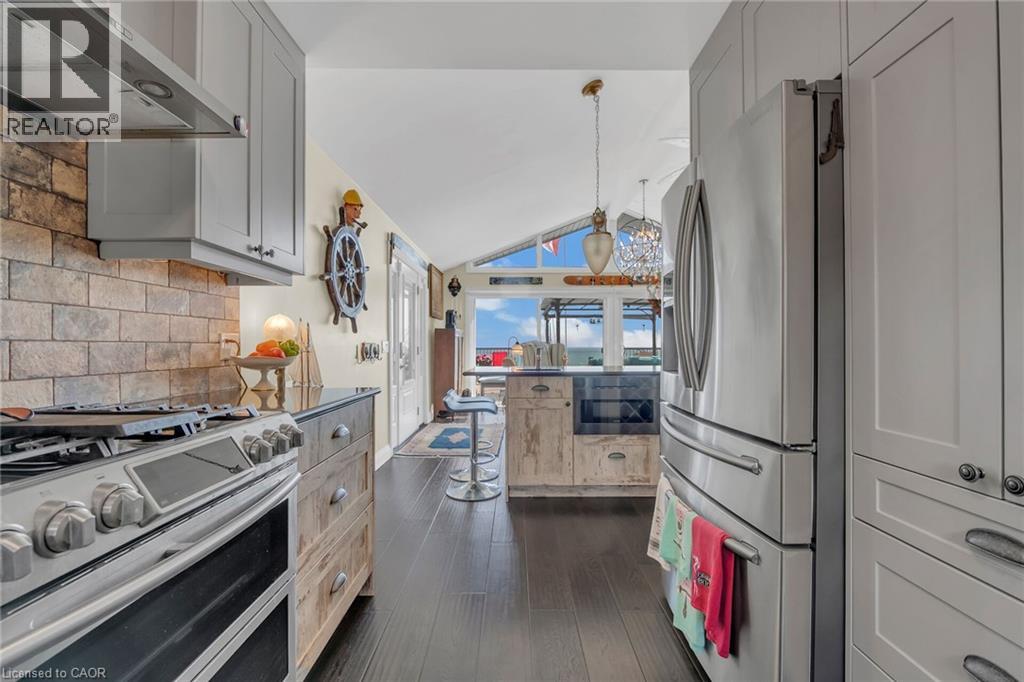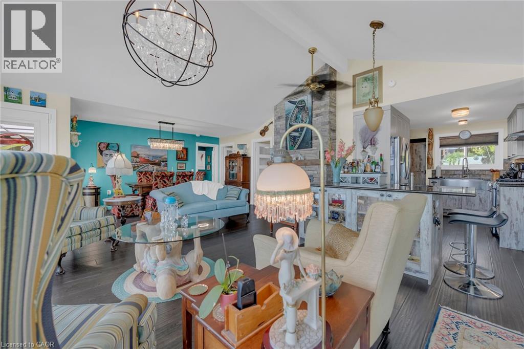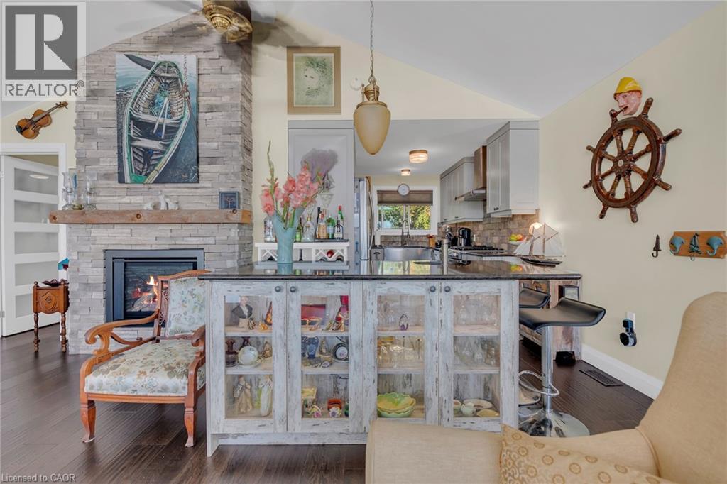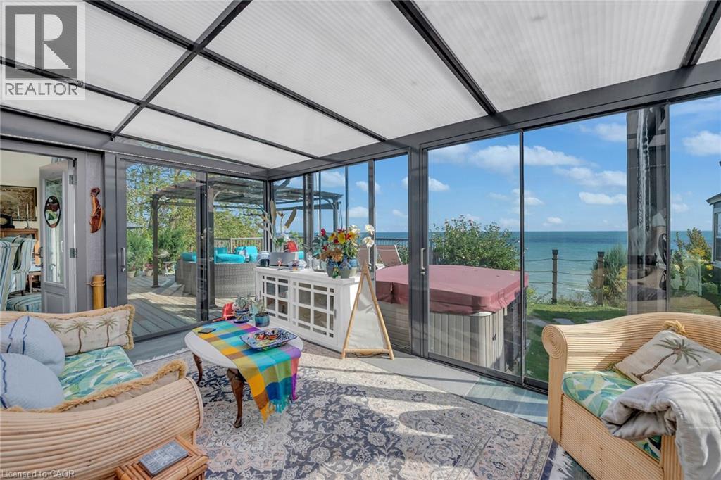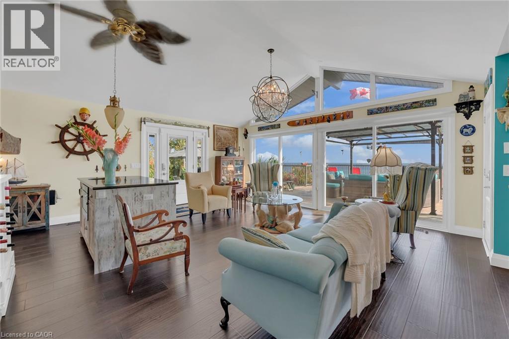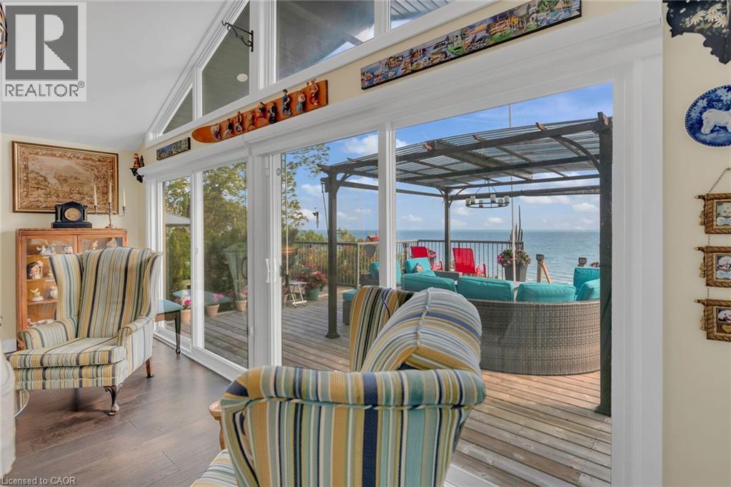 Captivating Port Dover 2 bedroom Waterfront Lakehouse with 89.57 feet of sought after waterfront on the shores of Lake Erie. This exquisitely presented property features breathtaking views and access to lower level Lakeside deck and multiple entertaining areas for a true dream backyard Oasis. Great curb appeal with oversized paved driveway & carport, Can Exel engineered siding, tastefully landscaped, solid concrete and steel breakwall, gorgeous 3 season sunroom, 2 sheds / bunkies which are insulated with hydro for extra guests or games room, & expansive decking with pergola & separate gazebo area. The open concept main floor layout is highlighted by custom designed “Darbishire” kitchen with quartz countertops & large island, great room with wall to wall windows & vaulted ceilings, 2 bedrooms including primary suite with ensuite bathroom & access to sunroom, additional bathroom,desired MF laundry & welcoming foyer. Extensively renovated in 2016 with new flooring, decor, wiring & panel, insulation, furnace, lighting, fixtures, & more. Conveniently located minutes to all the Incredible amenities that Port Dover offers including restaurants, theatre, shopping, stunning beach, wineries, & easy access to other Norfolk experiences. Truly Irreplaceable property, setting, & home. Lake Erie Waterfront Living is a Lifestyle that must be Experienced! (id:64974)