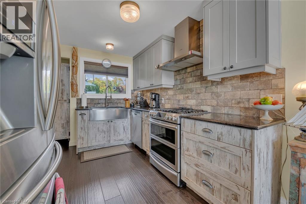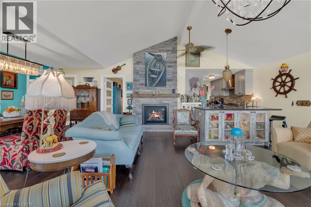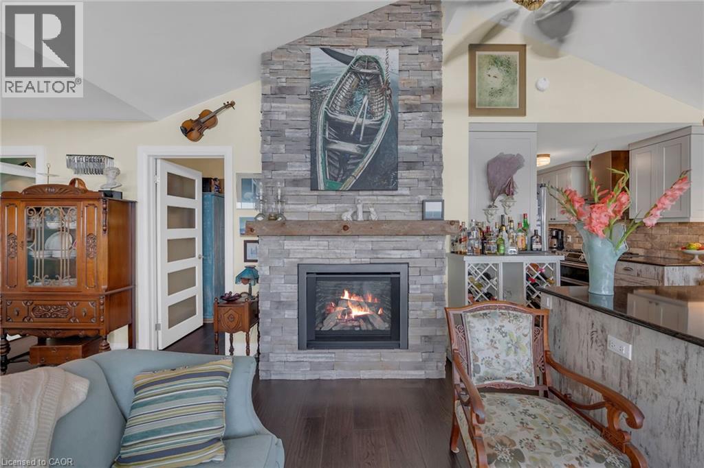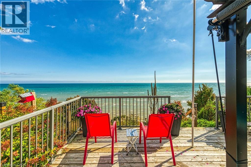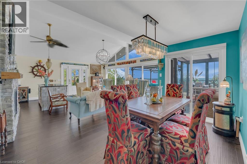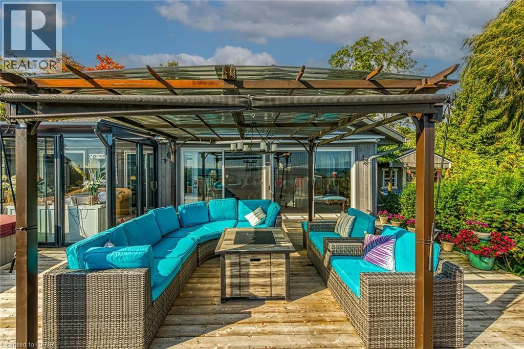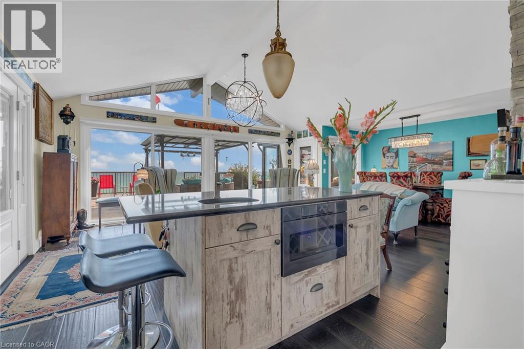 Captivating Port Dover 2 bedroom Waterfront Lakehouse with 89.57 feet of sought after waterfront on the shores of Lake Erie. This exquisitely presented property features breathtaking views and access to lower level Lakeside deck and multiple entertaining areas for a true dream backyard Oasis. Great curb appeal with oversized paved driveway & carport, Can Exel engineered siding, tastefully landscaped, solid concrete and steel breakwall, gorgeous 3 season sunroom, 2 sheds / bunkies which are insulated with hydro for extra guests or games room, & expansive decking with pergola & separate gazebo area. The open concept main floor layout is highlighted by custom designed “Darbishire” kitchen with quartz countertops & large island, great room with wall to wall windows & vaulted ceilings, 2 bedrooms including primary suite with ensuite bathroom & access to sunroom, additional bathroom,desired MF laundry & welcoming foyer. Extensively renovated in 2016 with new flooring, decor, wiring & panel, insulation, furnace, lighting, fixtures, & more. Conveniently located minutes to all the Incredible amenities that Port Dover offers including restaurants, theatre, shopping, stunning beach, wineries, & easy access to other Norfolk experiences. Truly Irreplaceable property, setting, & home. Lake Erie Waterfront Living is a Lifestyle that must be Experienced! (id:64974)