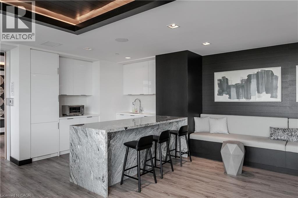 Experience elevated downtown living in one of Burlington’s most sought-after residences. Set within the prestigious Berkeley Condos, this hotel-inspired suite offers a refined, low-maintenance lifestyle in the heart of the city—just steps from the waterfront, Spencer Smith Park, boutique shopping, top-rated restaurants, cafés, and vibrant year-round events. Whether it’s morning walks along the lake or evenings out downtown, this location delivers the ultimate lifestyle experience. Inside, 9’ ceilings and rich hardwood flooring create a seamless, upscale feel throughout. The modern eat-in kitchen is designed to impress, featuring granite countertops, a tile backsplash, stainless steel appliances with range hood, and a spacious island with breakfast bar—perfect for casual dining or entertaining. The bright living room is anchored by an oversized window and walkout to a private balcony, where you can unwind with beautiful lake views as your backdrop. The primary bedroom offers a peaceful retreat, complete with a 4-piece ensuite featuring a walk-in glass shower and separate tub. An additional bedroom/ Den with stylish barn doors provides an ideal space for guests or a home office, complemented by a sleek 3-piece main bath with walk-in shower. This unit also includes one parking space, a super-sized locker conveniently located next to the parking space, plus an additional locker on the same floor—offering exceptional storage rarely found in condo living. Residents of this upscale building enjoy access to premium amenities including a 24-hour concierge, fully equipped fitness centre, elegant party and games room, guest suites for overnight visitors, and a stunning rooftop terrace with breathtaking panoramic views of the lake and city skyline. An exceptional opportunity for professionals, downsizers, or anyone seeking a sophisticated, walkable lifestyle in one of Burlington’s most vibrant and connected communities (id:64974)