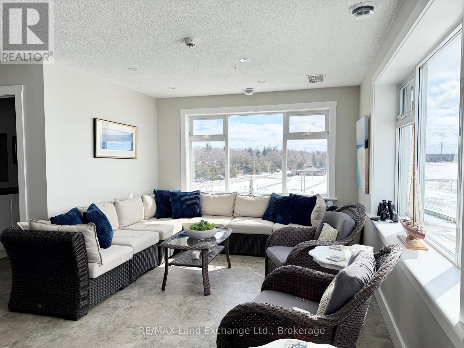 Elevated waterfront living in the heart of Port Elgin. Welcome to Unit 203 at 137 Elgin Street-an exceptional 2-bedroom, 2-bathroom condo offering refined, low-maintenance living just steps from the shoreline. This south-facing suite features a bright, open-concept design with a stylish kitchen, dining area, and elegant living room anchored by a gas fireplace. Walk out to your private balcony overlooking the harbour and sandy beach, where you'll enjoy all-day sun and unforgettable sunset views over Lake Huron. Thoughtfully appointed with in-suite laundry, gas forced air heating, central air, and elevator access, this residence delivers comfort and convenience year-round. Set within an exclusive 16-unit boutique building along the marina wall, this is a rare opportunity to own in one of the area's most coveted waterfront locations. Enjoy effortless access to the marina, beach, and scenic trails, all just outside your door. The rooftop terrace offers a truly elevated experience-complete with a gas fire pit and BBQ area-perfect for entertaining while taking in Port Elgin's world-class sunsets and seasonal fireworks. Option to be sold fully furnished, presenting a rare opportunity for a turn-key waterfront getaway or investment. (id:64974)