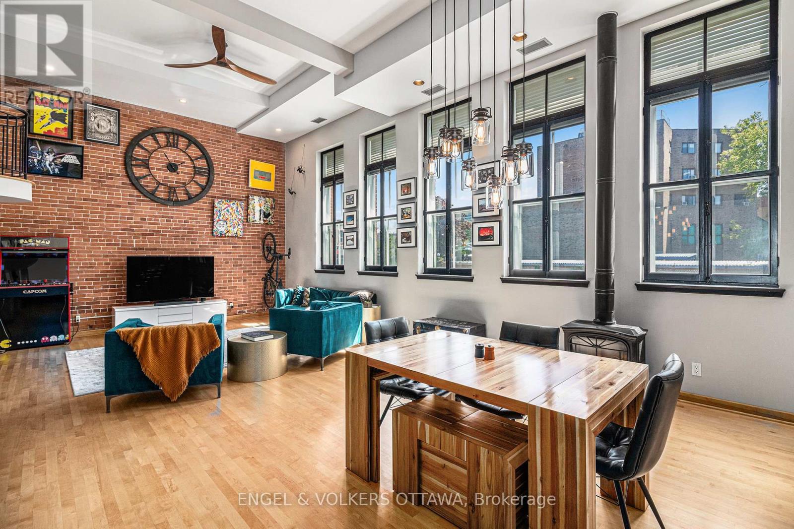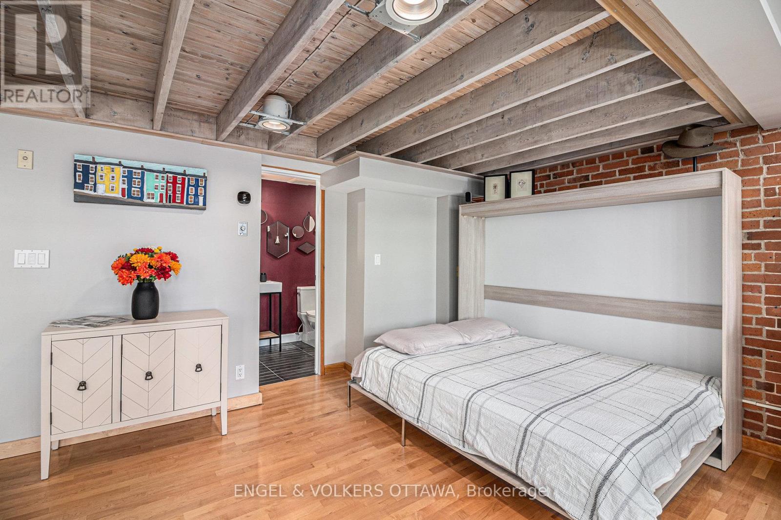 Welcome to 24 Springfield, affectionately known as The Lofts. This one-of-a-kind residence stands apart-not just within the building, but across the city. Offering approximately 1,550 sq. ft., this expansive loft-style condo is roughly double the size of any other unit in the building, delivering a rare blend of historic character and modern comfort. Originally built in 1910 as École St. Charles, the building retains its heritage charm, with its original name still displayed above the main entrance. Converted into condominiums in 1997, it now offers a distinctive urban lifestyle rooted in history. Inside, the unit features six impressive 8-foot windows fitted with custom remote-controlled blackout blinds, rich hardwood flooring, exposed floor joists, and a striking floor-to-ceiling red brick feature wall. The kitchen was renovated in 2018, while both bathrooms were fully updated in 2023-bringing a clean, modern finish that complements the building's original character. A custom Murphy bed on the main level adds flexibility, allowing the space to function seamlessly for guests or multi-purpose living. As the largest unit in the building, it offers a level of space and functionality that is difficult to replicate, further enhanced by two owned parking spaces and a large private storage room-a rare and valuable combination in this type of property. Residents also enjoy access to a shared rooftop patio with BBQ and seating, ideal for relaxed summer evenings. The location is equally compelling, just steps from restaurants, cafés, grocery stores, parks, and scenic bike paths. The property is currently tenanted, with vacant possession available at the end of November. Please note that the photos shown were taken prior to the current tenant's occupancy. A rare opportunity to own a truly distinctive and oversized piece of Ottawa's architectural history. (id:64974)