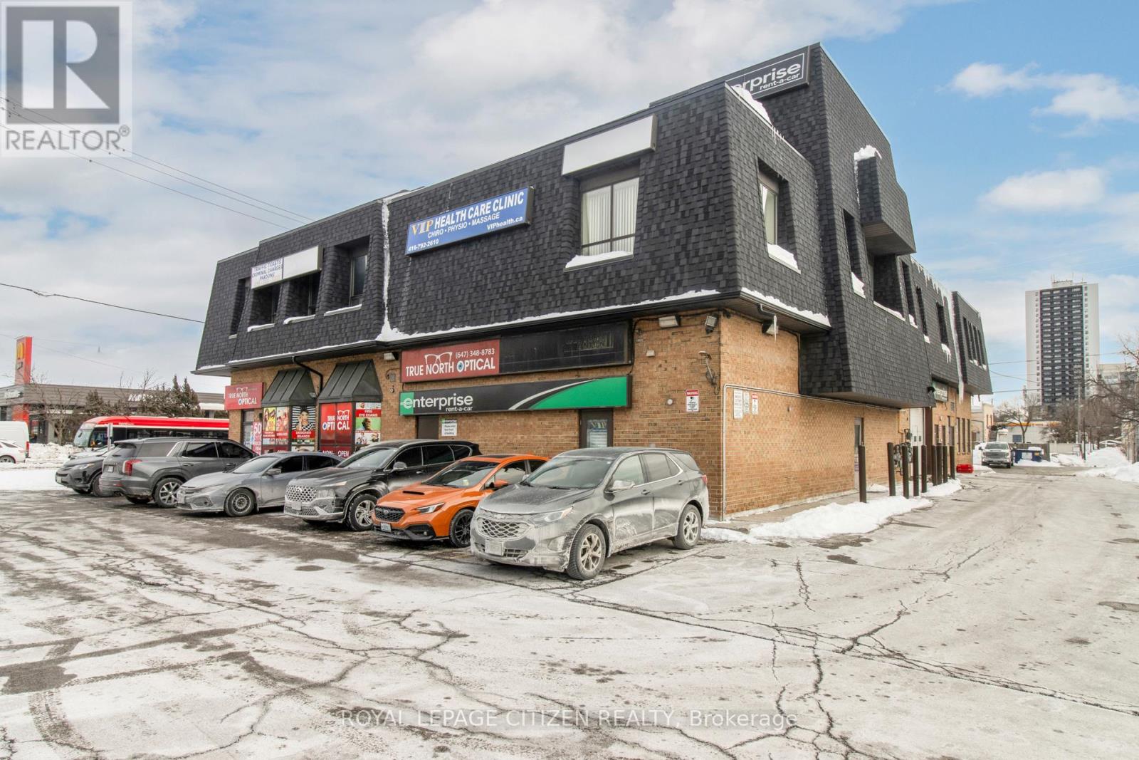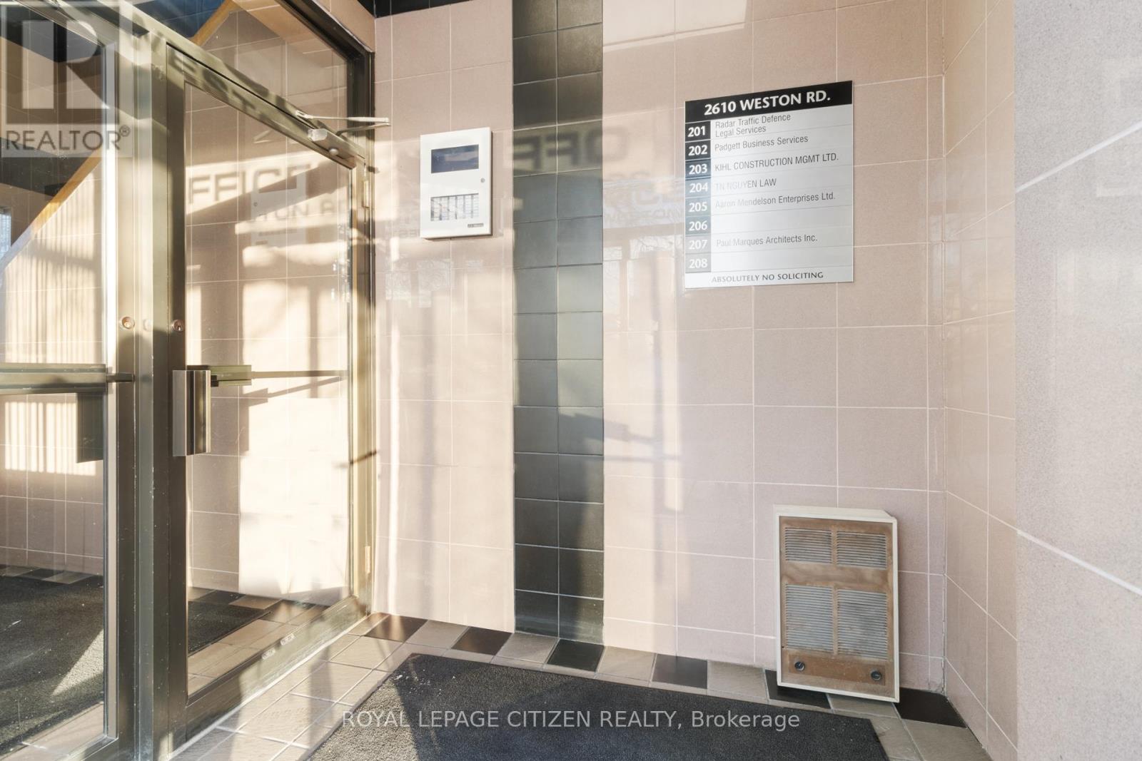 Seize the opportunity to elevate your business presence with this exceptional second-floor office space located at 2610 Weston Road in Toronto. Perfect for professionals, service-based businesses, and growing enterprises, this unit offers unparalleled visibility, convenience, and accessibility. Situated directly across the street from the bustling Crossroads Plaza this office building benefits from massive daily traffic counts and superb exposure. The building boasts a strategic position at the confluence of two of the GTA's most vital transportation arteries: Highway 400 and Highway 401, ensuring seamless access for your clients, employees, and suppliers from all corners of the city and beyond, making it the ideal headquarters for a company focused on growth and accessibility. This highly sought-after location offers fantastic exposure onto Weston Road, providing excellent signage opportunities for maximum brand visibility. Imagine your business name displayed prominently, benefiting from the non-stop flow of potential clients. For businesses prioritizing their visibility, a pylon and Banner signage is available. The building itself features a robust and diverse professional and retail tenant mix, creating a dynamic environment that drives foot traffic and provides convenient amenities for your team. This second-floor office unit is perfectly suited for a variety of uses, including legal, accounting, insurance, or general office use. Key Property Highlights: Size: Approximately 775 sq ft of efficient second-floor office space. Availability: Ready for occupancy starting April 1, 2026. Abundant Parking: Generous, well-maintained surface parking ensures hassle-free access for both tenants and clients. Signage: Excellent exposure with potential for highly visible fascia and pylon sign access. Transit Access: Easy access to TTC routes connecting to the rest of Toronto. (id:64974)