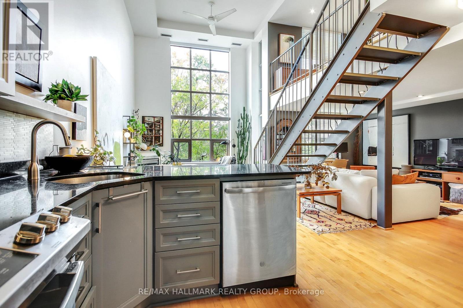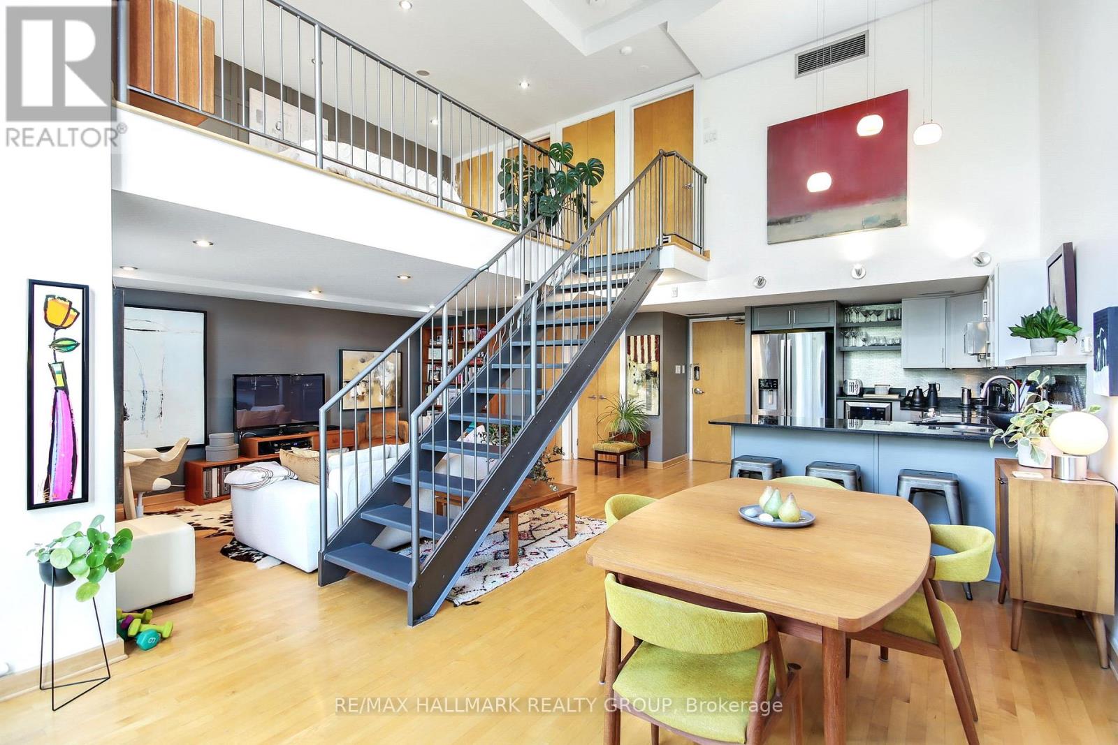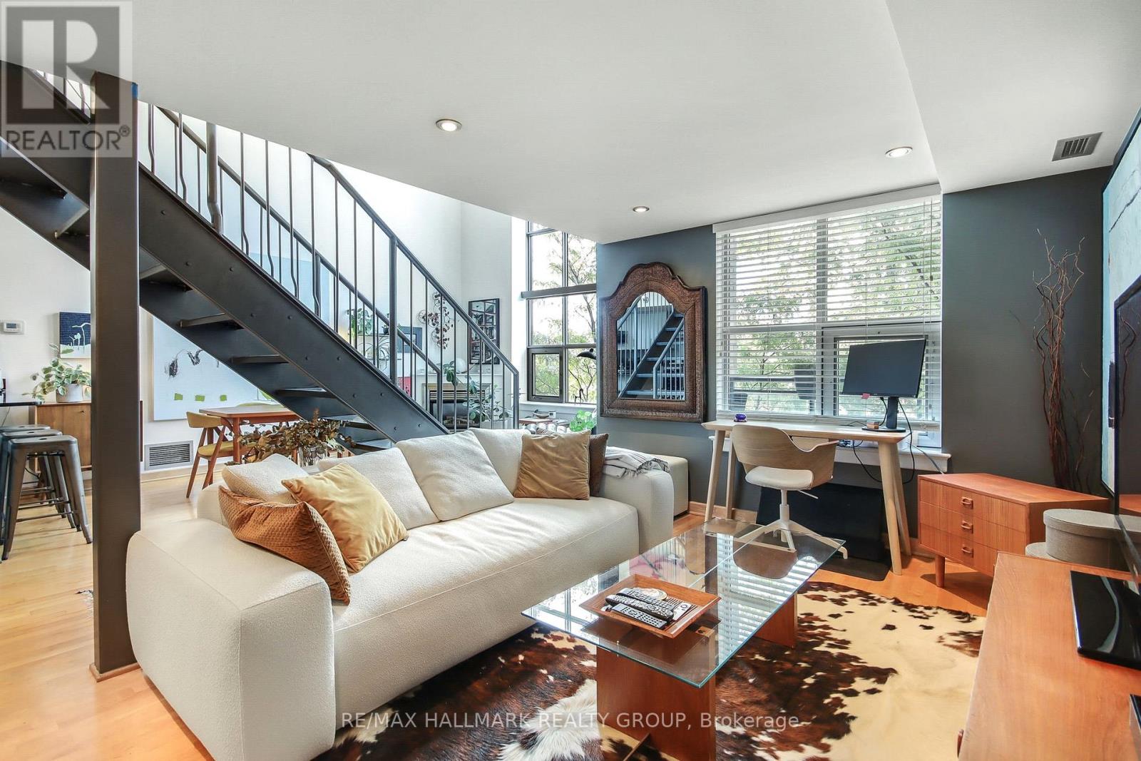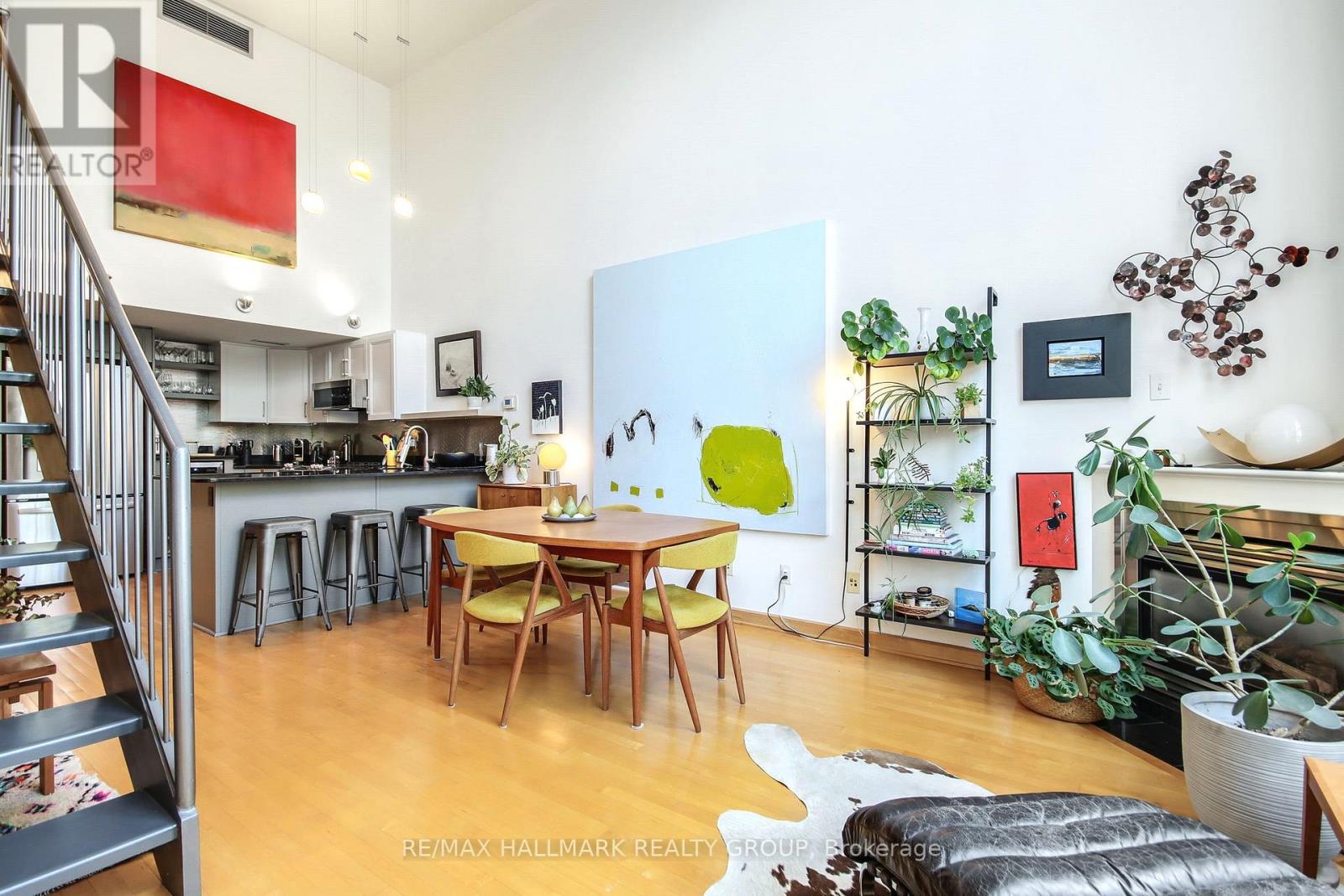Stunning loft living in this beautifully built Charlesfort boutique condo building, designed by Barry Hobin in Old Ottawa East. Originally designed to have two bedrooms and this can be modified to accompany the bedroom on the main level. The main level currently hosts a cozy open concept living/dining room with remarkable windows, 17-foot ceilings. With the high ceilings you can enjoy ample wall space for your art display! The master chef kitchen includes 5 stainless steel appliances; fitting for dinner parties and entertaining day and night. The upper level features a loft bedroom space overlooking the main level living spaces, laundry and a full bath. One parking spot and access to roof-top balcony with community BBQs. 24 hours notice for Showings and 48 hours irrevocable on offers. (id:64974)