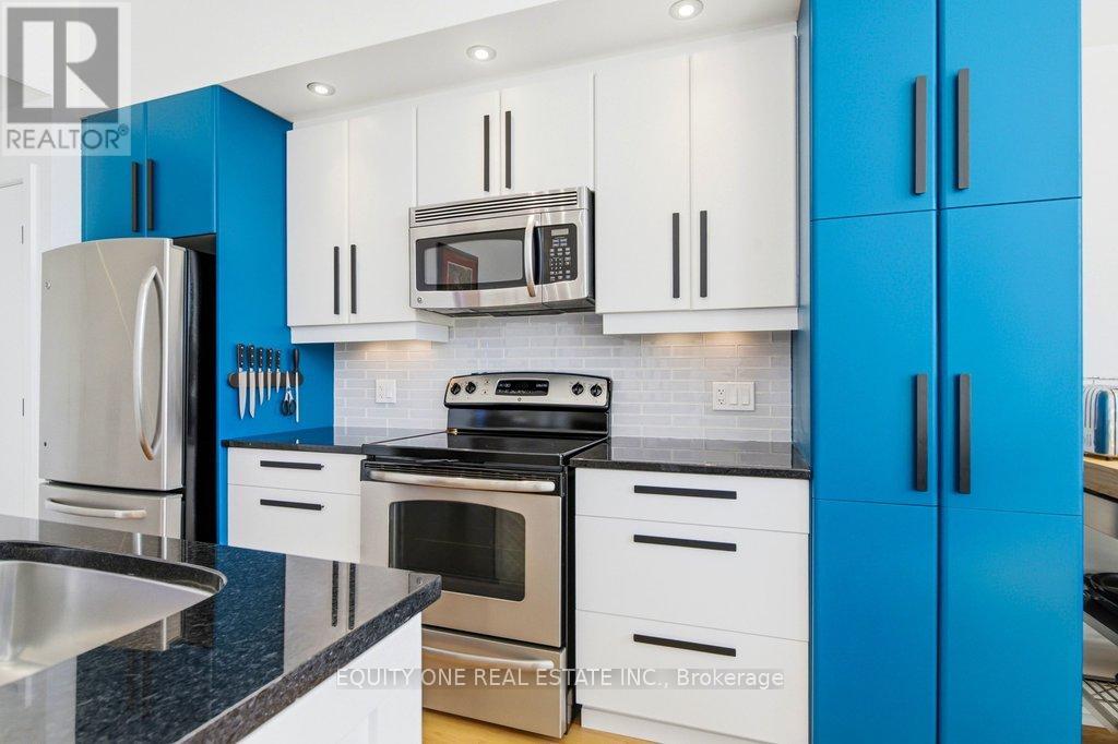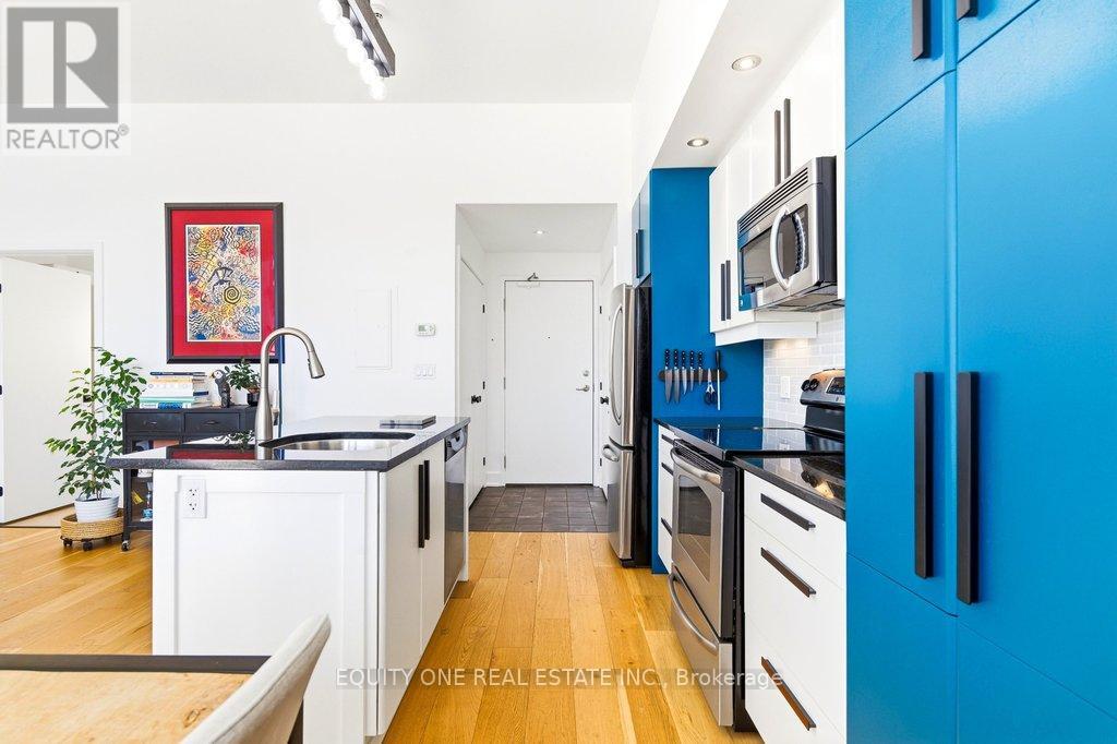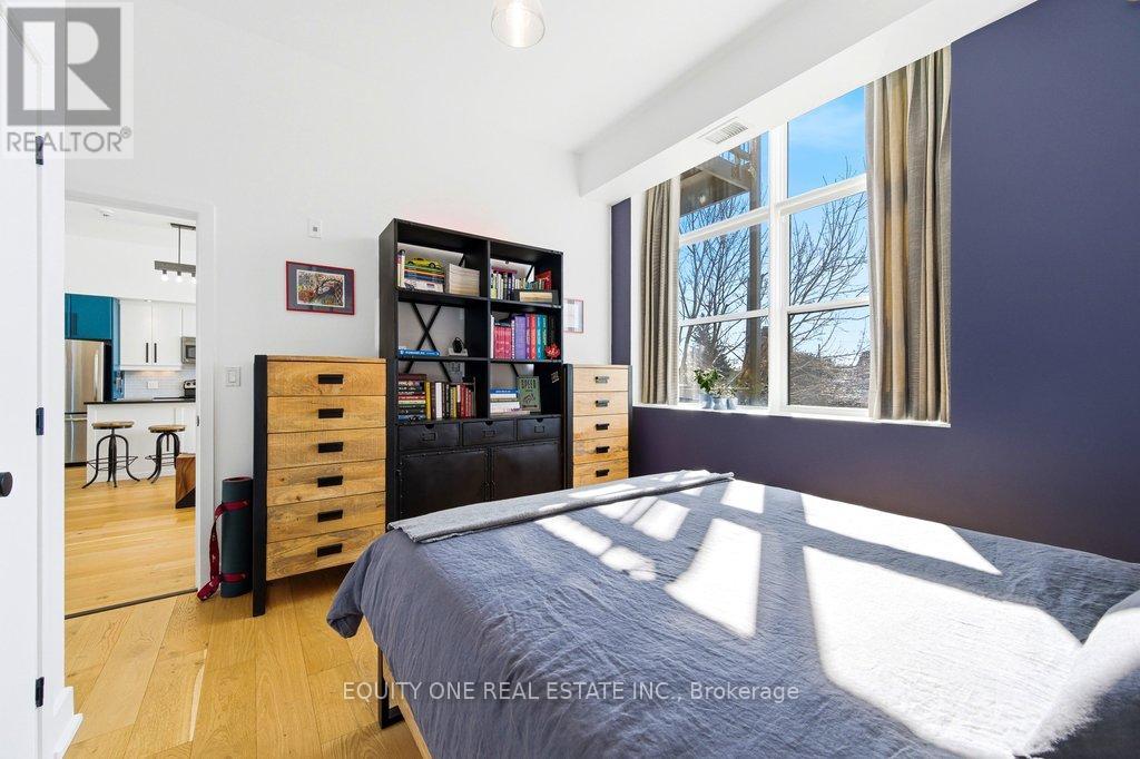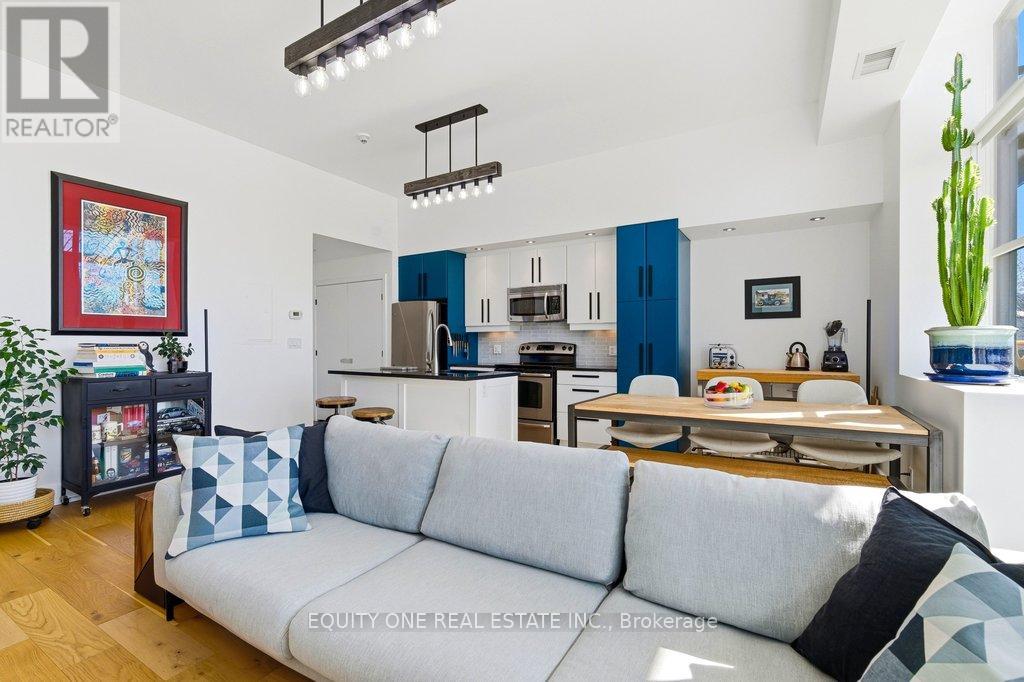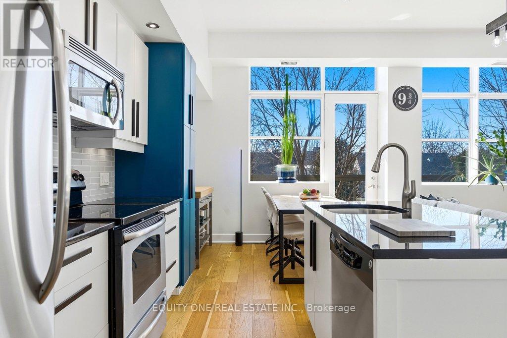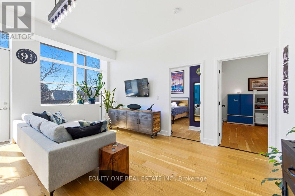 Imagine waking up to soft natural light pouring through oversized south-facing windows, with mature trees just beyond your view-offering both privacy and a peaceful, green backdrop in the heart of the city. Welcome to this beautifully designed 1-bedroom + den condo in a unique boutique building, where modern comfort meets quiet, refined living. LEED Silver certified building, ideally located in a quiet, tree-lined residential pocket just minutes from downtown Ottawa. Originally redeveloped from École Cadieux, this boutique building offers modern living with low operating costs and approximately 855 sq ft of thoughtfully designed space. Soaring 10'4" ceilings and expansive south-facing windows flood the home with natural light year-round, while mature trees provide privacy and seasonal comfort. The open-concept living, dining, and kitchen area features granite countertops, engineered French oak hardwood flooring, and updated LED lighting throughout.The spacious primary bedroom includes double closets and custom window coverings, while the versatile den-enhanced with internal glazing-makes an ideal home office or guest space. The modern entry showcases porcelain tile, ample storage, in-unit laundry, and a clean, functional layout. Step outside to your oversized 6' x 18' private balcony with retractable screen door -perfect for relaxing or entertaining-with durable construction and BBQs permitted. Additional highlights include a deeded parking space in a private courtyard and a secure storage locker. Enjoy a prime central location just 4 km to Parliament Hill, steps to the Rideau River pathways, and close to Beechwood Village shops, cafés, and amenities. A rare opportunity to own a bright, modern condo in a quiet yet connected neighbourhood! (id:64974)